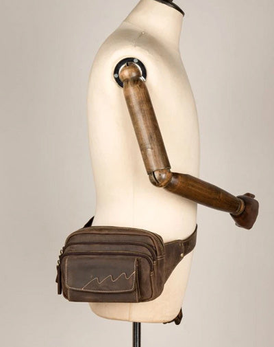 Design: Black Leather Fanny Pack Mens Waist Bag Hip Pack Belt Bags Bumbag for Men