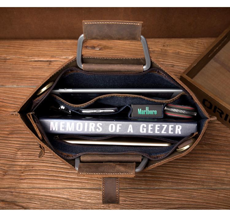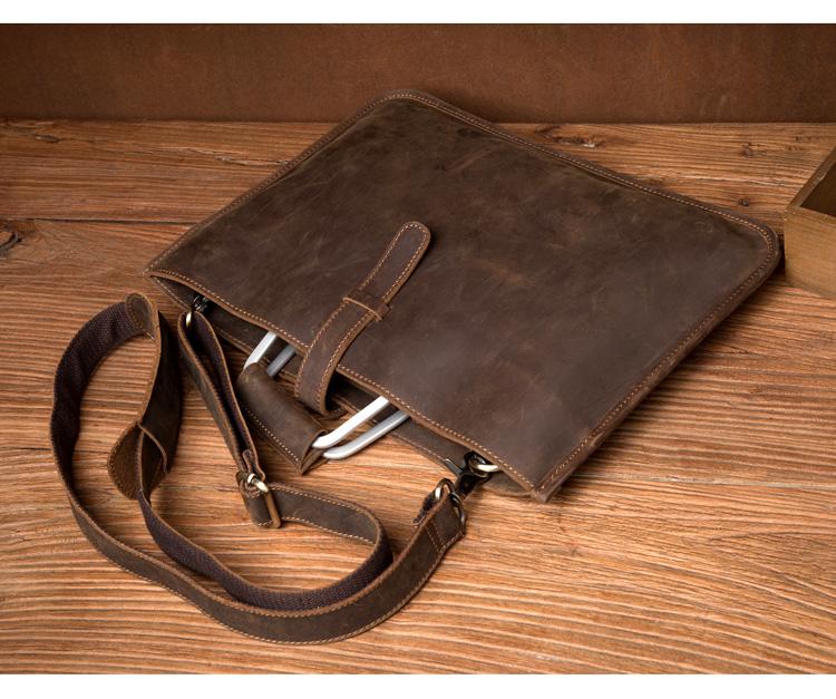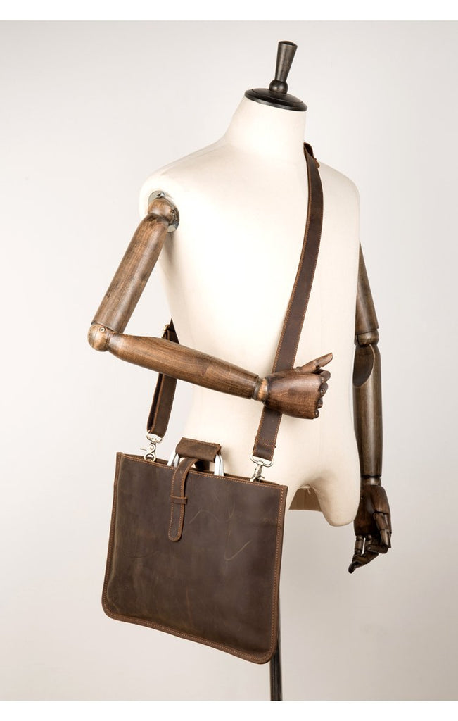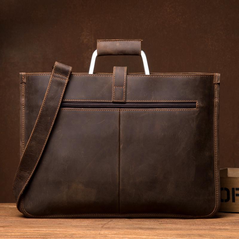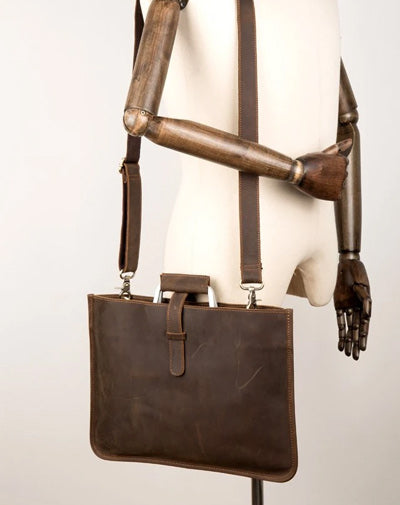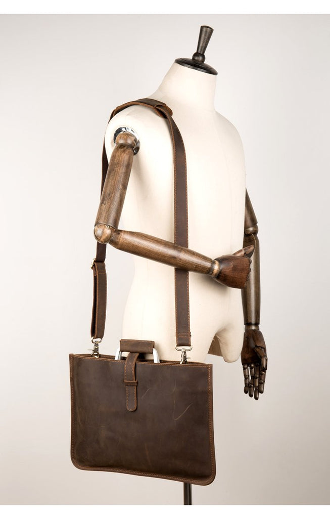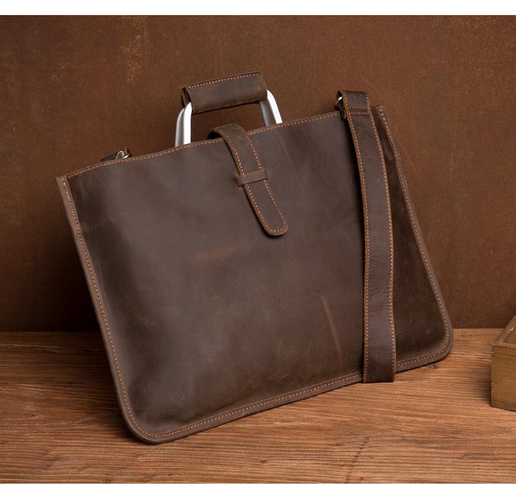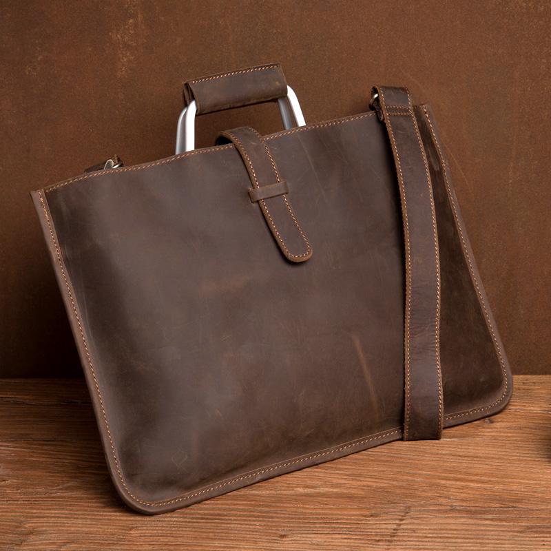 Design: Dark Brown Leather Mens 12 inches Briefcase Laptop Bag Business Bags Work Bag for Men