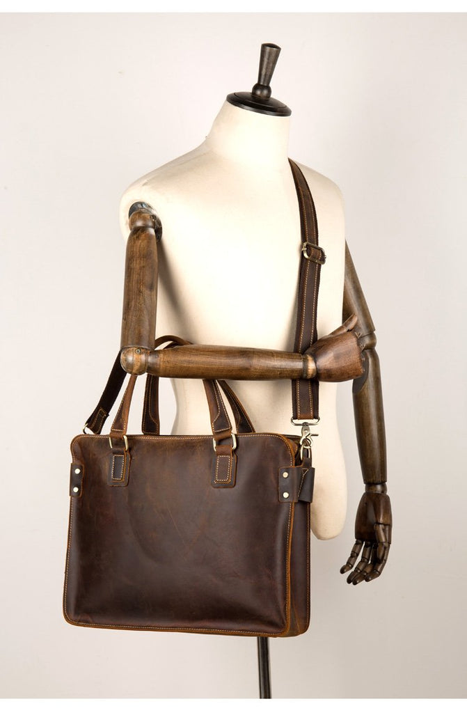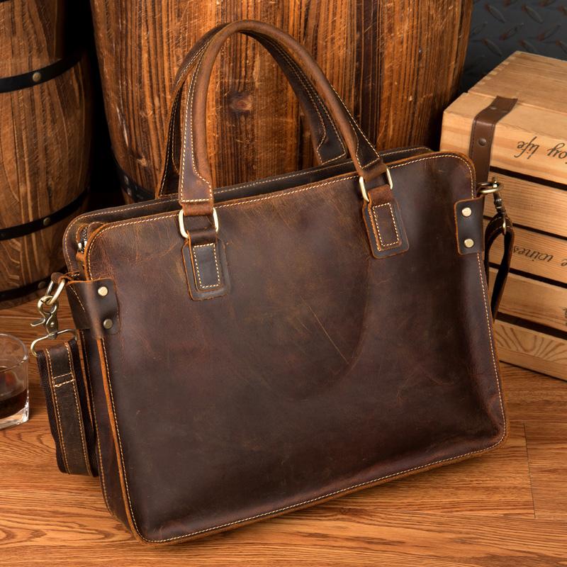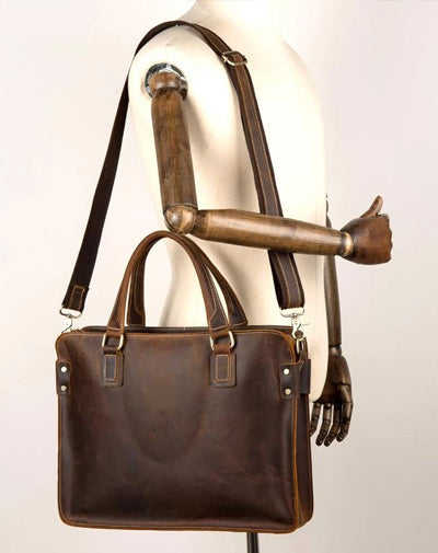 Style: Dark Brown Leather Mens 14 inches Briefcase Laptop Bag Business Bags Work Bags for Men