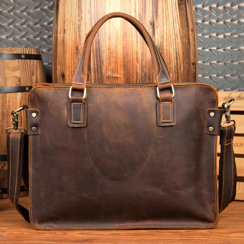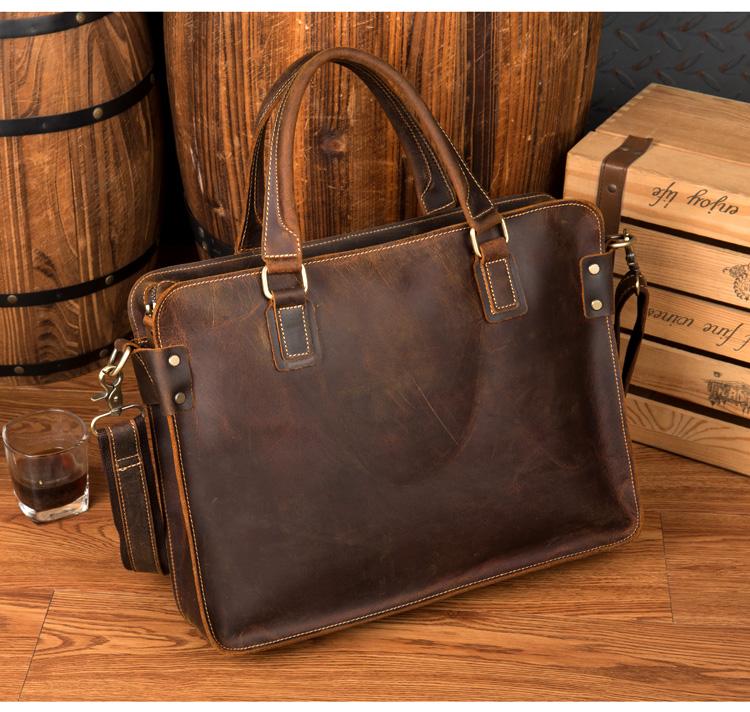 Design: Dark Brown Leather Mens 14 inches Briefcase Laptop Bag Business Bags Work Bags for Men