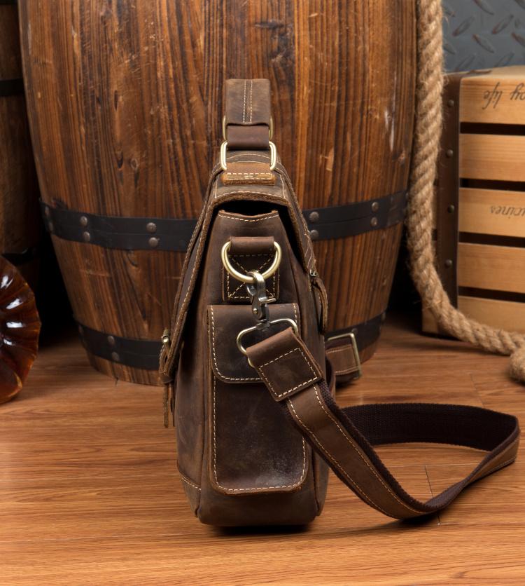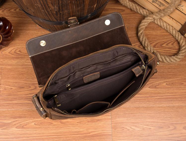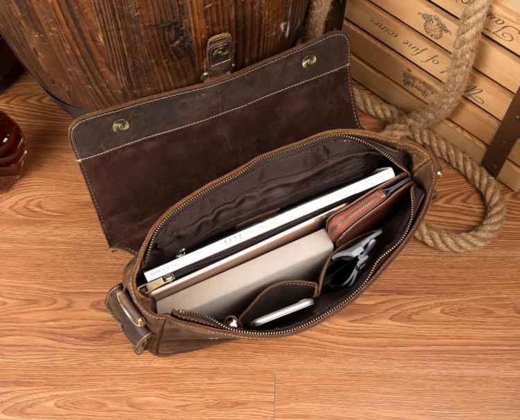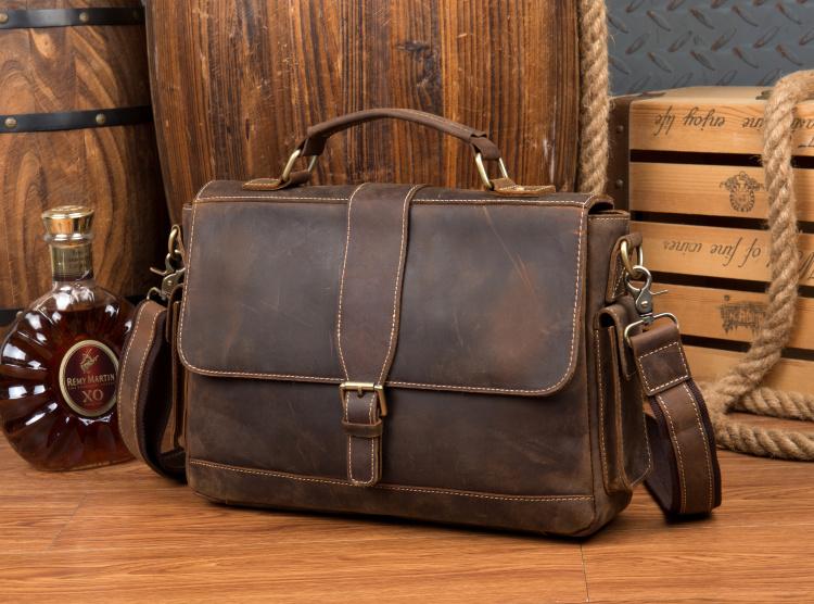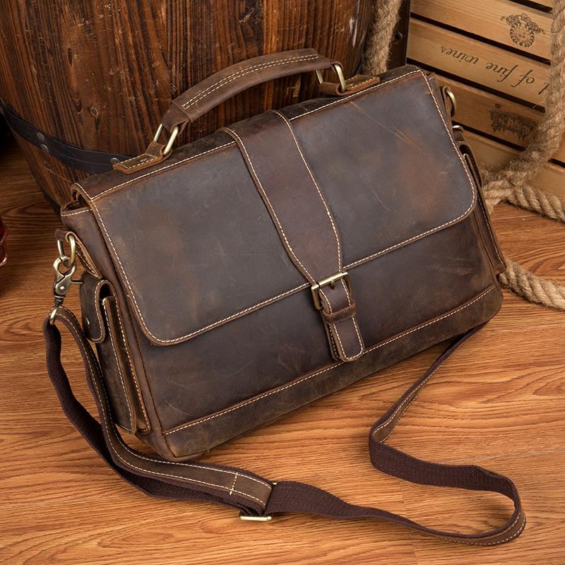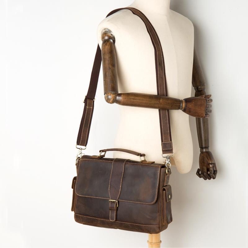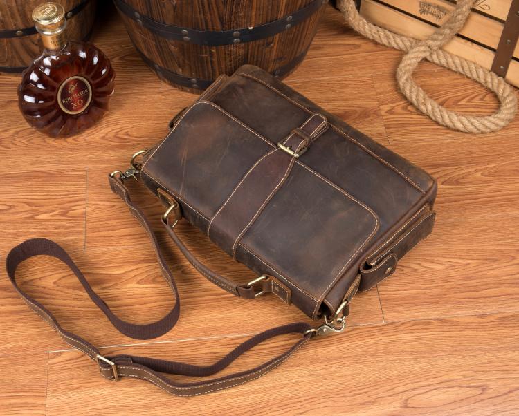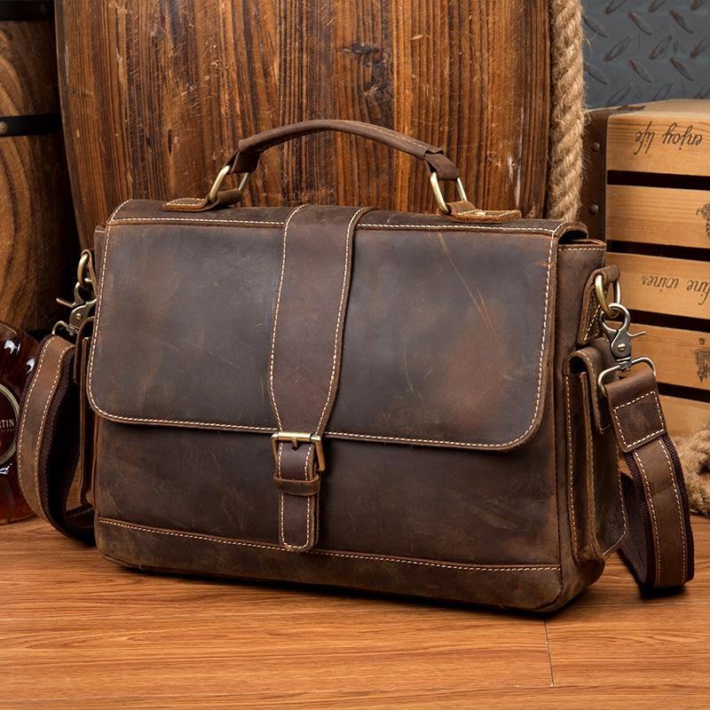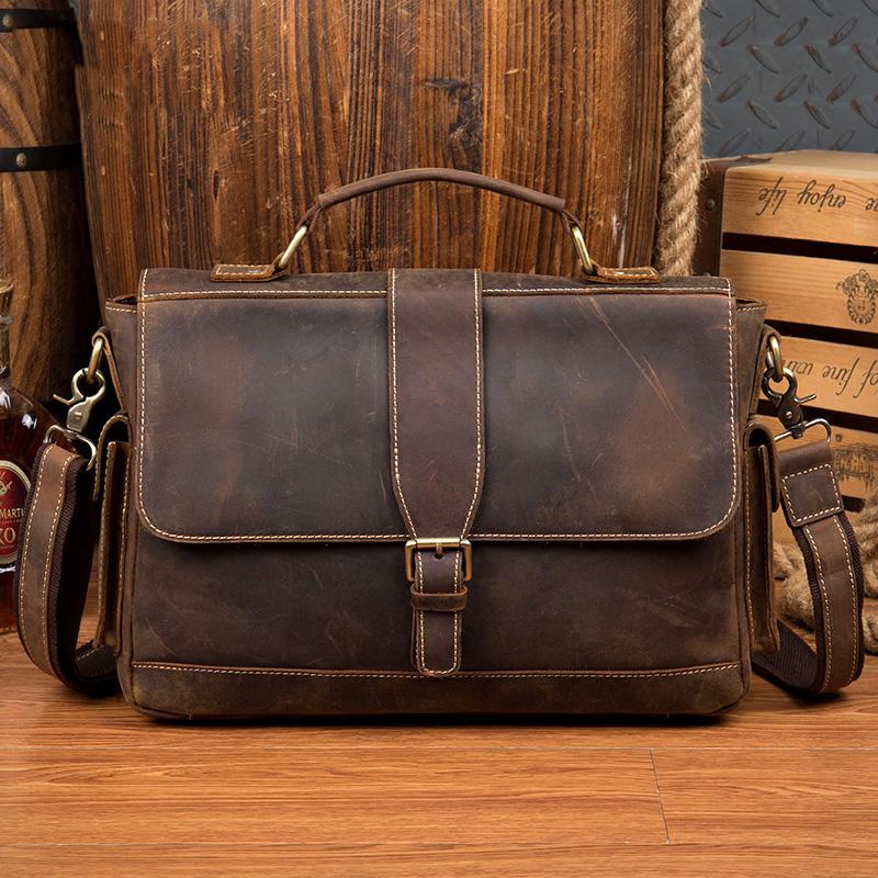 Style: Dark Brown Leather Mens 14 inches Briefcase Laptop Bags Business Bag Work Bag for Men