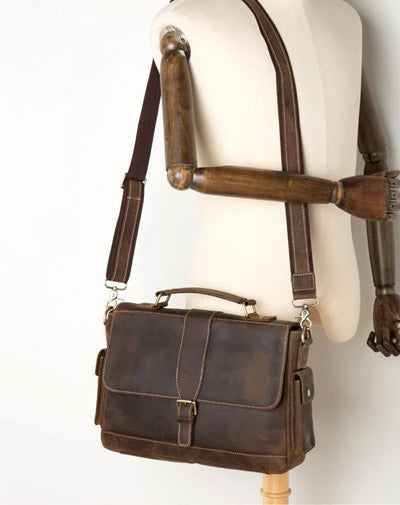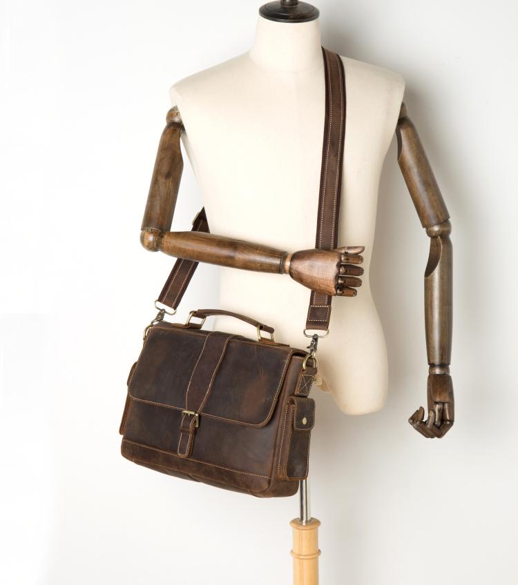Design: Dark Brown Leather Mens 14 inches Briefcase Laptop Bags Business Bag Work Bag for Men