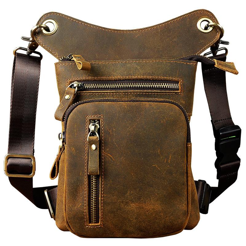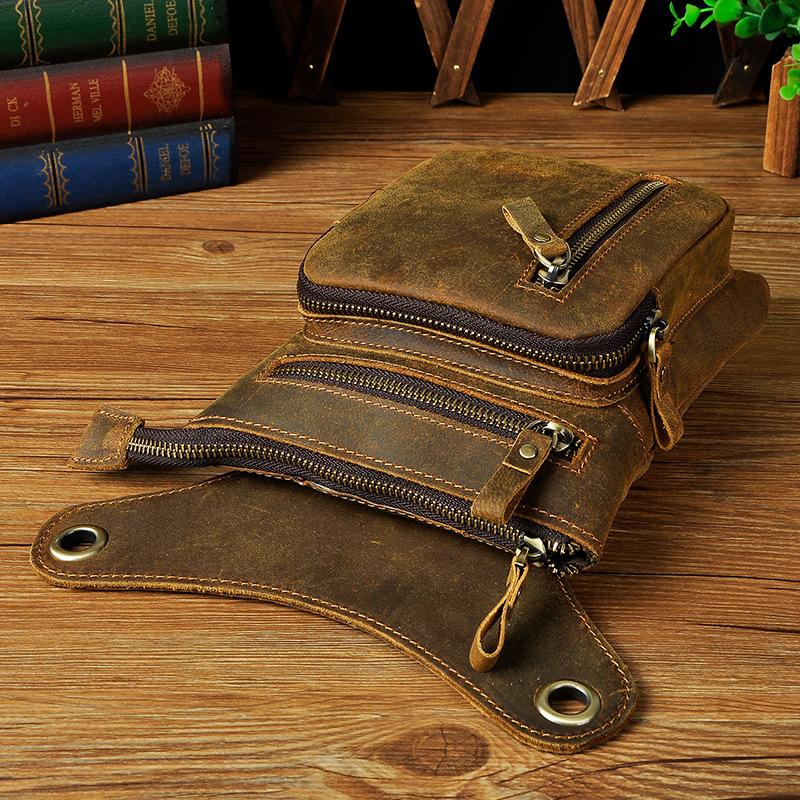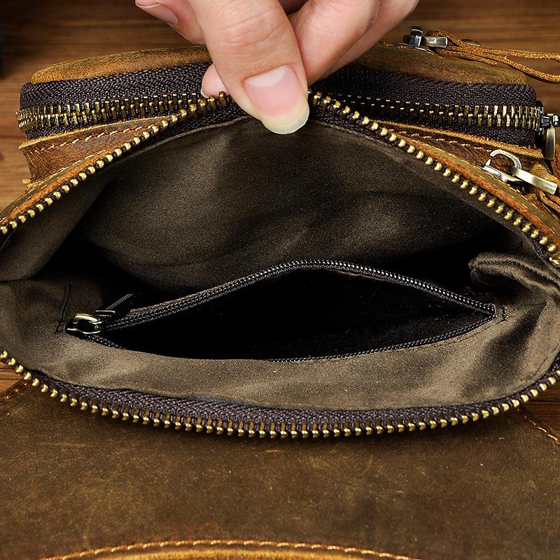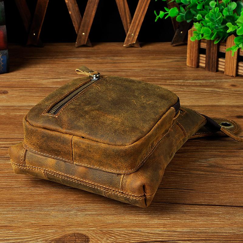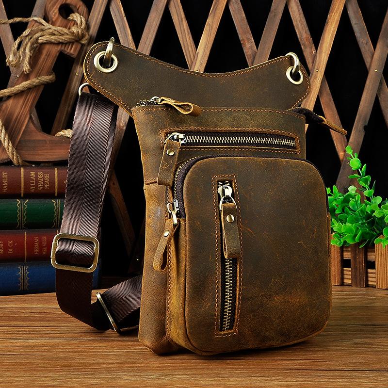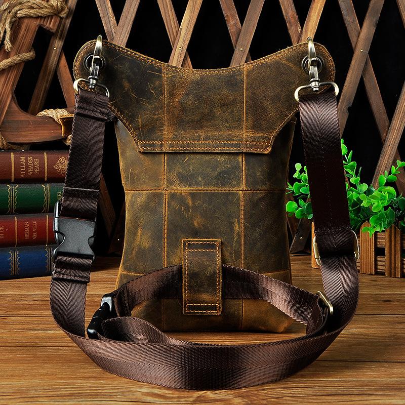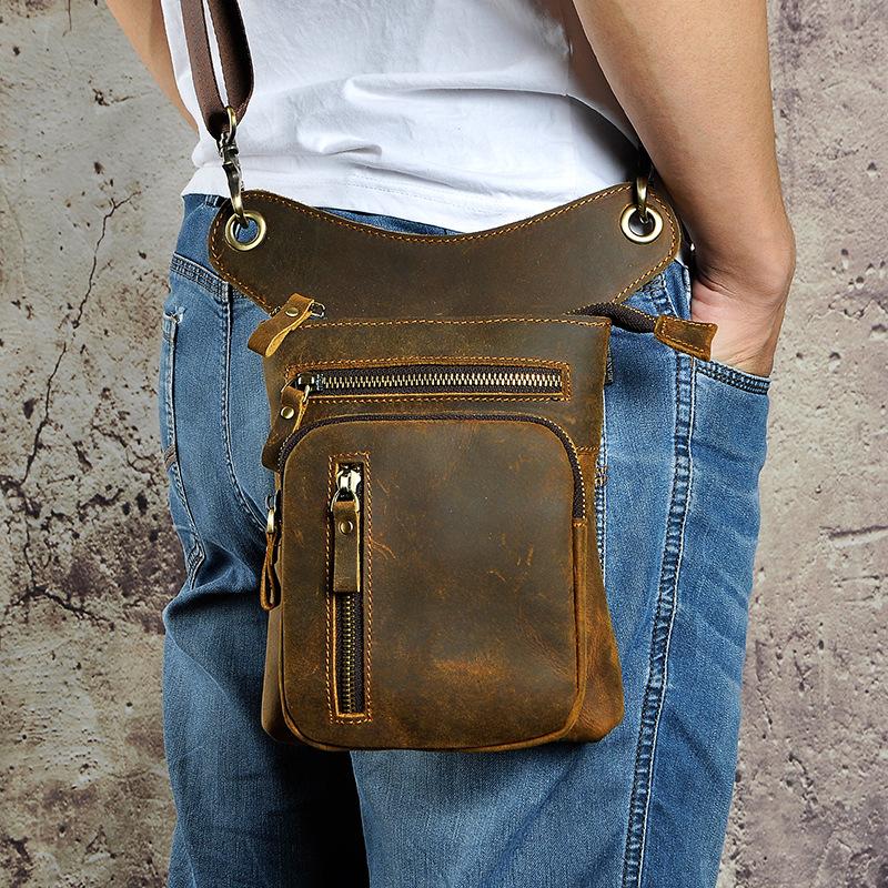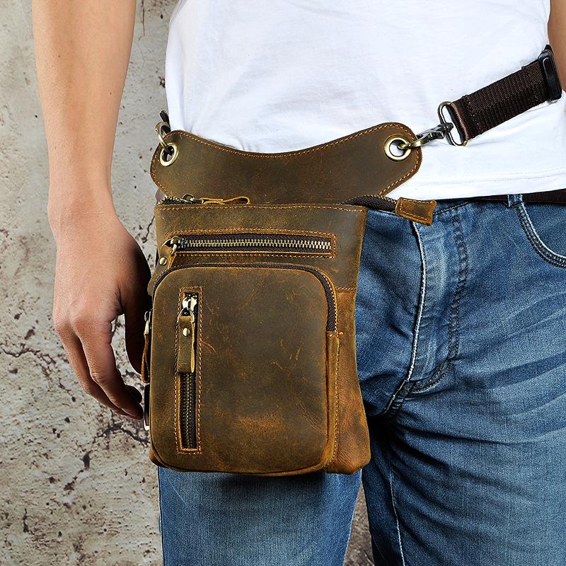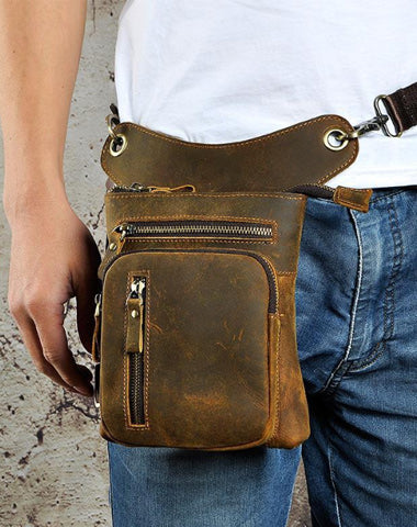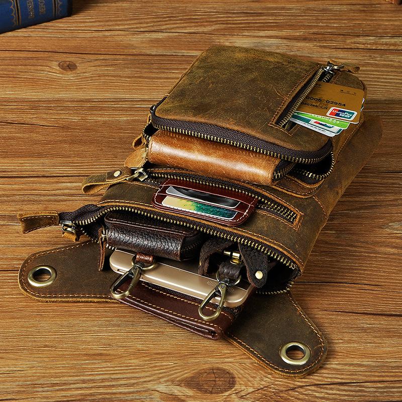 Design: Dark Brown LEATHER MEN'S 8 inches Belt Pouch Mini Side bag Vertical Phone Bag MESSENGER BAG Belt Bag FOR MENOverview: