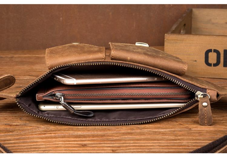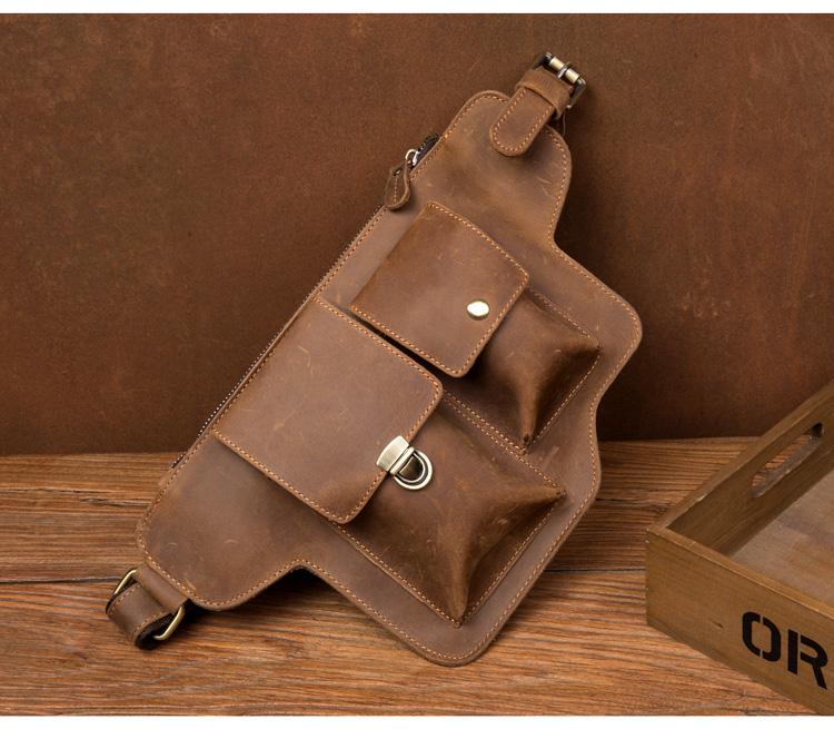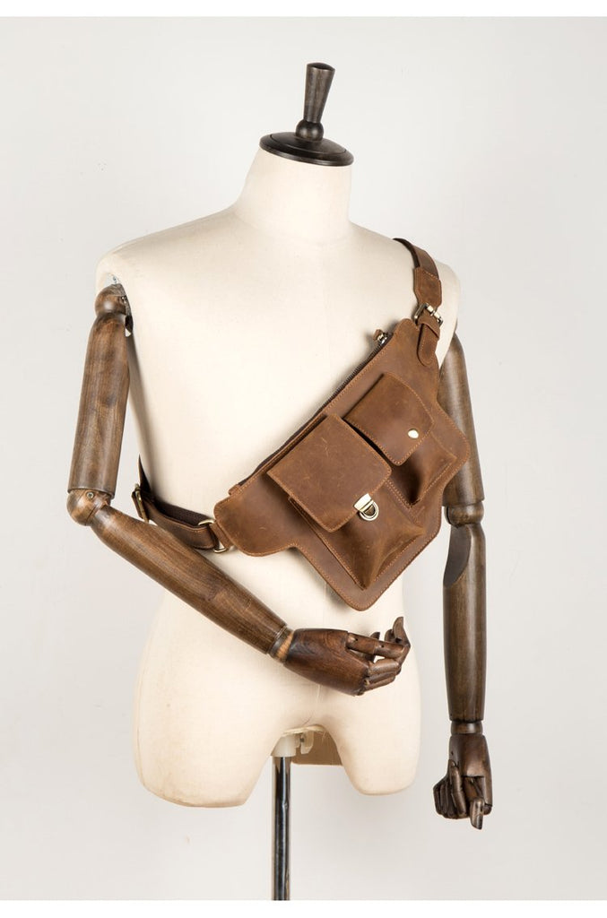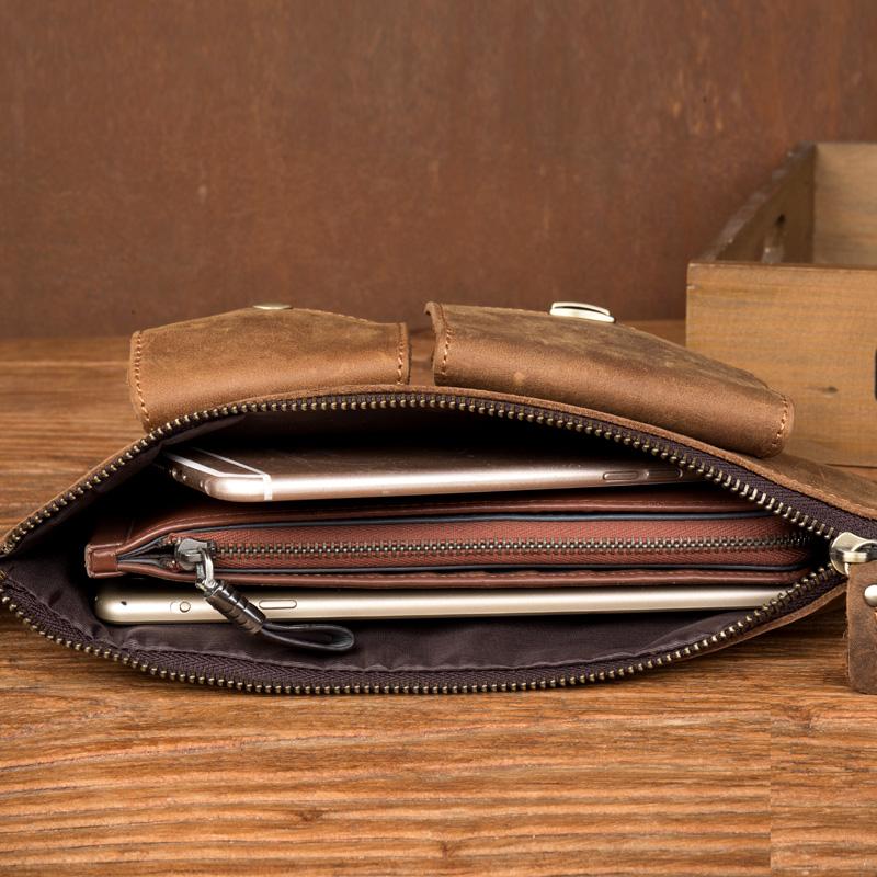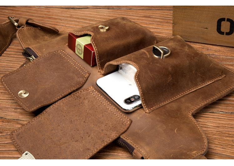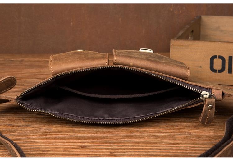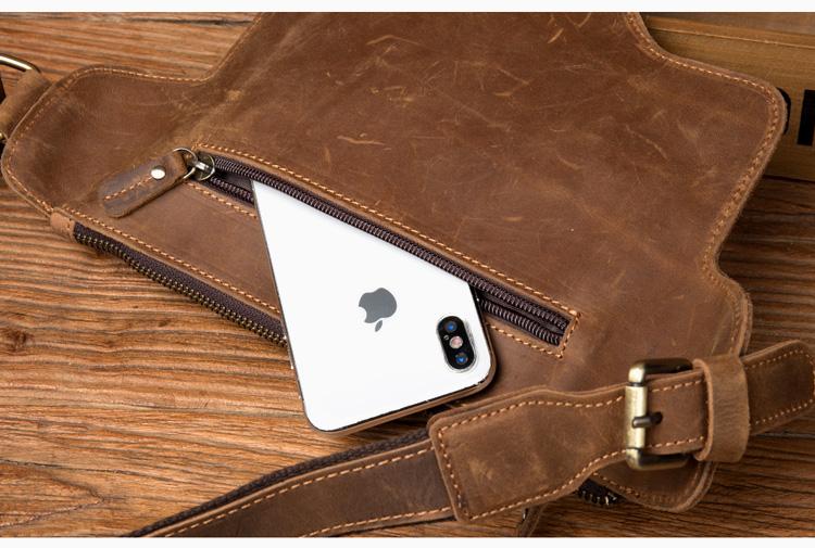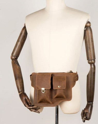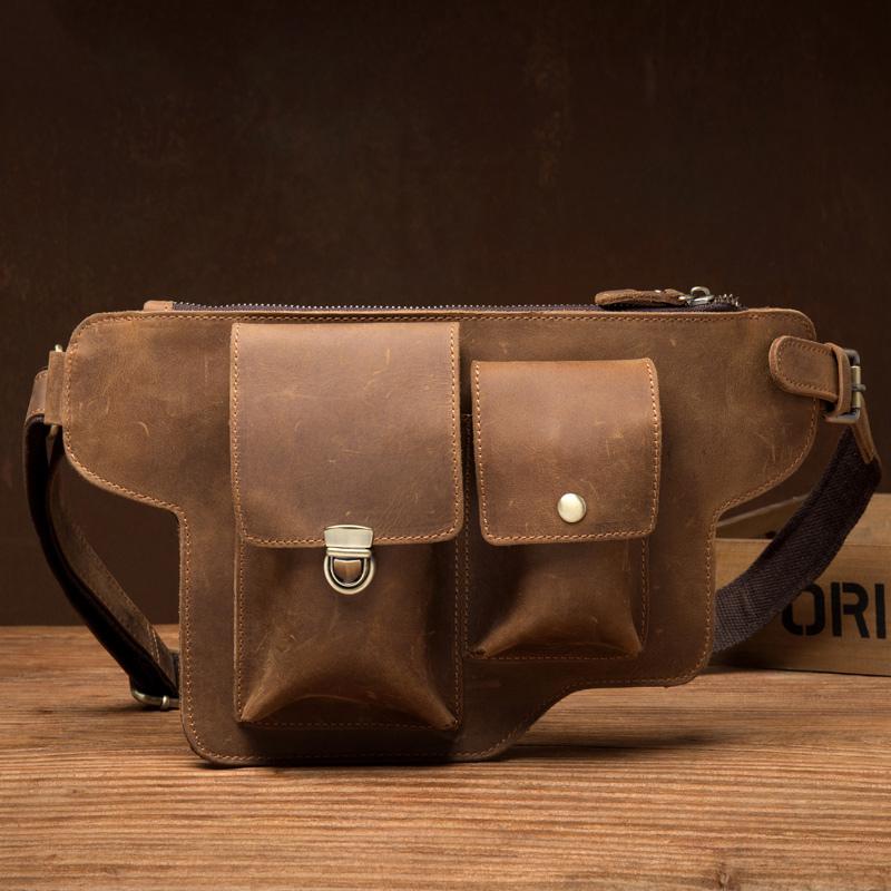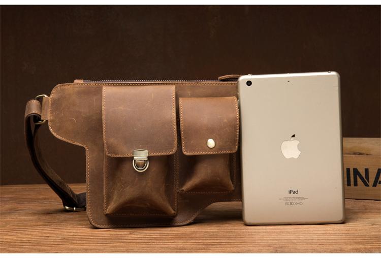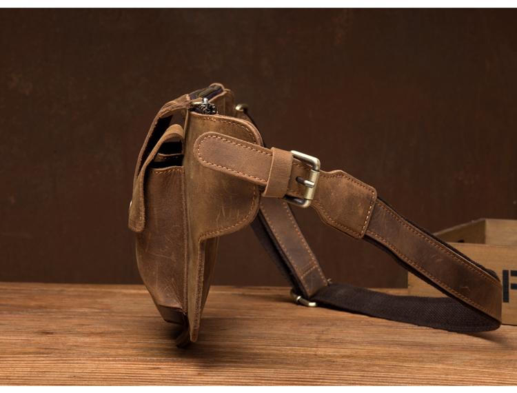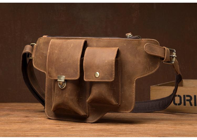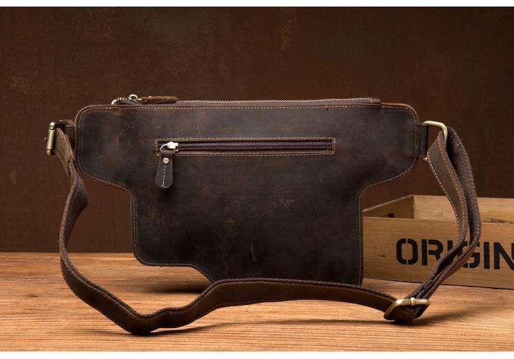 Design: Dark Brown Leather Mens 8 inches Brown Waist Bag Hip Pack Belt Bag Bumbag for Men