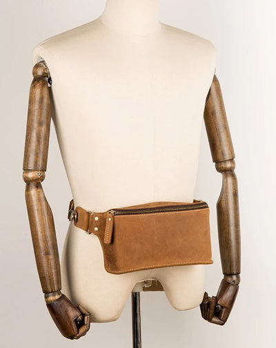 Style: Dark Brown Leather Mens 8 inches Light Brown Waist Bag Hip Pack Belt Bag Bumbag for Men