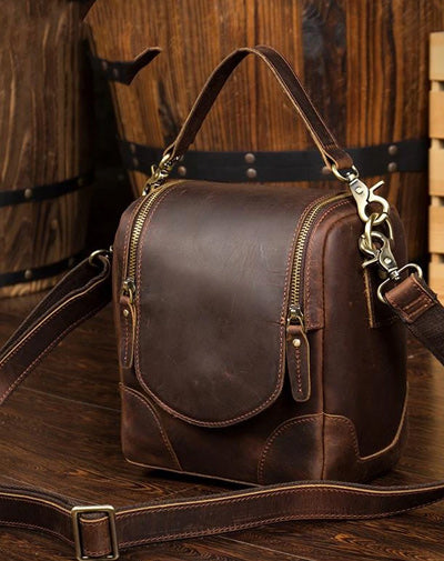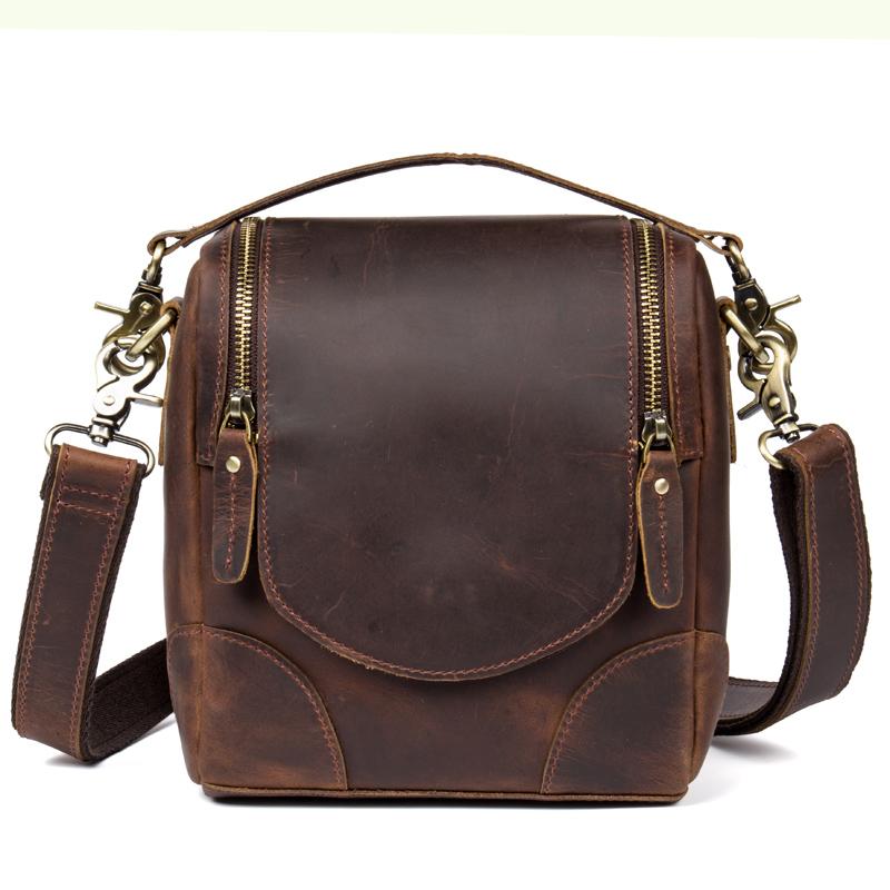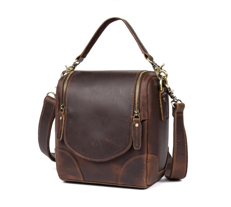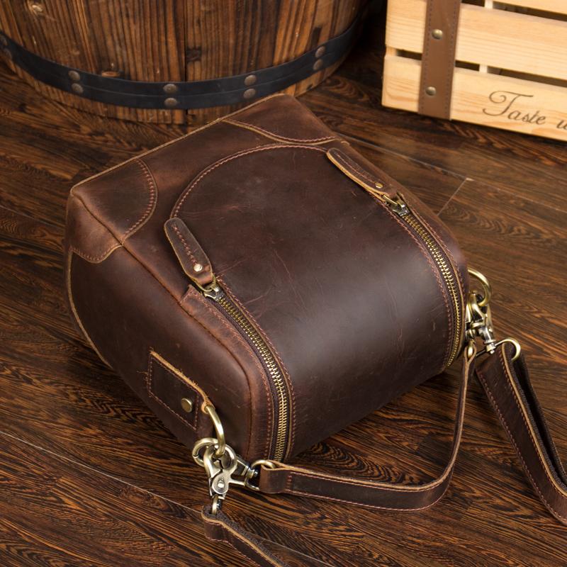 Style: Dark Brown Leather Mens Camera Bag Shoulder Bag Messenger Bag For Men