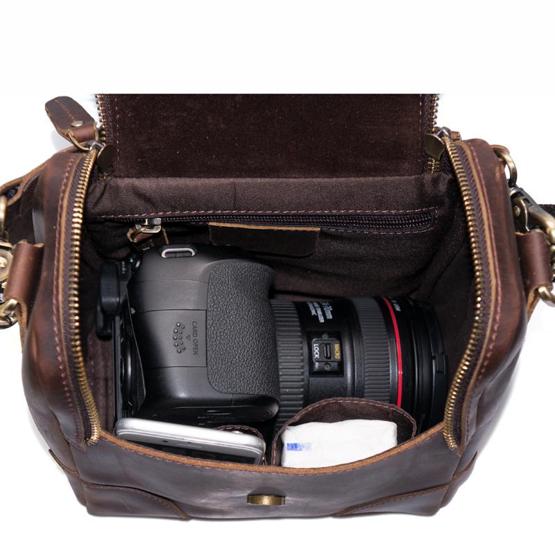 Design: Dark Brown Leather Mens Camera Bag Shoulder Bag Messenger Bag For Men