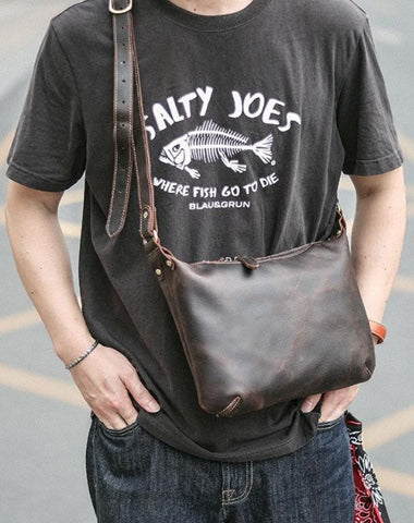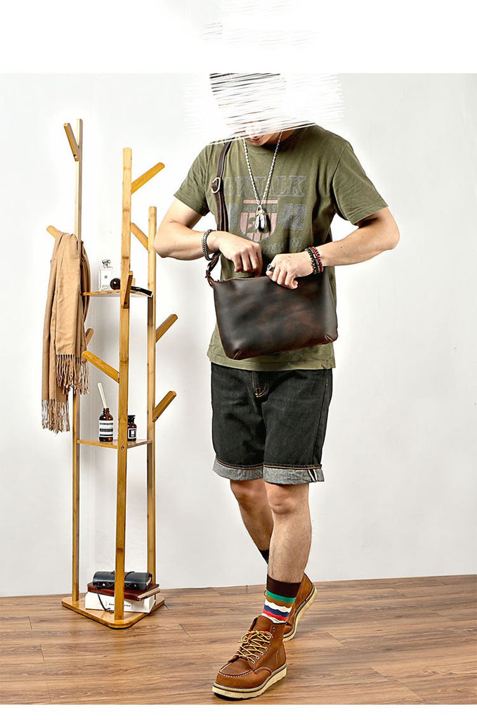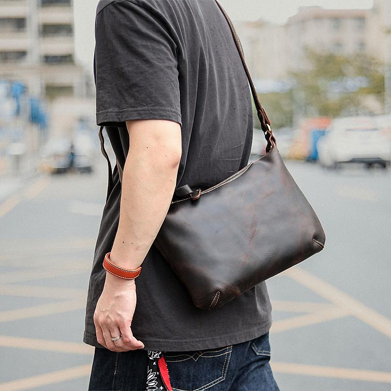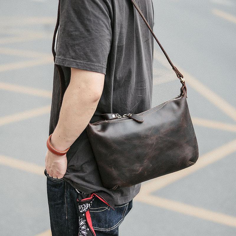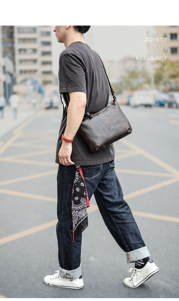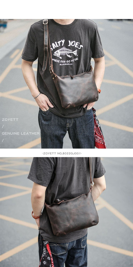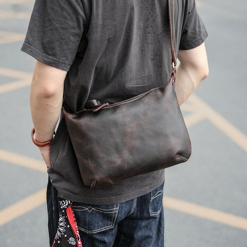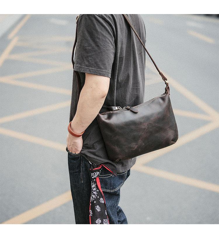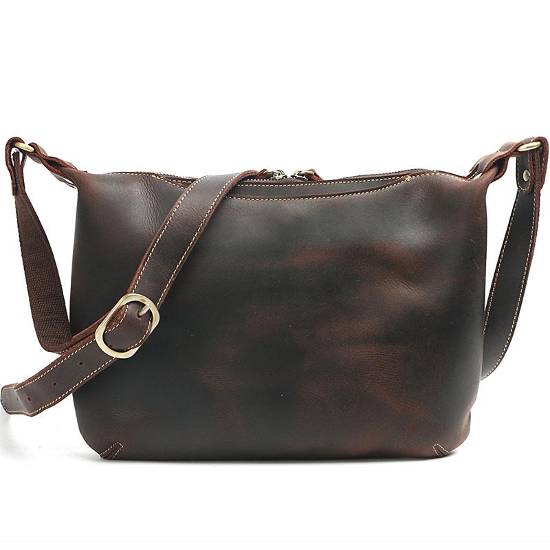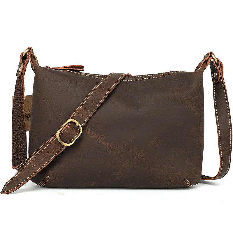Style: Dark Brown Leather Mens Casual 10" Courier Bags Messenger Bag Ancient Brown Postman Bags For Men