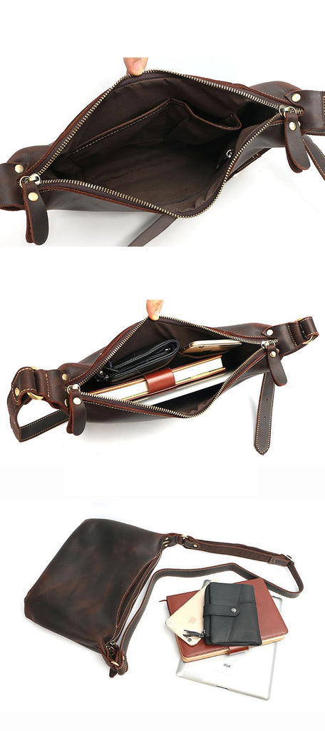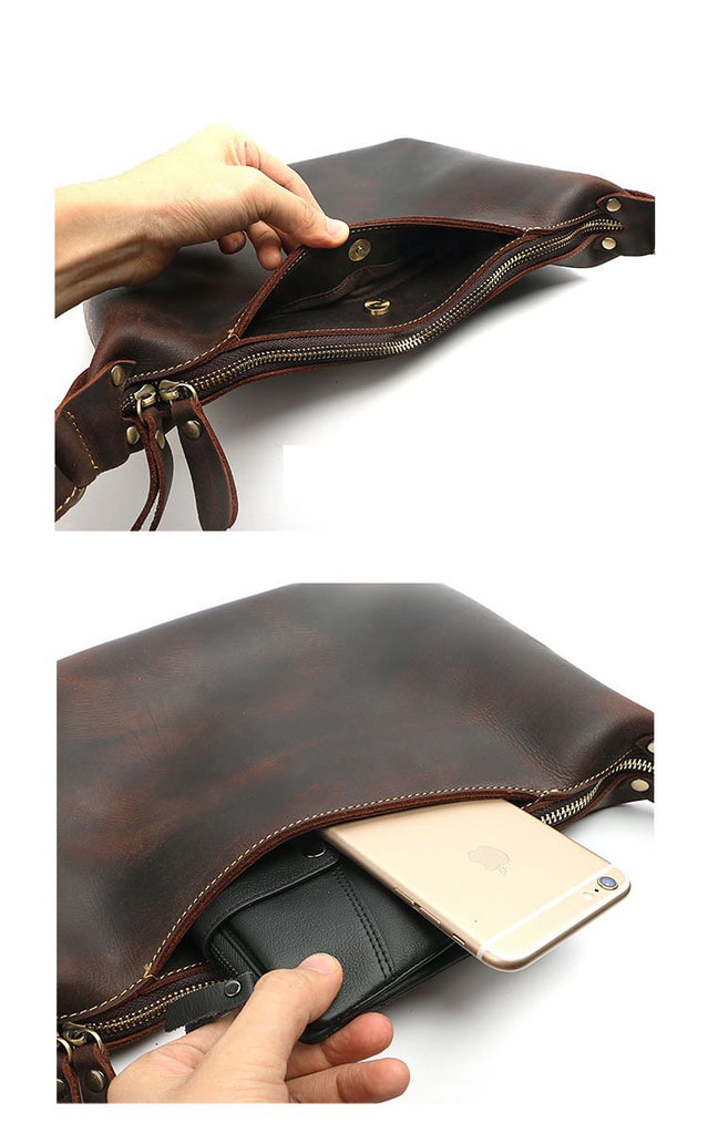 Design: Dark Brown Leather Mens Casual 10" Courier Bags Messenger Bag Ancient Brown Postman Bags For Men