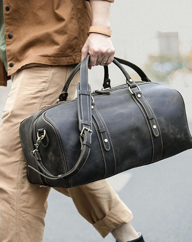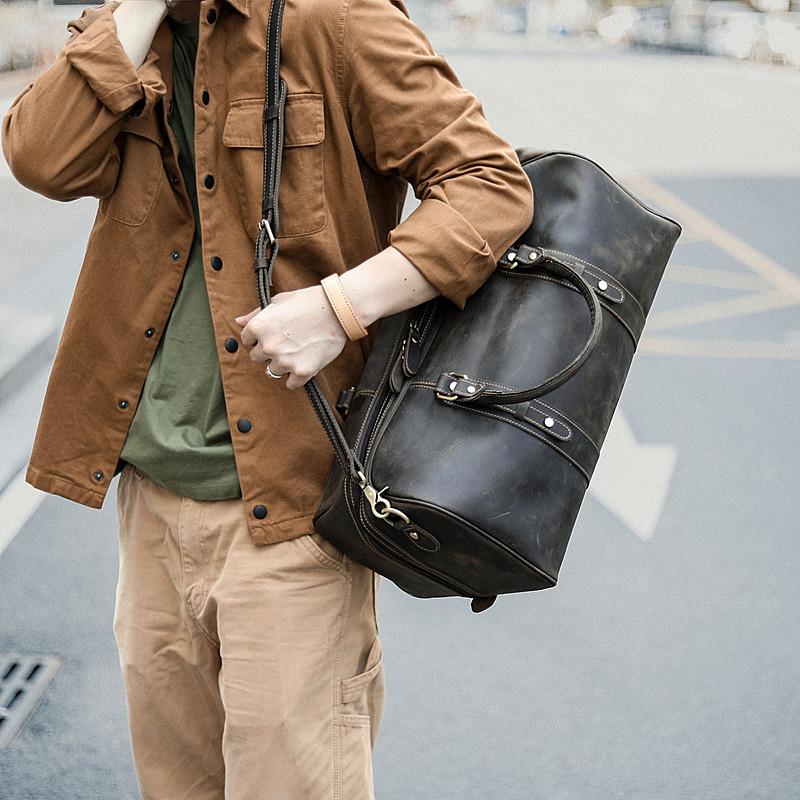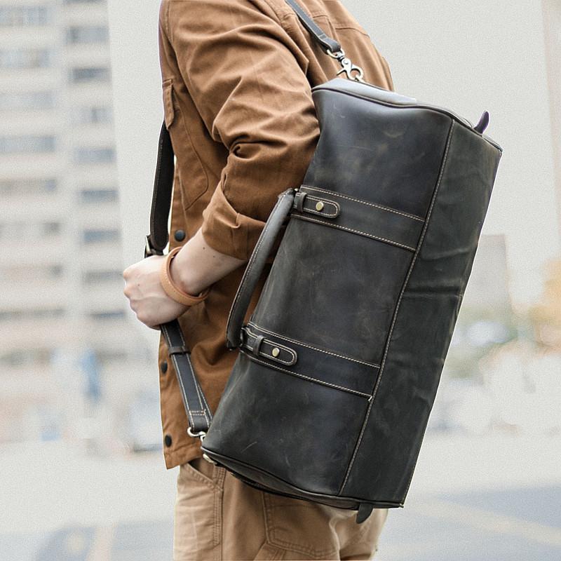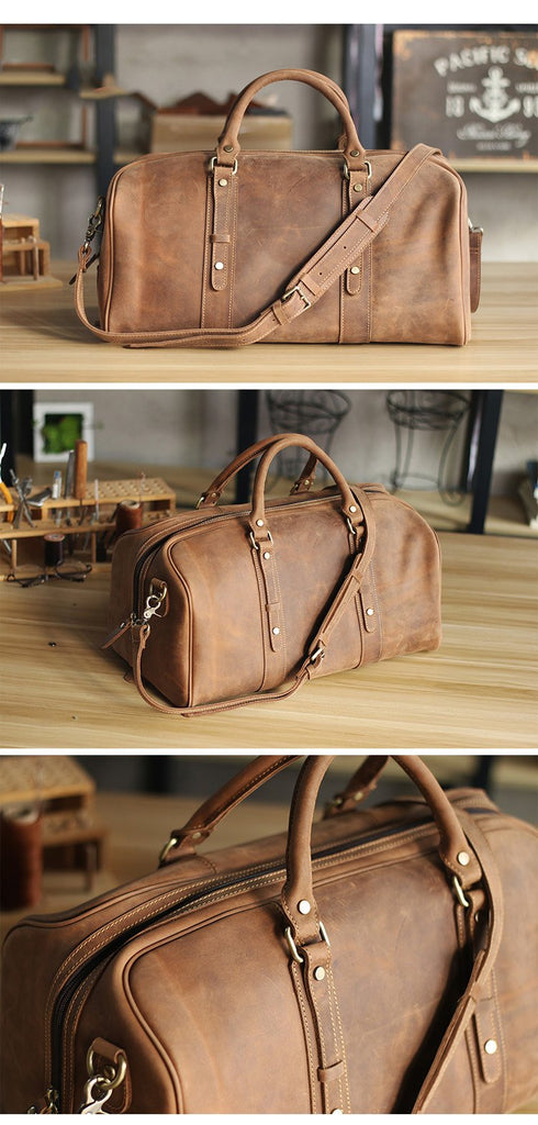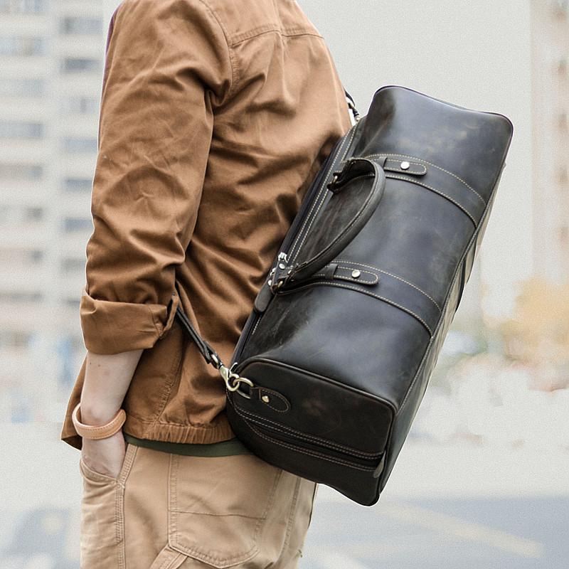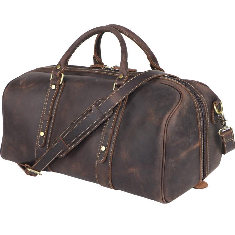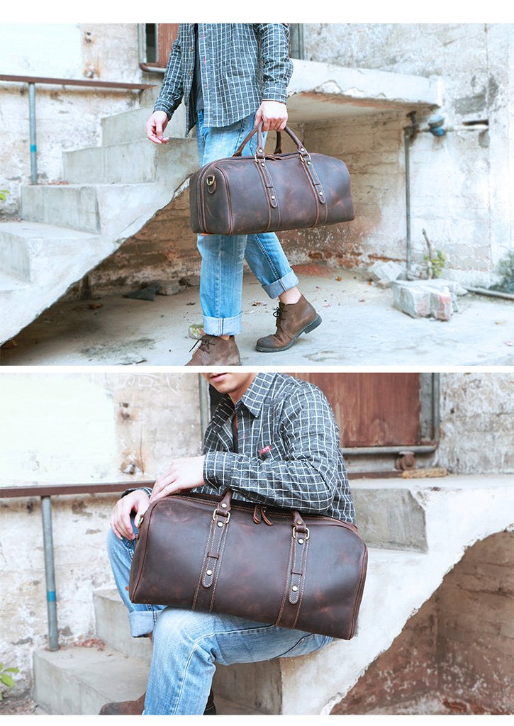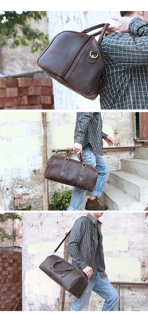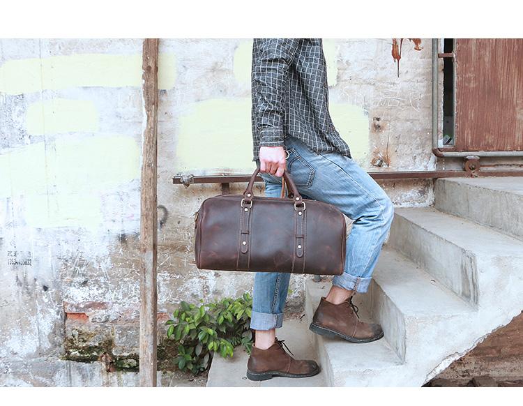 Style: Dark Brown Leather Mens Casual Large Travel Bag 16" Shoulder Weekender Bag Duffle Bag For Men