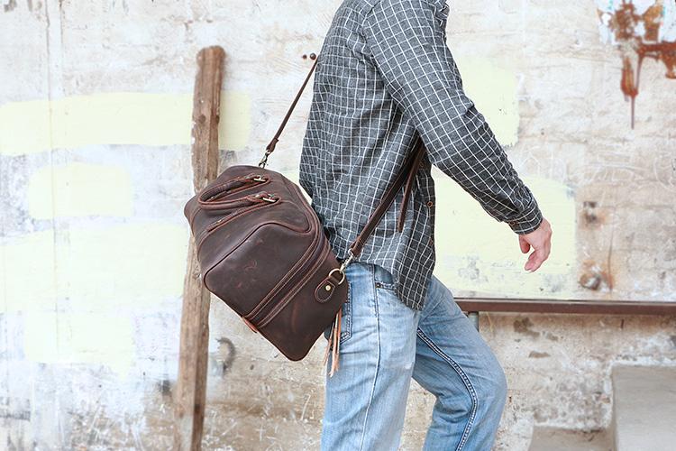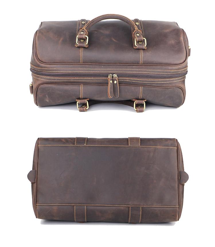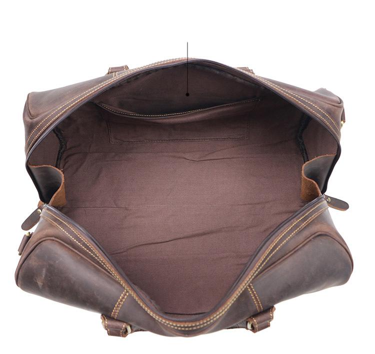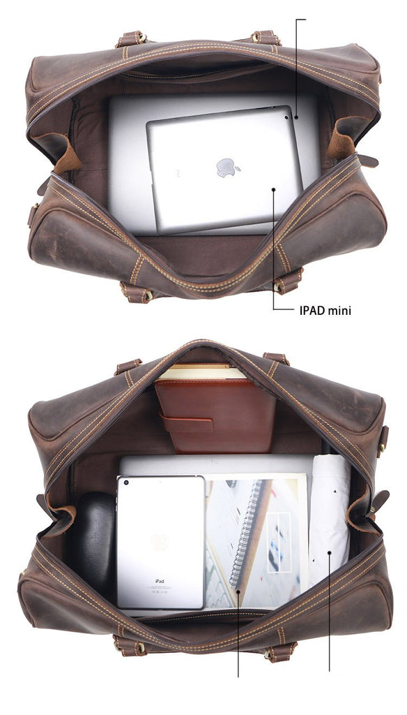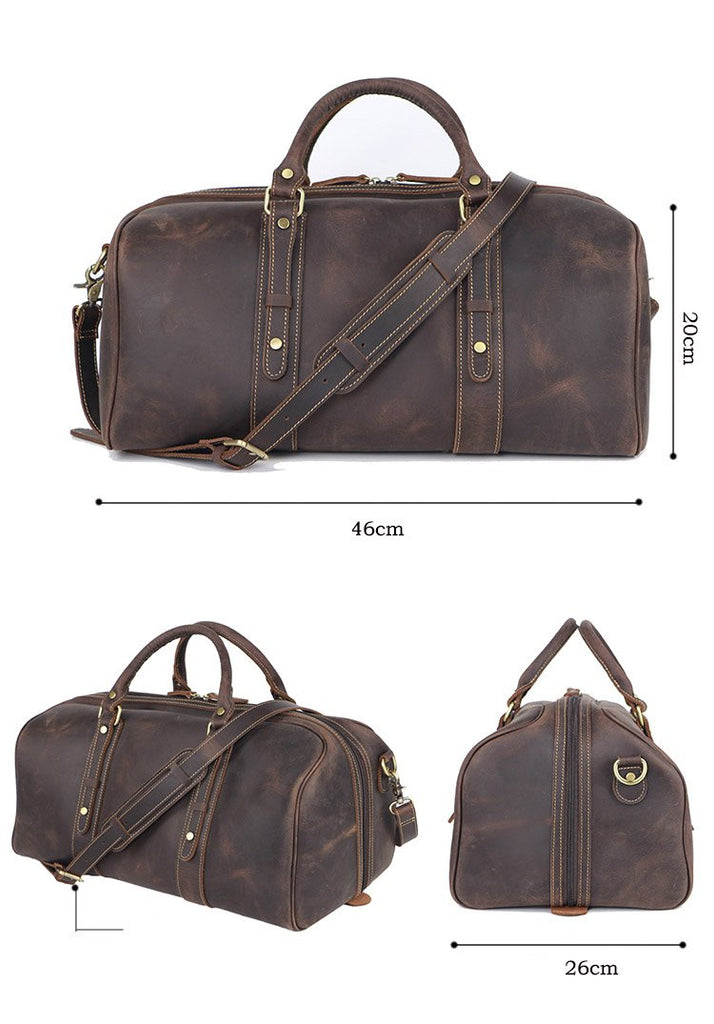 Design: Dark Brown Leather Mens Casual Large Travel Bag 16" Shoulder Weekender Bag Duffle Bag For Men