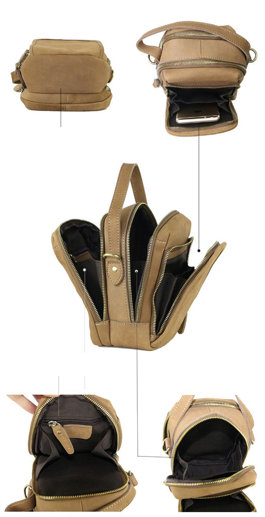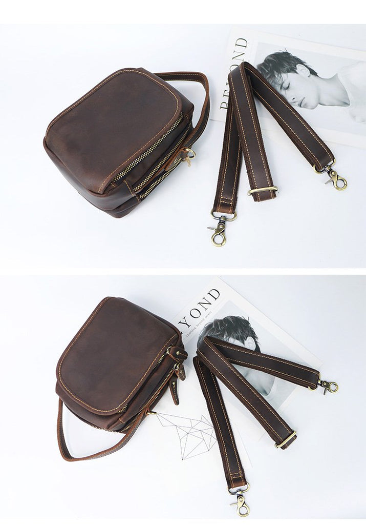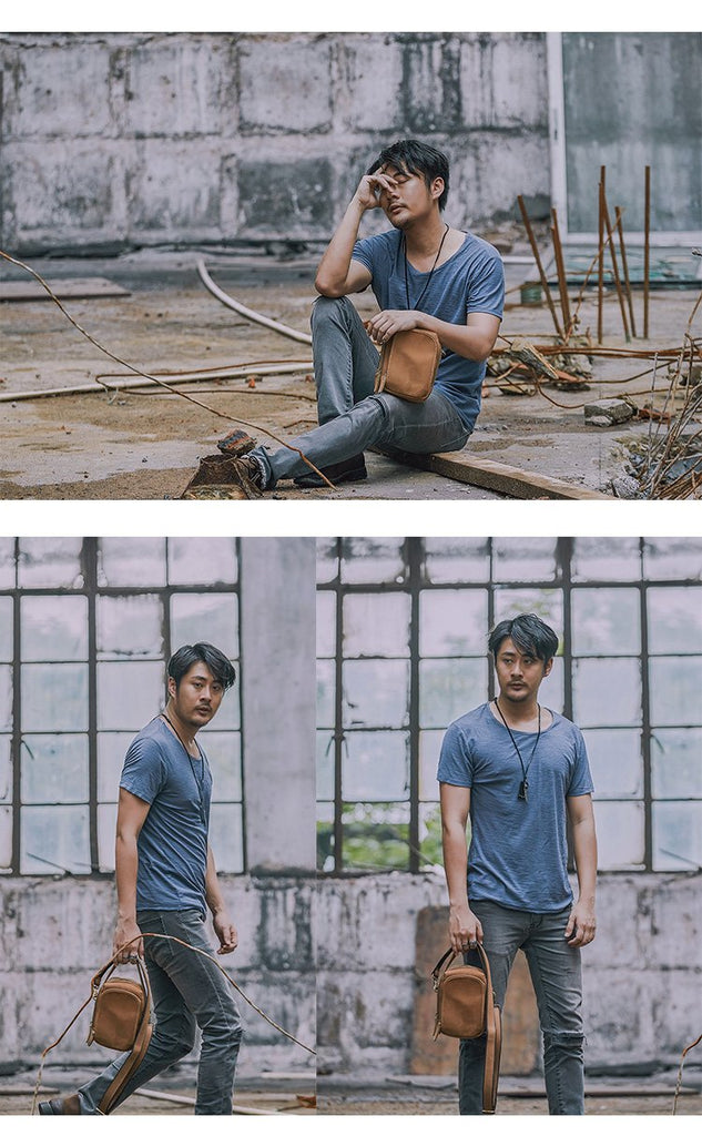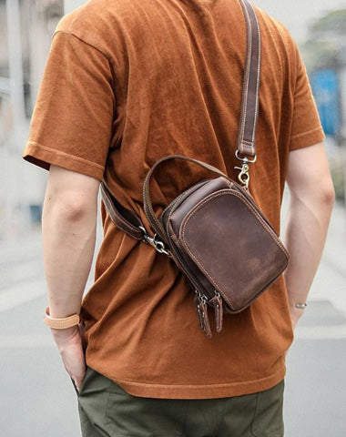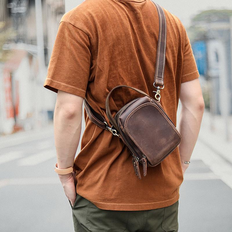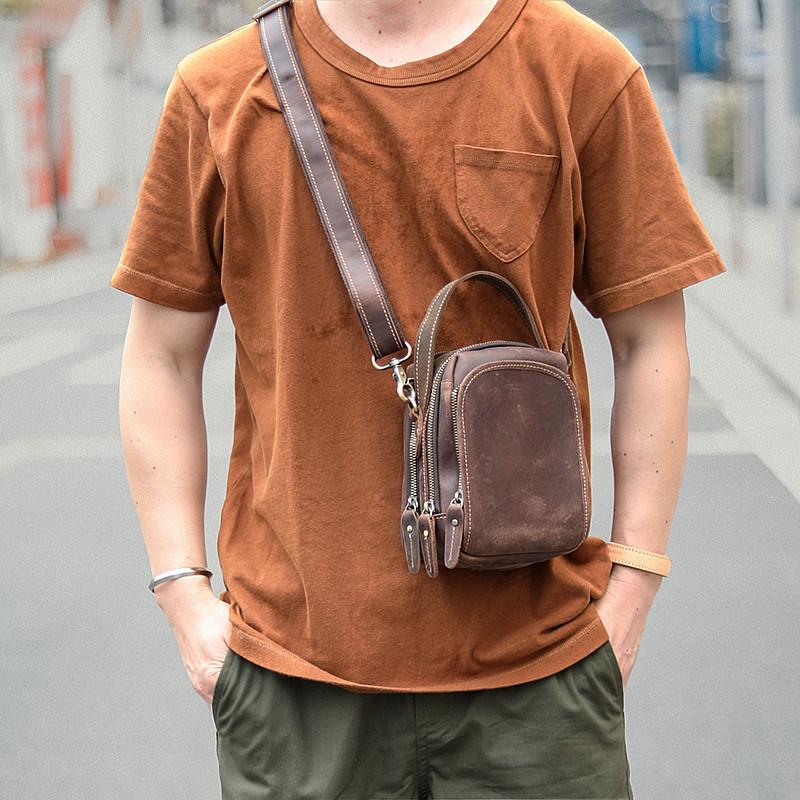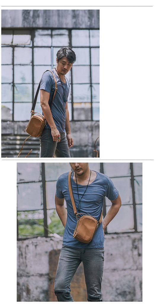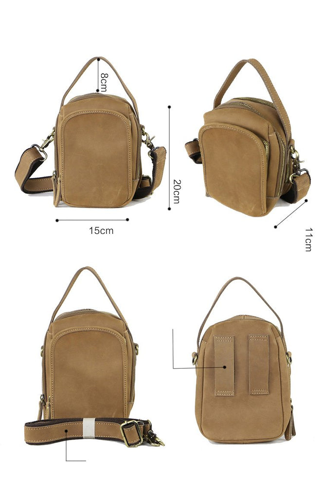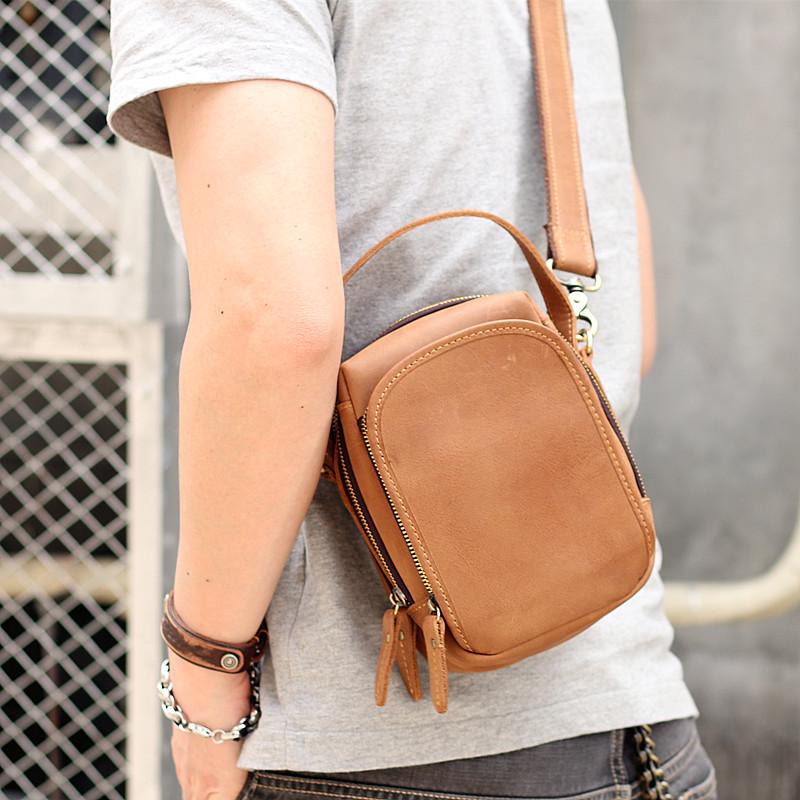 Style: Dark Brown Leather Mens Casual Small Courier Bag Messenger Bags Light Brown Postman Bag For Men