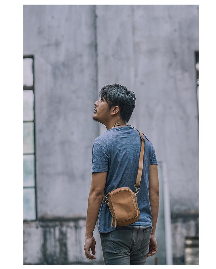 Design: Dark Brown Leather Mens Casual Small Courier Bag Messenger Bags Light Brown Postman Bag For Men