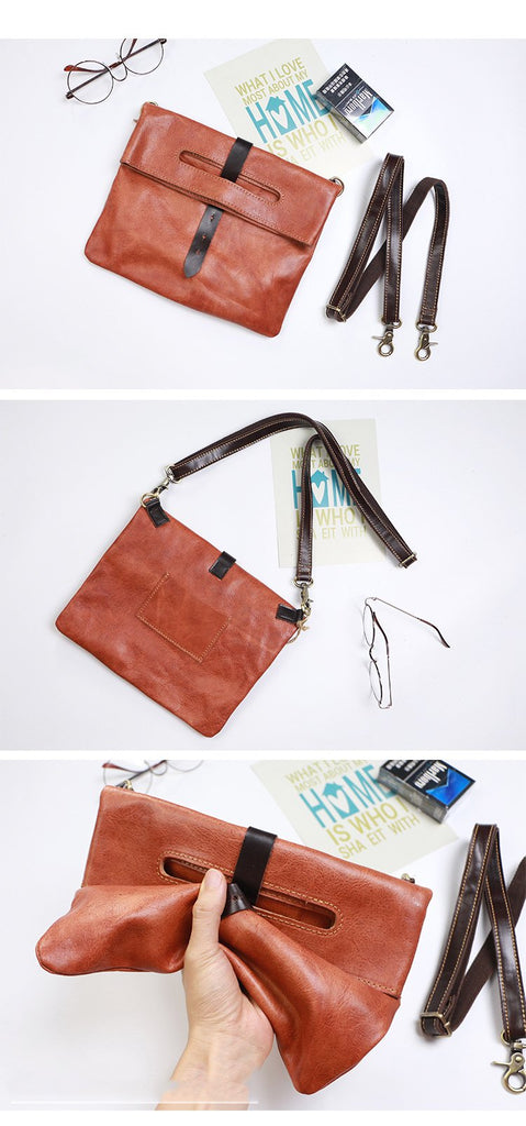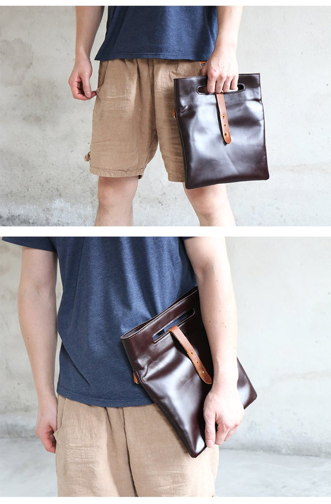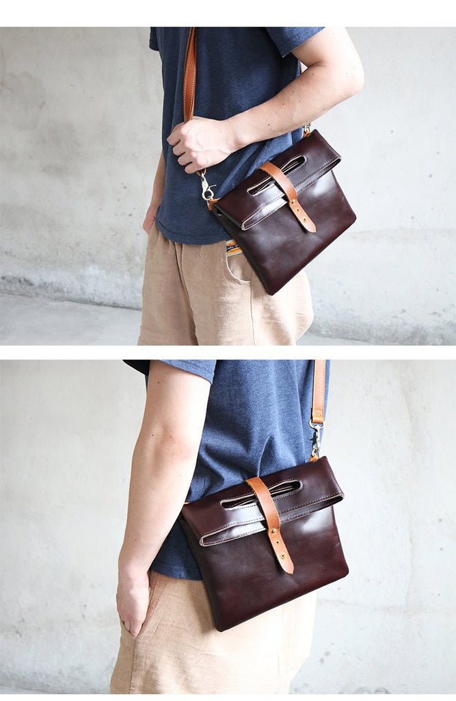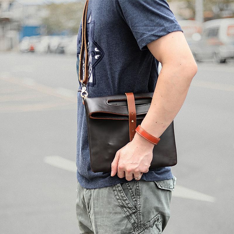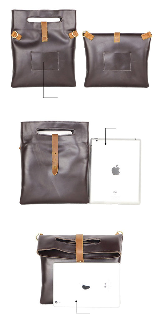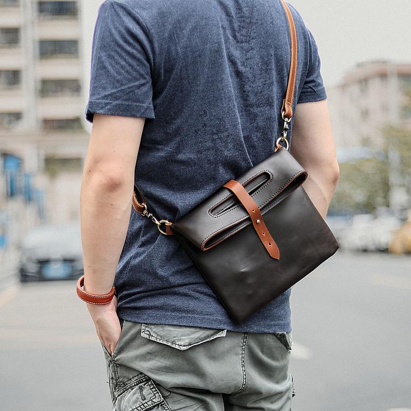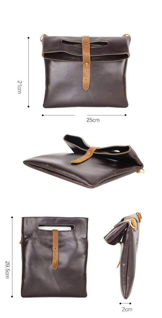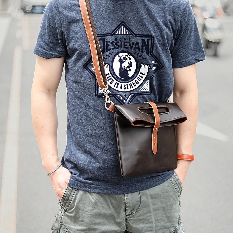 Design: Dark Brown Leather Mens Casual Small Crossbody Bags Messenger Bags Brown Postman Bag For Men