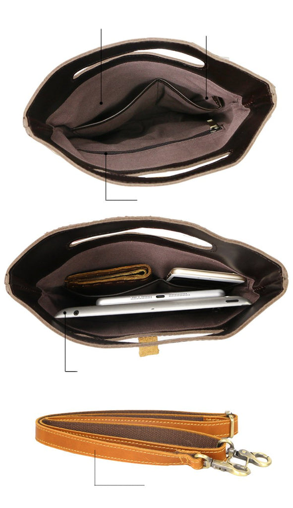 Slots: 1 zipper slot, 1 pad slot, 1 book slot, 1 wallet slots, 1 phone slot