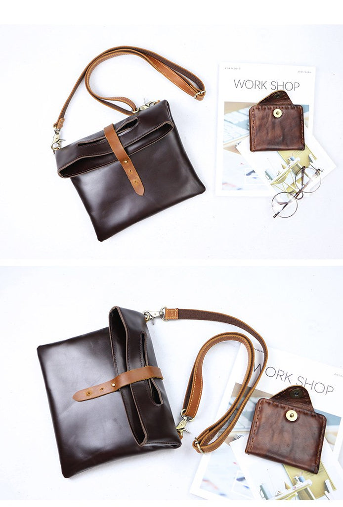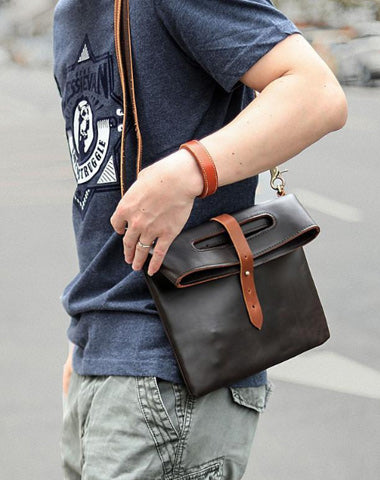 Style: Dark Brown Leather Mens Casual Small Crossbody Bags Messenger Bags Brown Postman Bag For Men