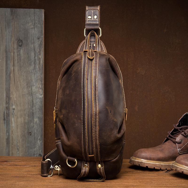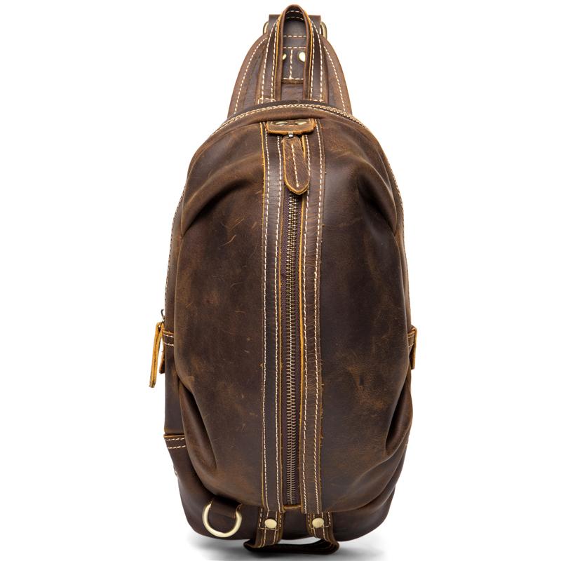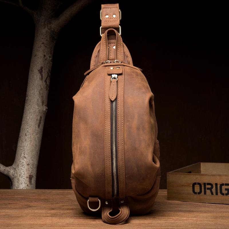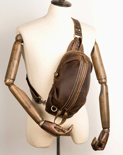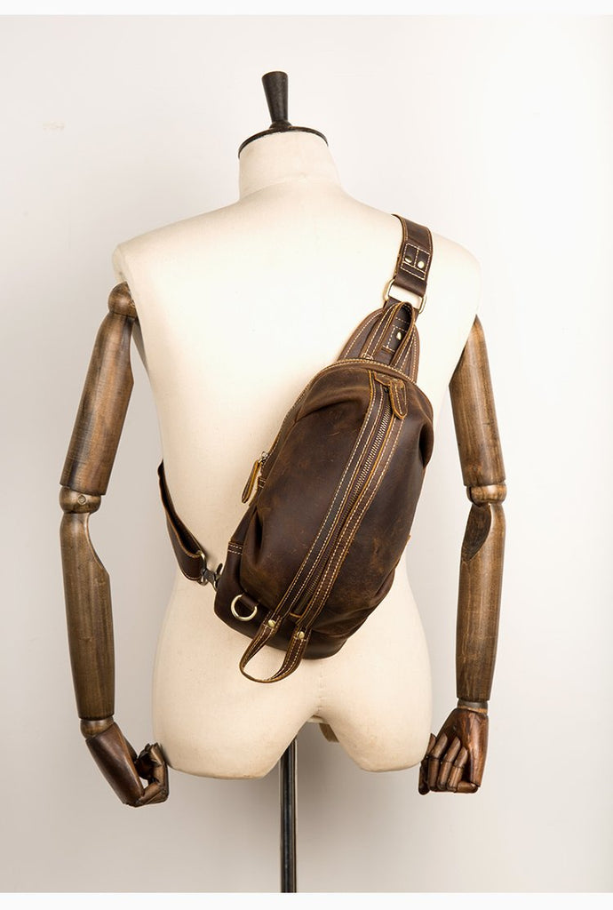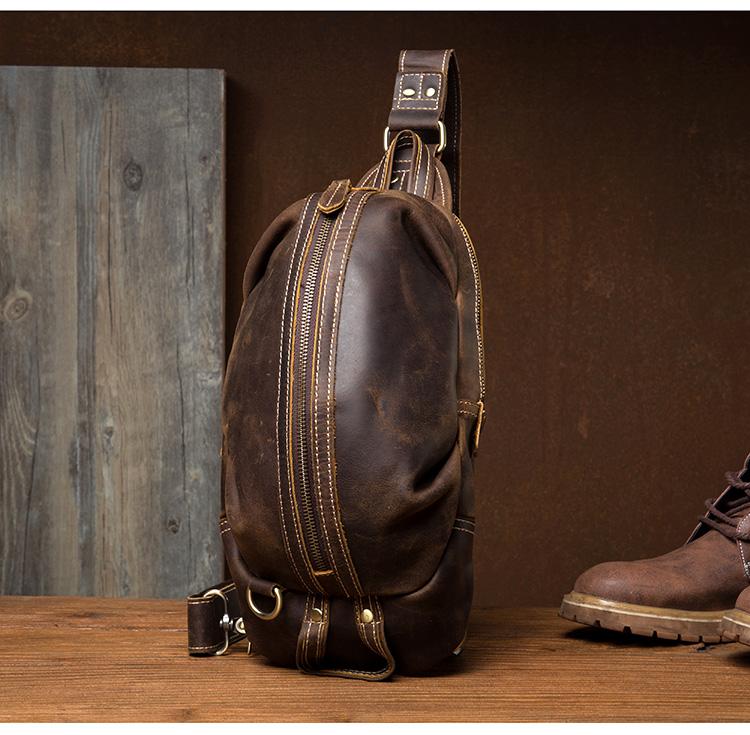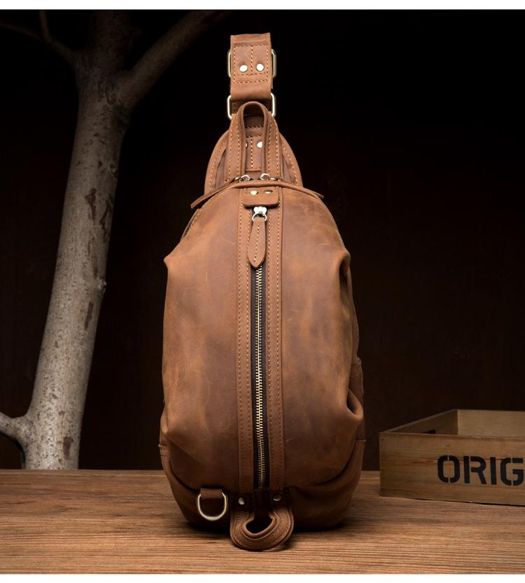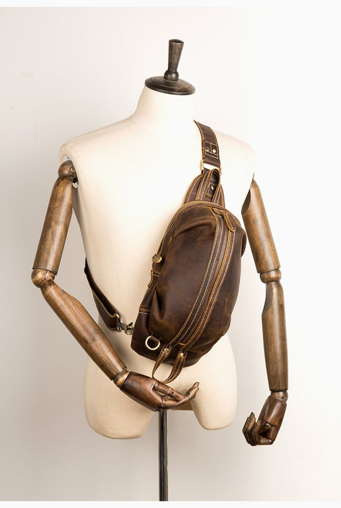 Style: Dark Brown Leather Mens Cool 8 inches Sling Bags Light Brown Crossbody Bag Chest Bag for men