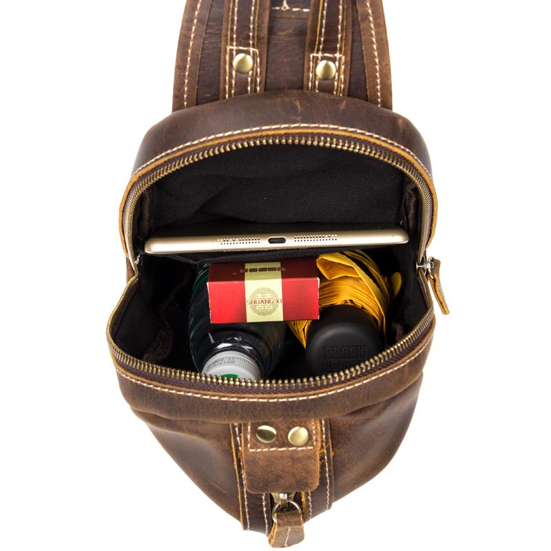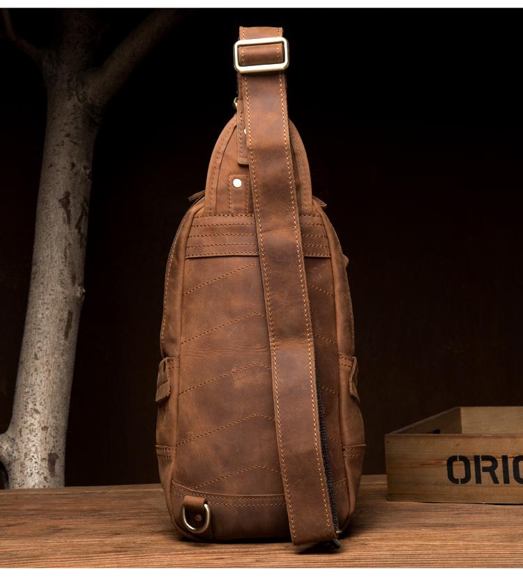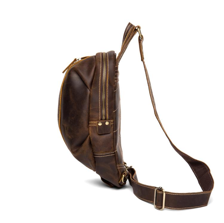 Design: Dark Brown Leather Mens Cool 8 inches Sling Bags Light Brown Crossbody Bag Chest Bag for men