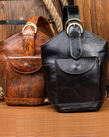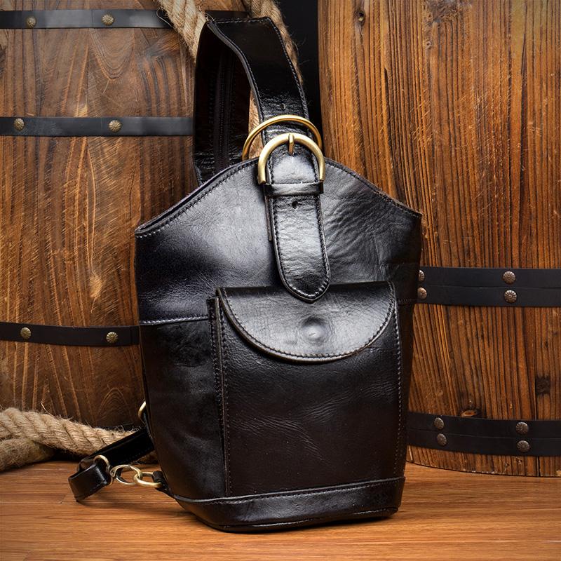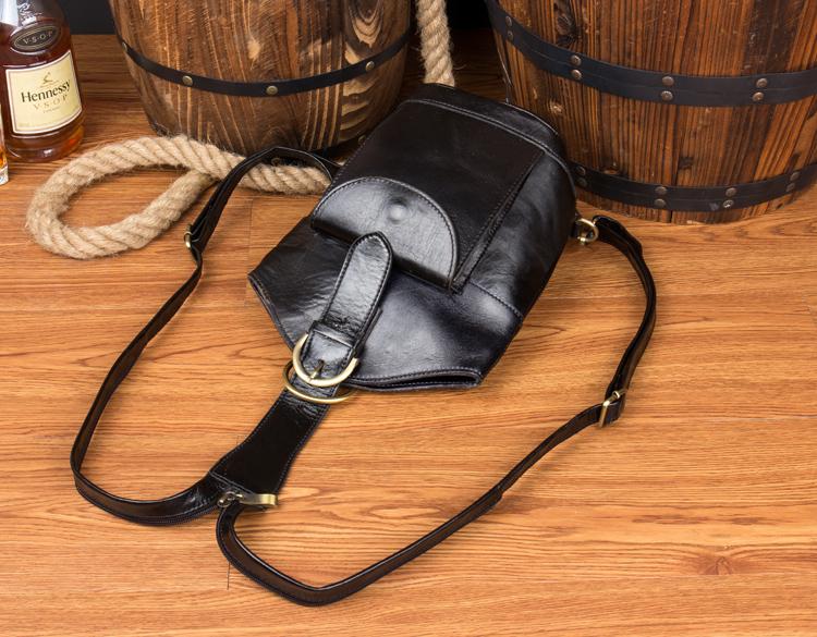 Style: Black Leather Mens Cool 8 inches Sling Bags Yellow Brown Crossbody Bag Chest Bag for menest Bag for men