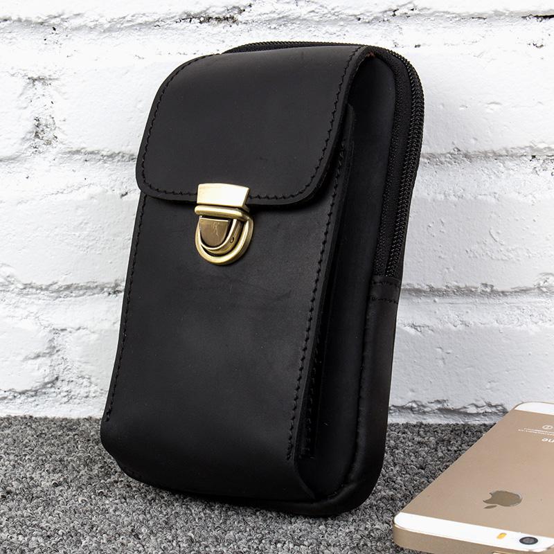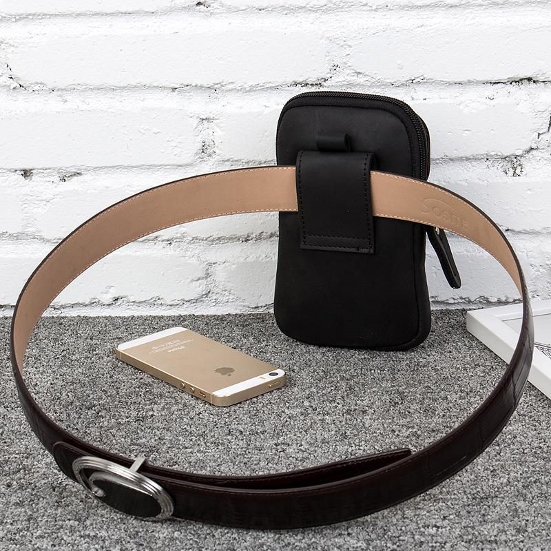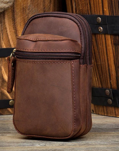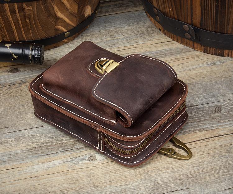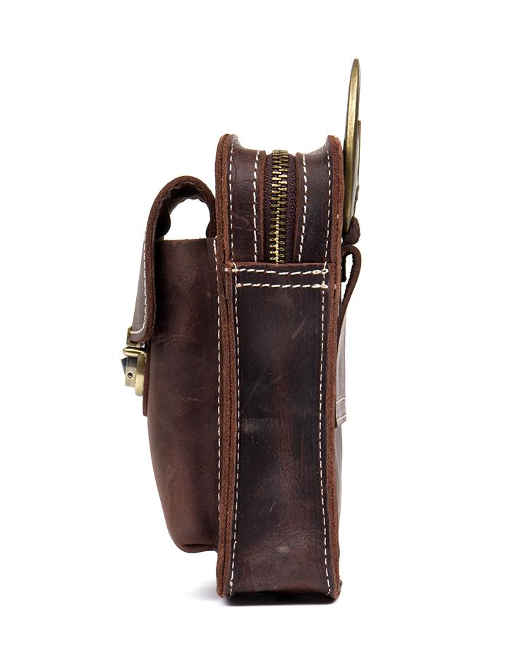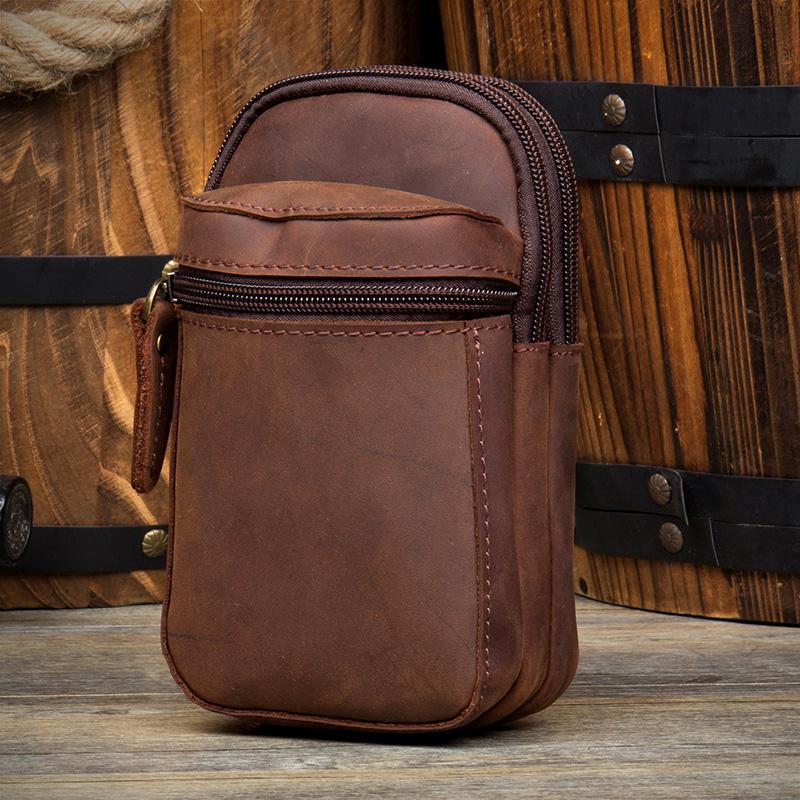 Design: Dark Brown Leather Mens Cool Brown Waist Bag Phone Bag Messenger Bag For Men