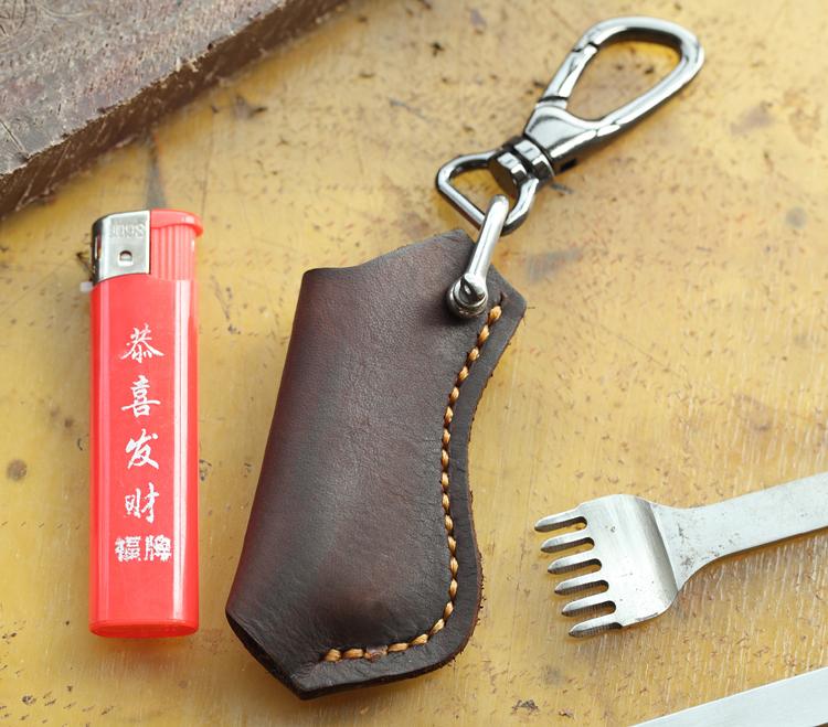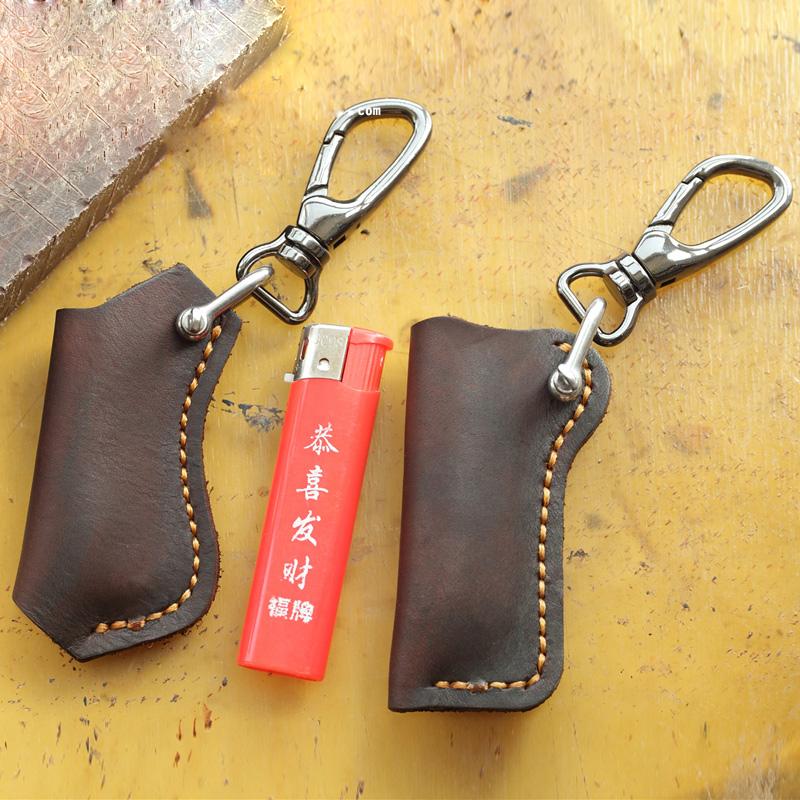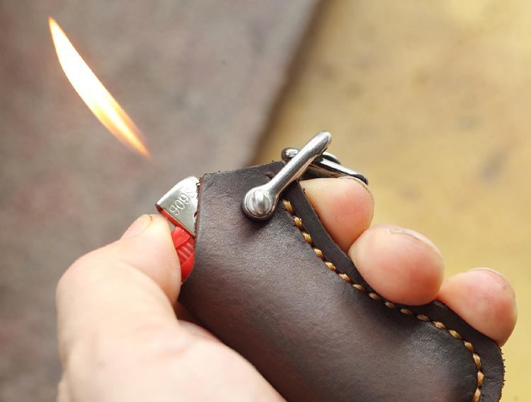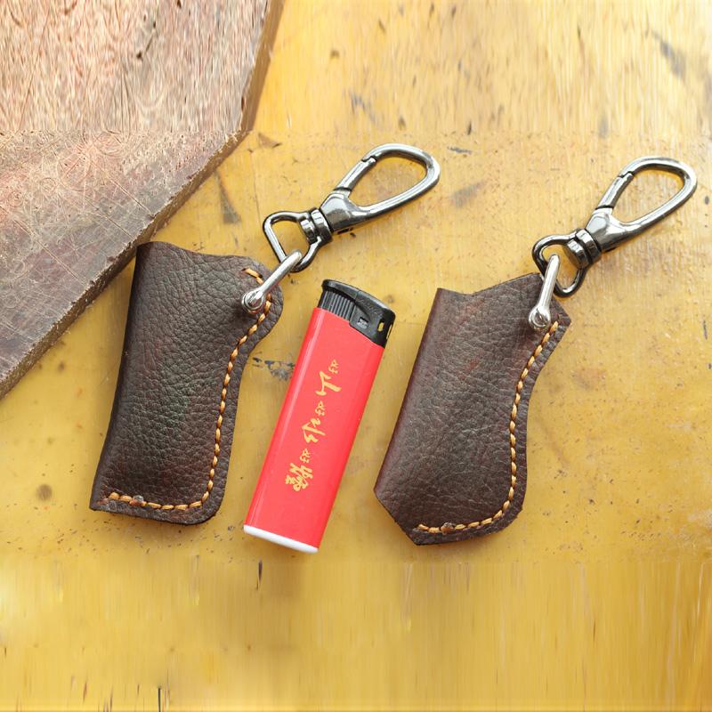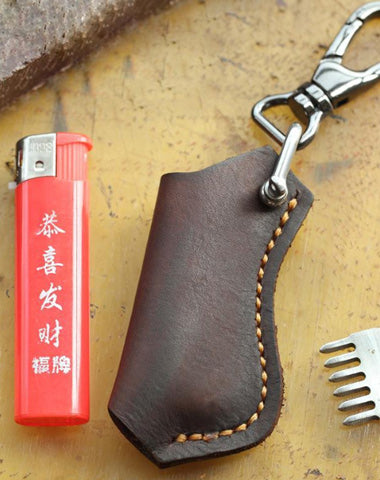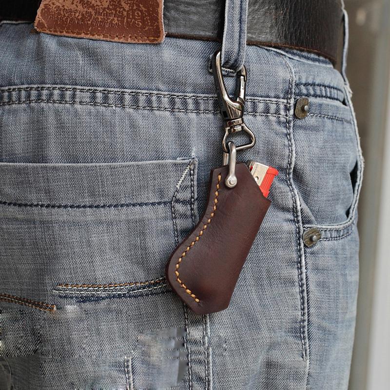 Design: Dark Brown Leather Mens Disposable Lighter Case Lighter Holder with Belt Clip For Men