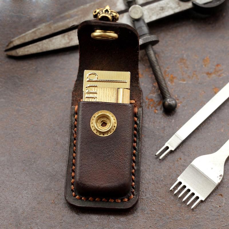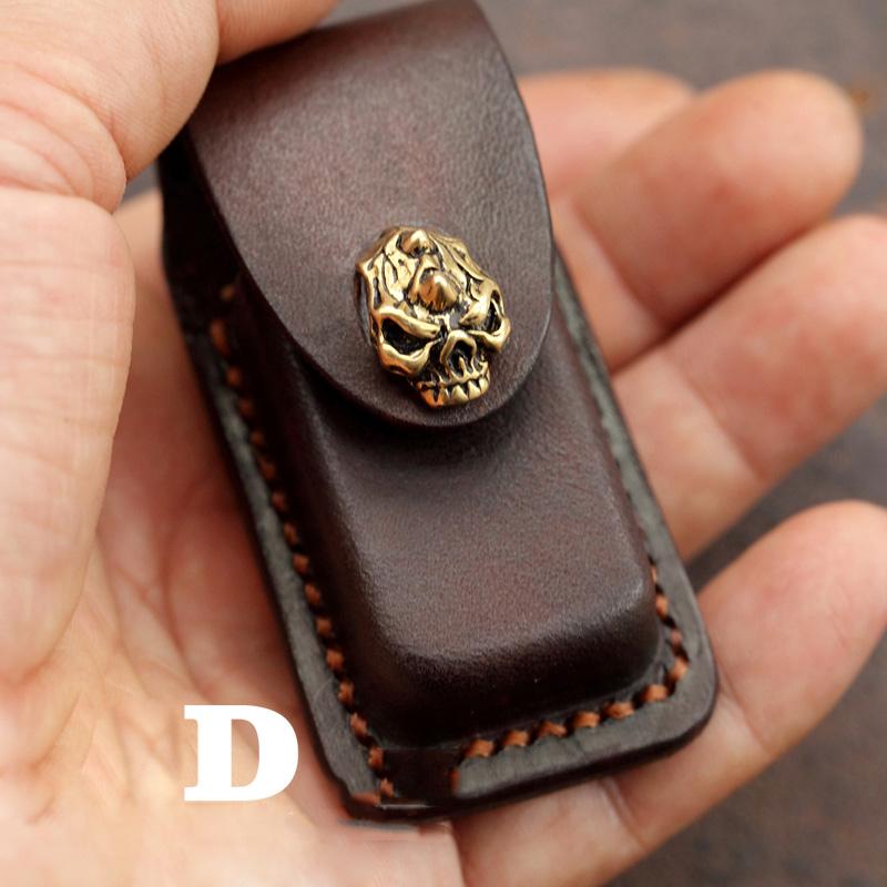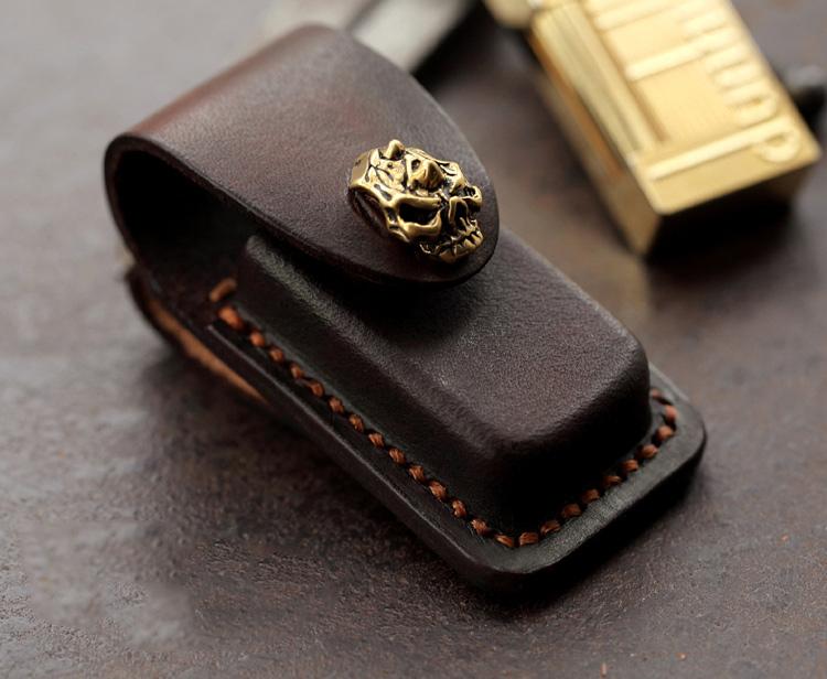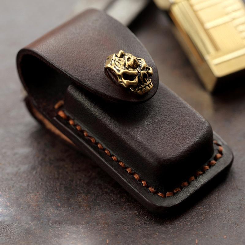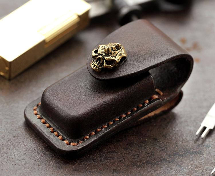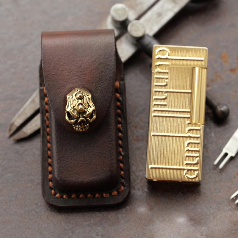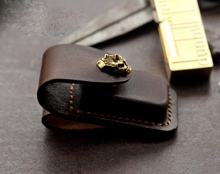 Style: Skull Brown Leather Mens Dunhill Lighter Cases Standard Dunhill Lighter Holder For Men
