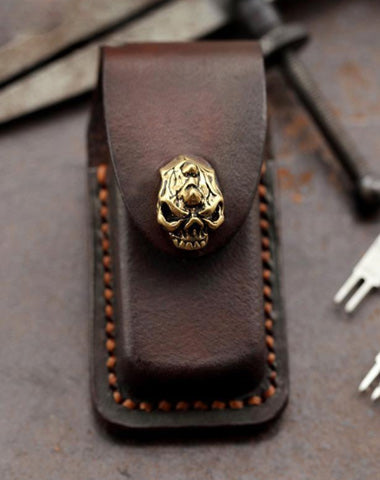 Design: Skull Brown Leather Mens Dunhill Lighter Cases Standard Dunhill Lighter Holder For Men