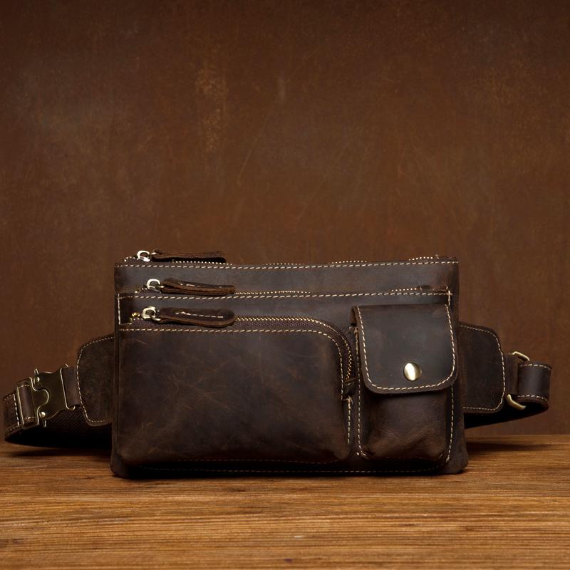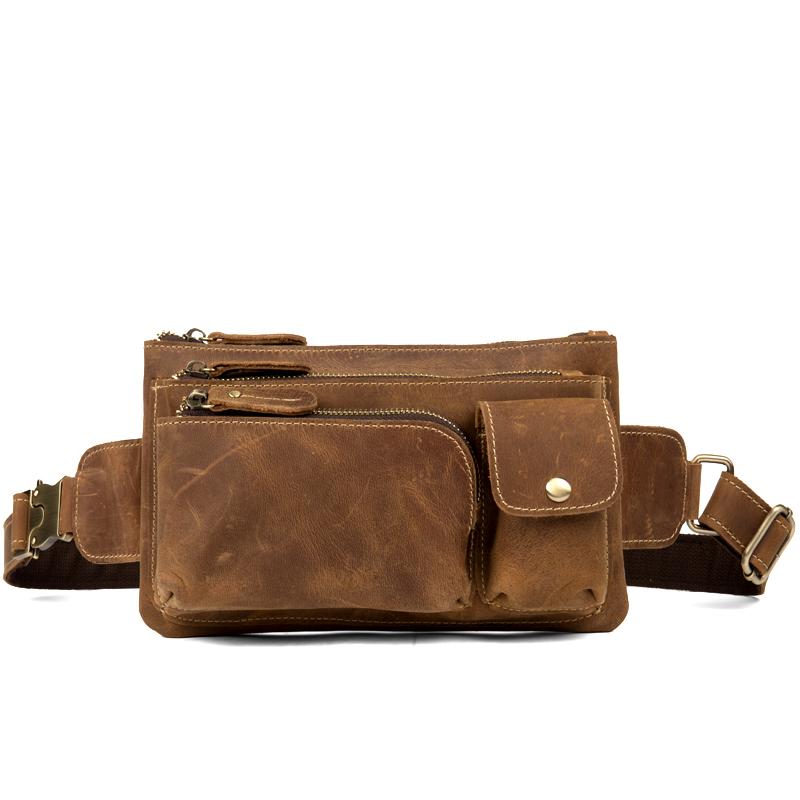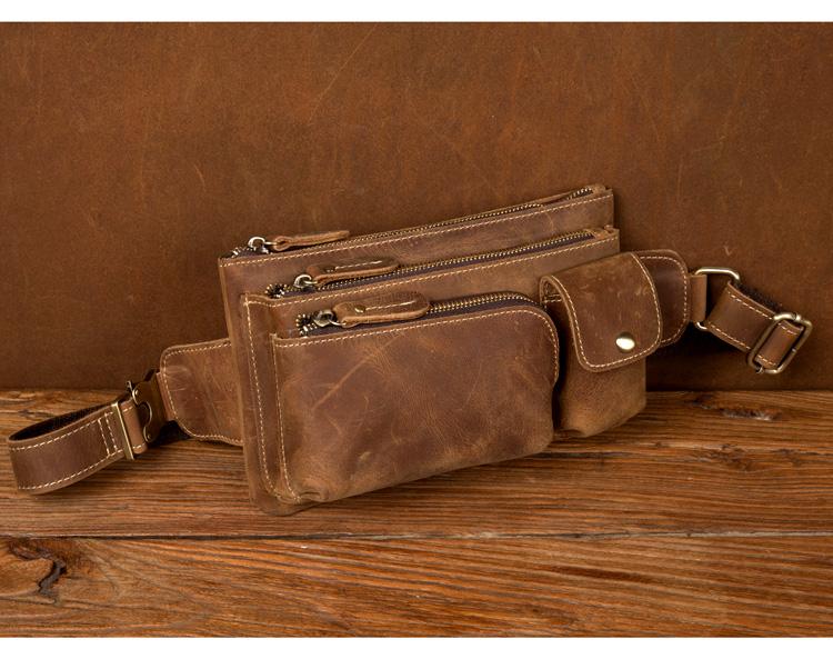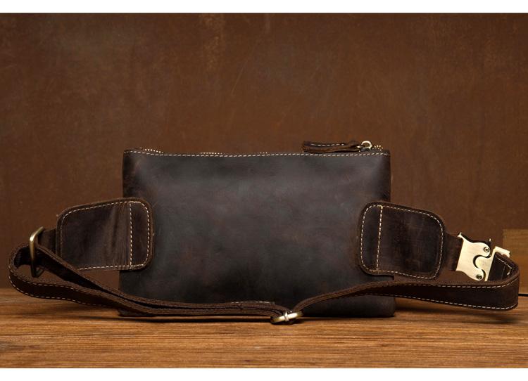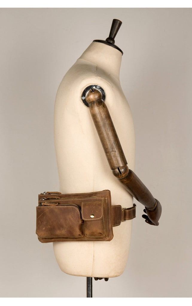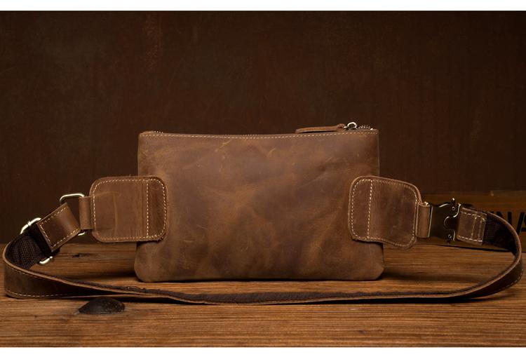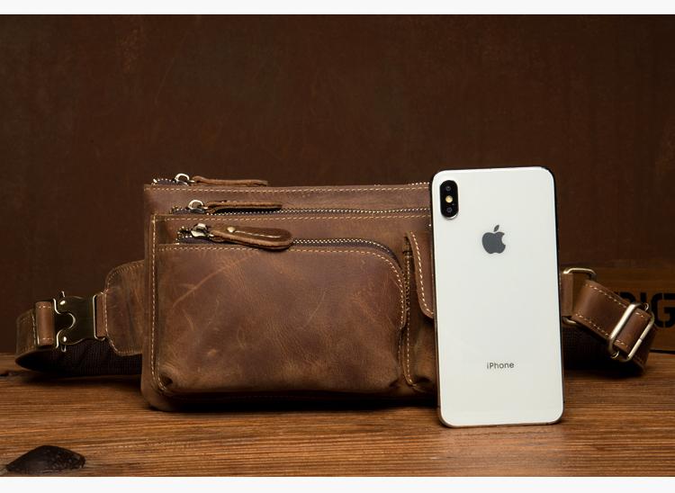 Design: Dark Brown Leather Mens Fanny Pack Light Brown Waist Bag Hip Pack Belt Bag Bumbag for Men