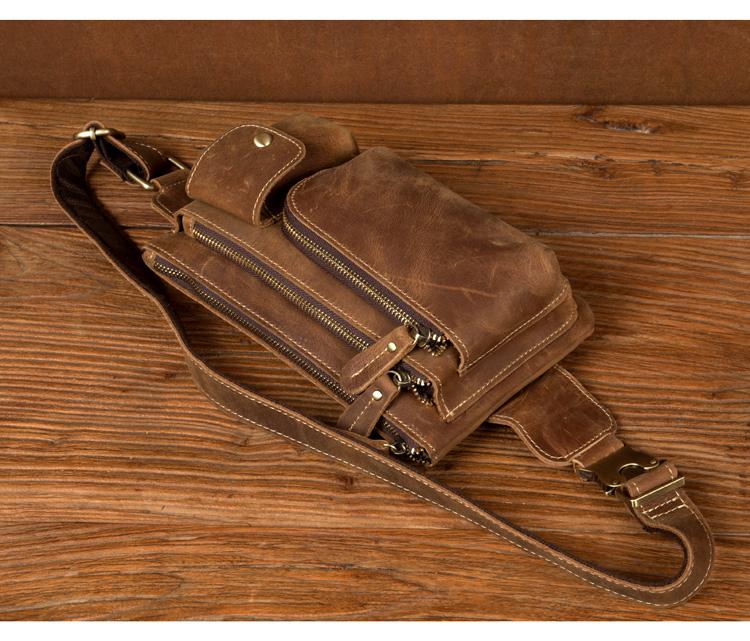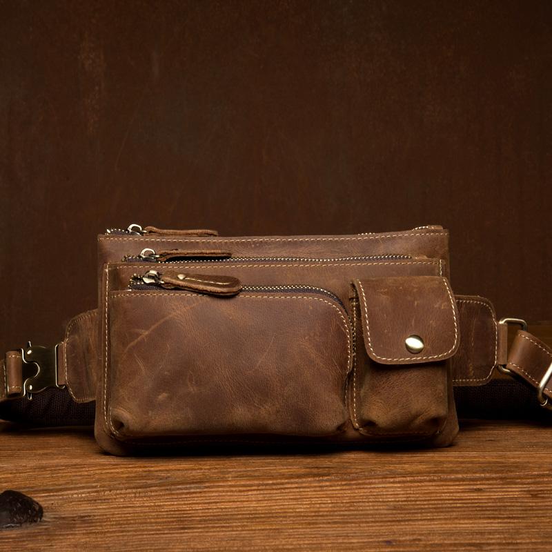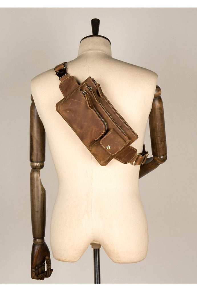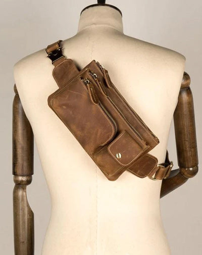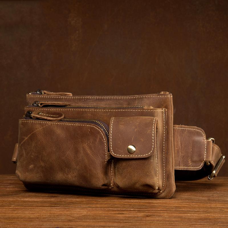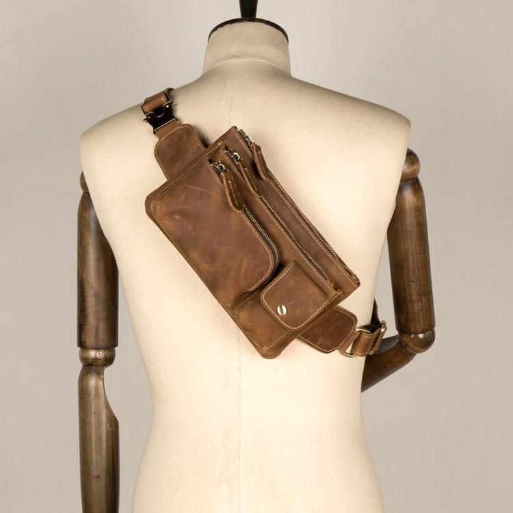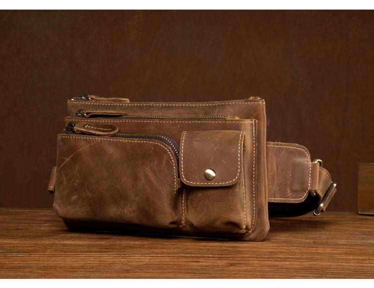 Design: Dark Brown Leather Mens Fanny Pack Light Brown Waist Bag Hip Pack Belt Bag Bumbag for Men