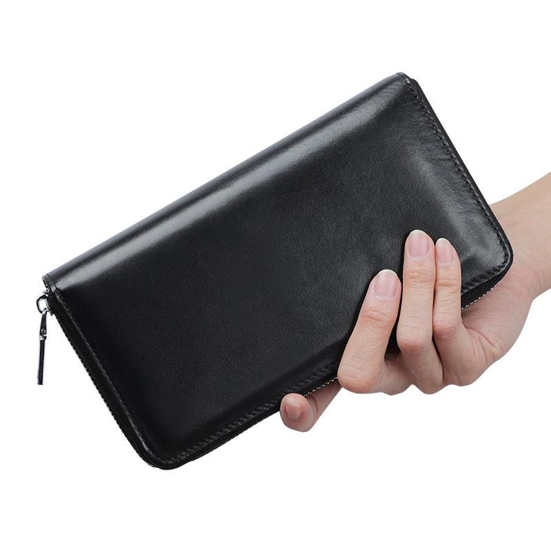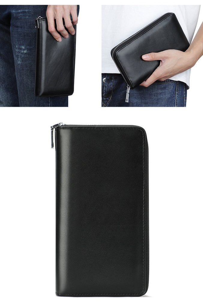 Style: Dark Brown Leather Mens Large Business Wristlet Wallet Bag Zipper Clutch Travel Wallet For Men