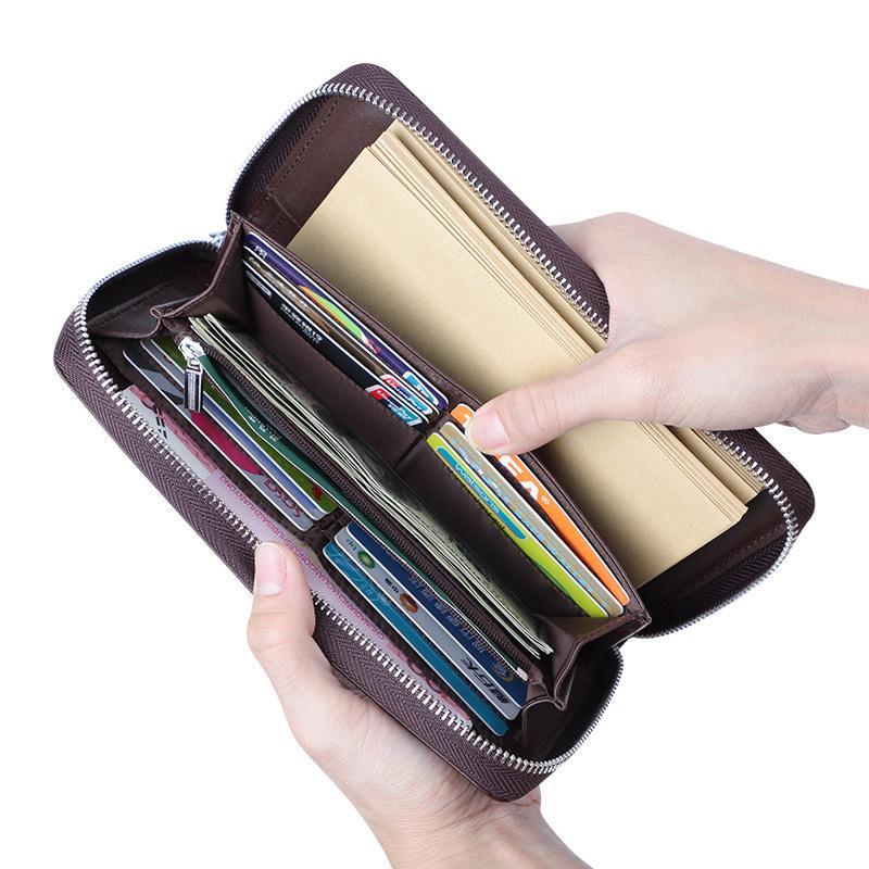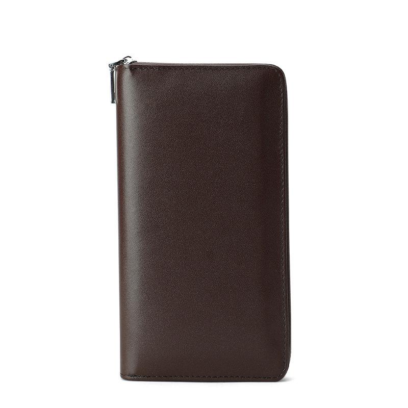 Design: Dark Brown Leather Mens Large Business Wristlet Wallet Bag Zipper Clutch Travel Wallet For Men