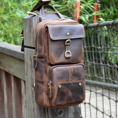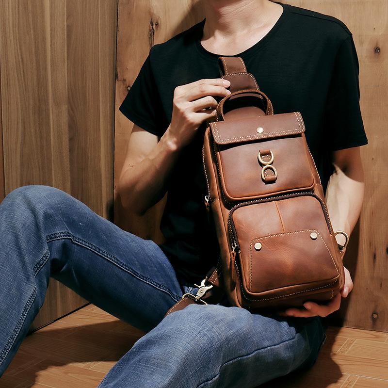 Style: Dark Brown Leather Men's Sling Bag Brown Chest Bags One Shoulder Backpack For Men