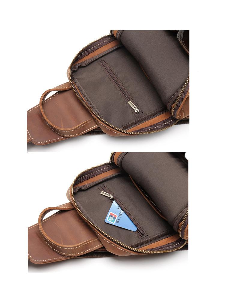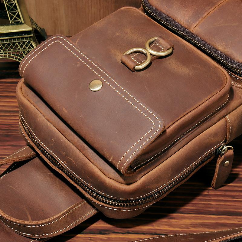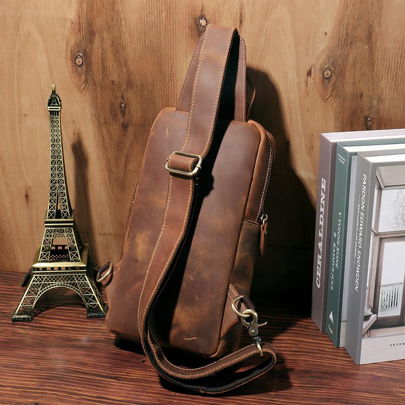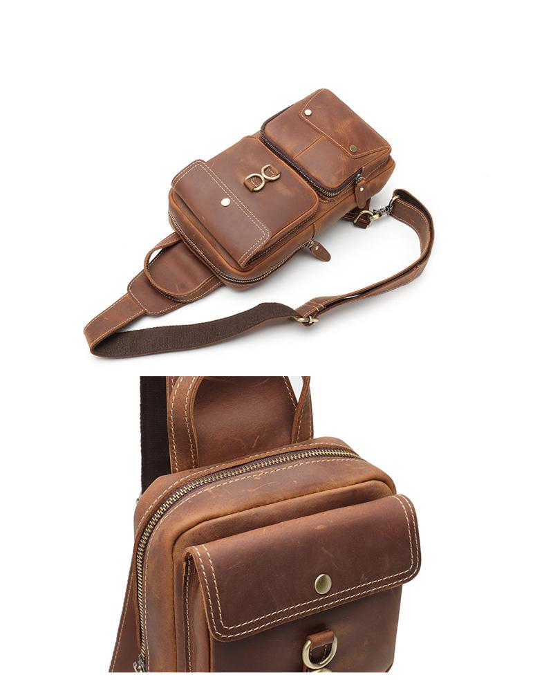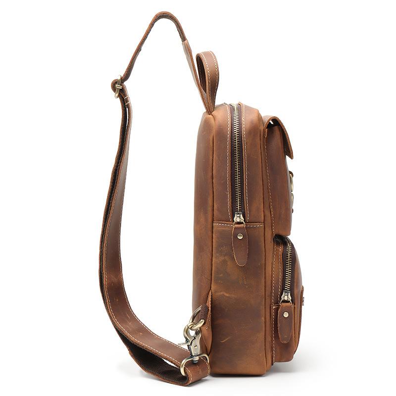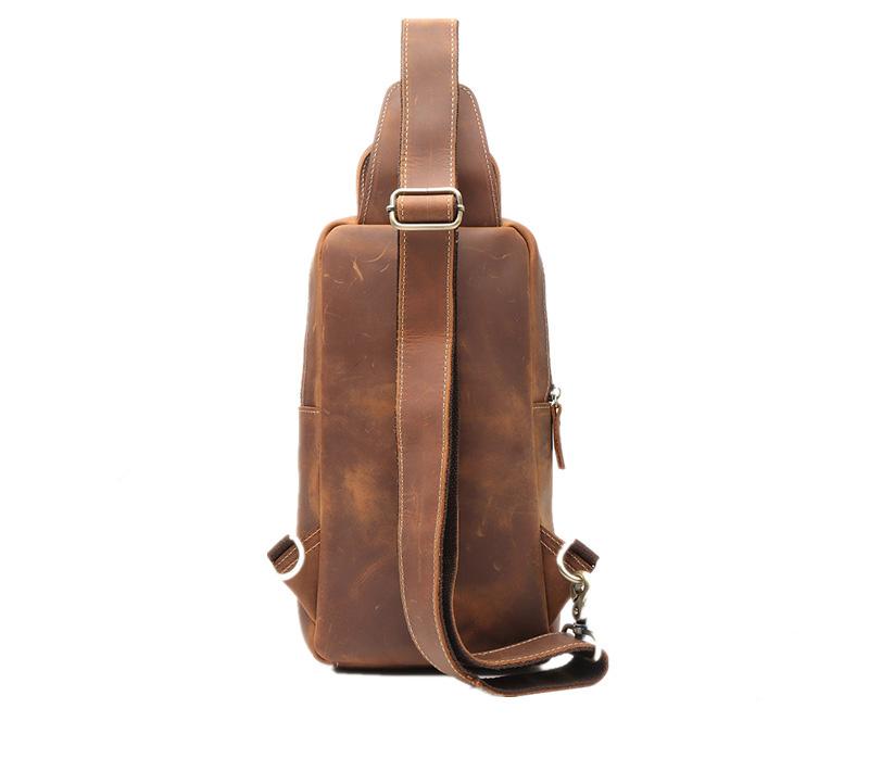 Design: Dark Brown Leather Men's Sling Bag Brown Chest Bags One Shoulder Backpack For Men