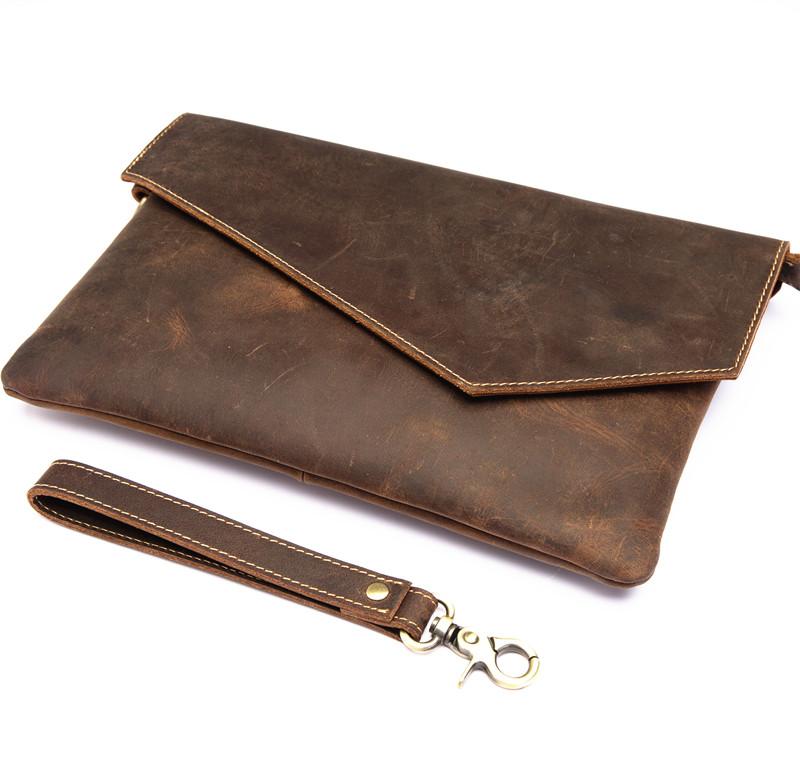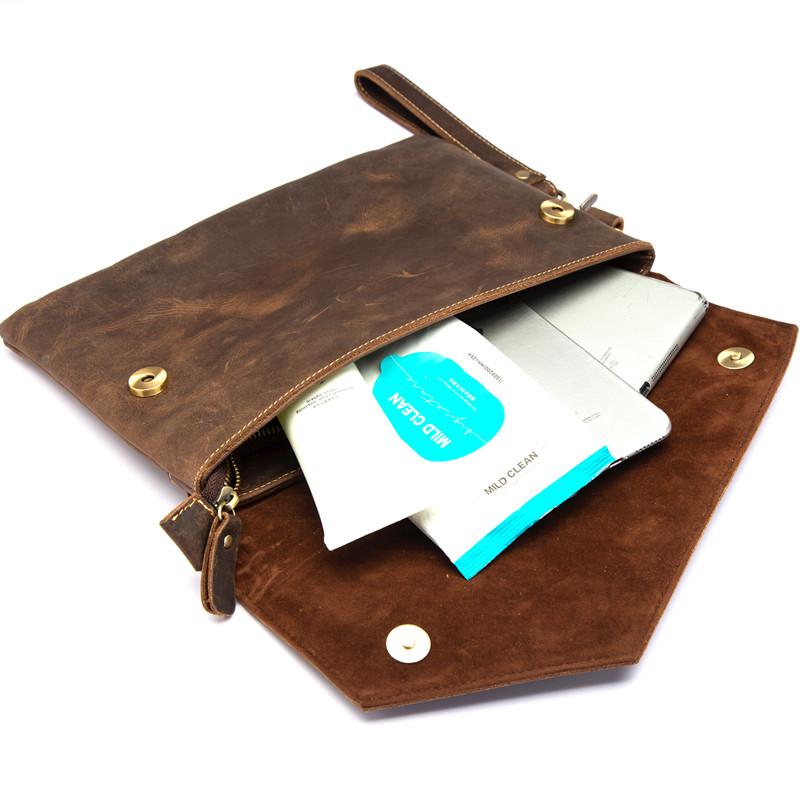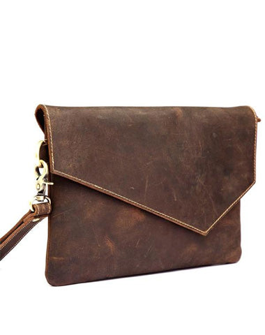 Design: Dark Brown Vintage Leather Wristlet Bag Mens Tablet Bag Handy File Bag Clutch Bag For Men