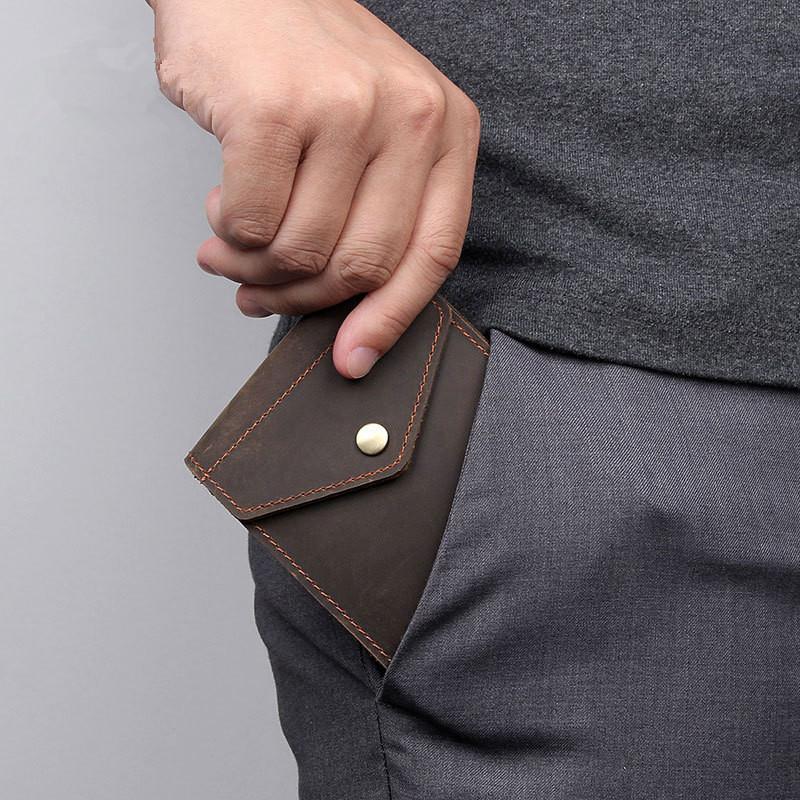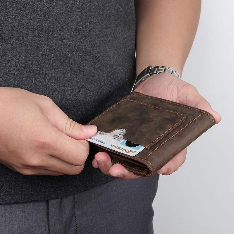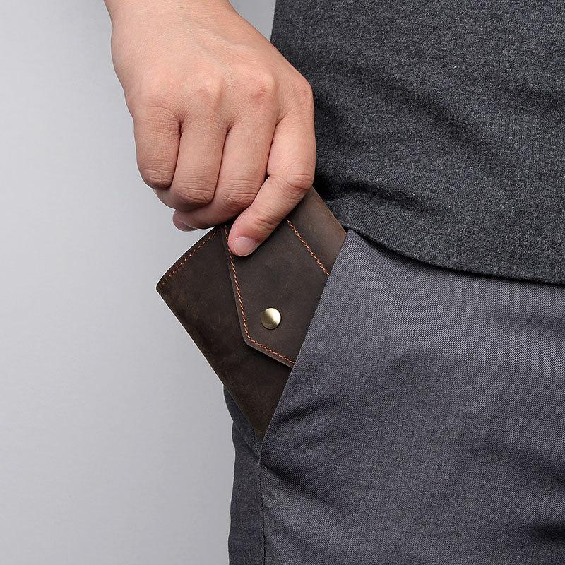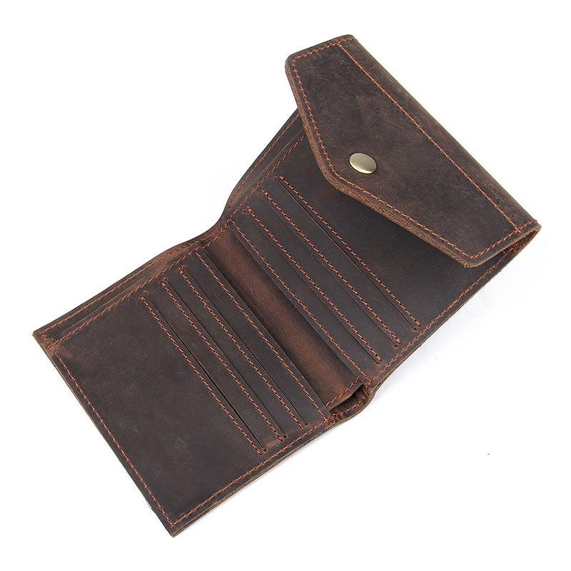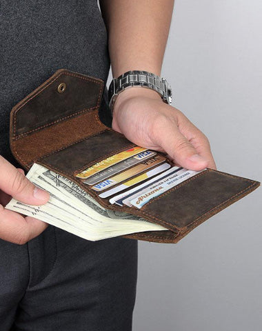 Design: Dark Brown Small MENS LEATHER Bifold Wallet Coin Purse Brown billfold Wallet FOR MEN