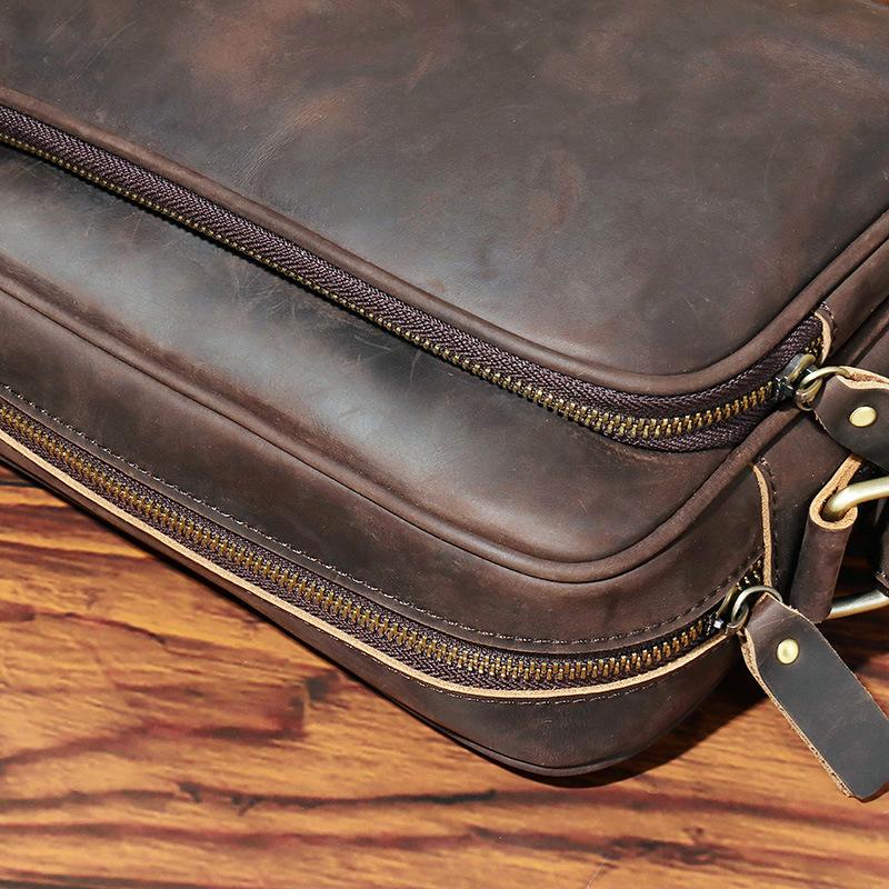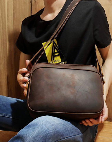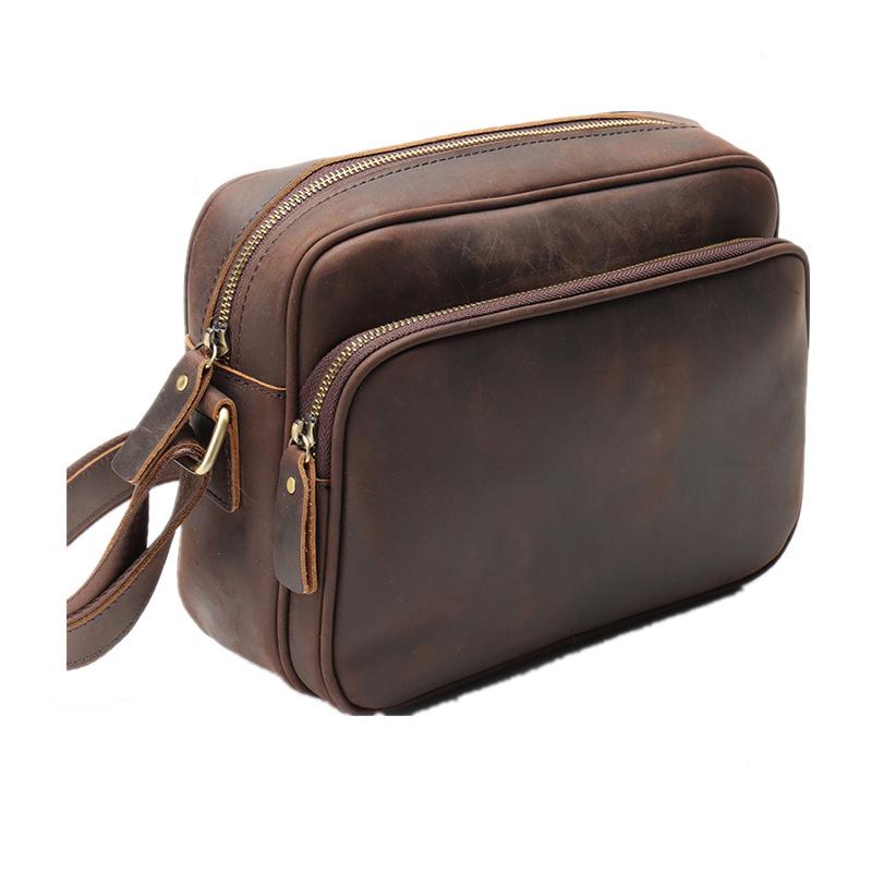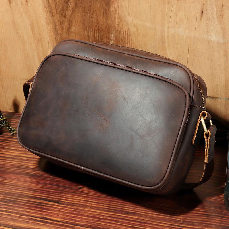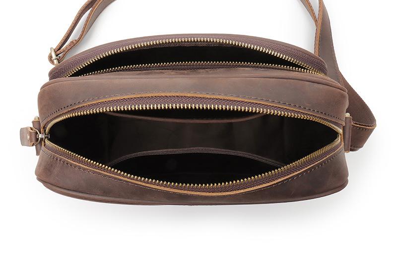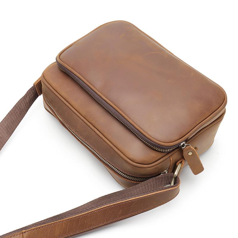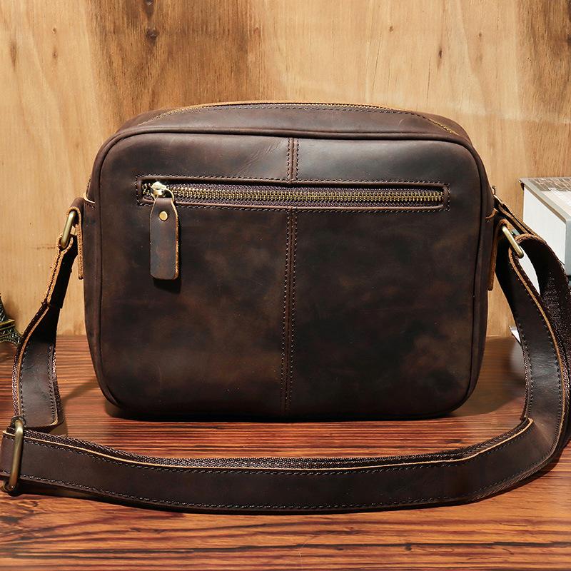 Design: Black Cool Leather 8 inches Small Zipper Messenger Bag Vertical Shoulder Bag Side Bag For Men