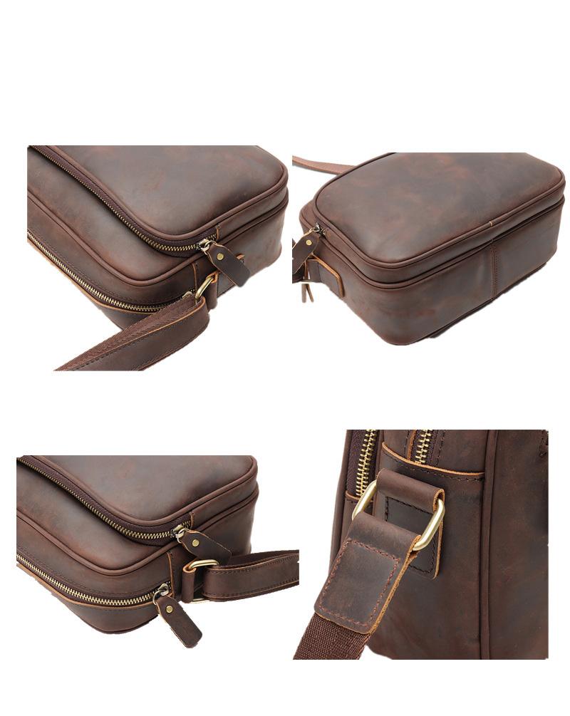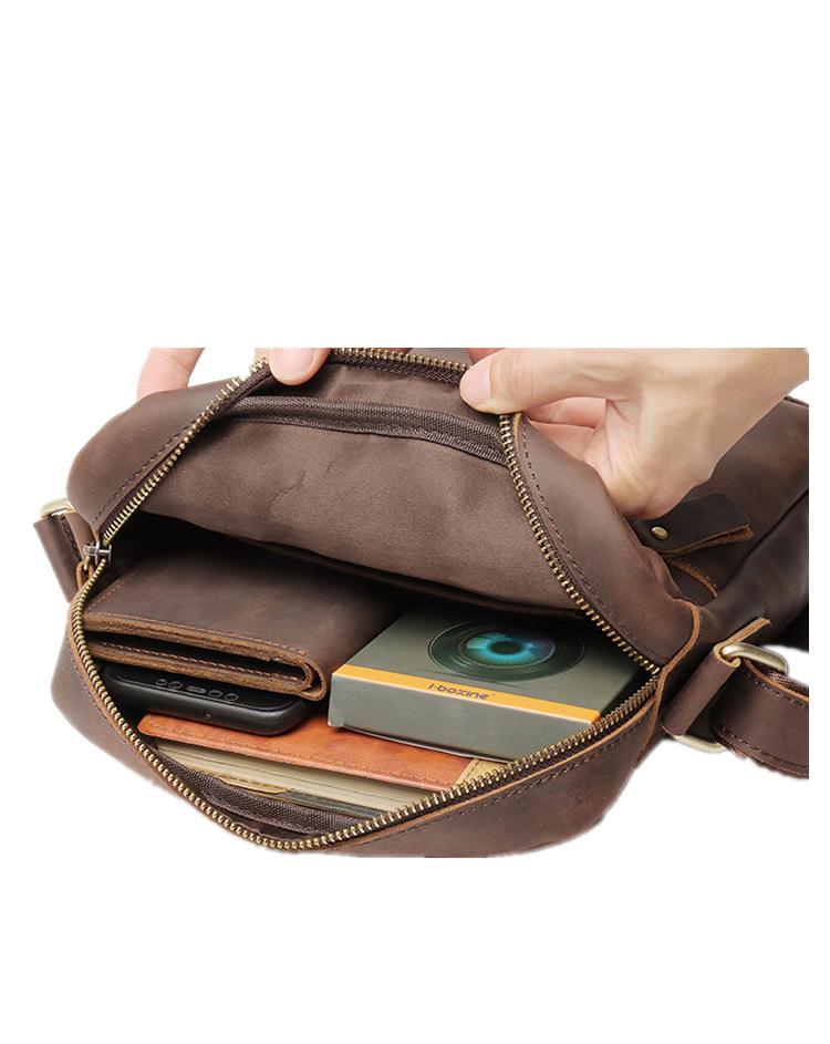 Design: Black Cool Leather 8 inches Small Zipper Messenger Bag Vertical Shoulder Bag Side Bag For MenOverview: