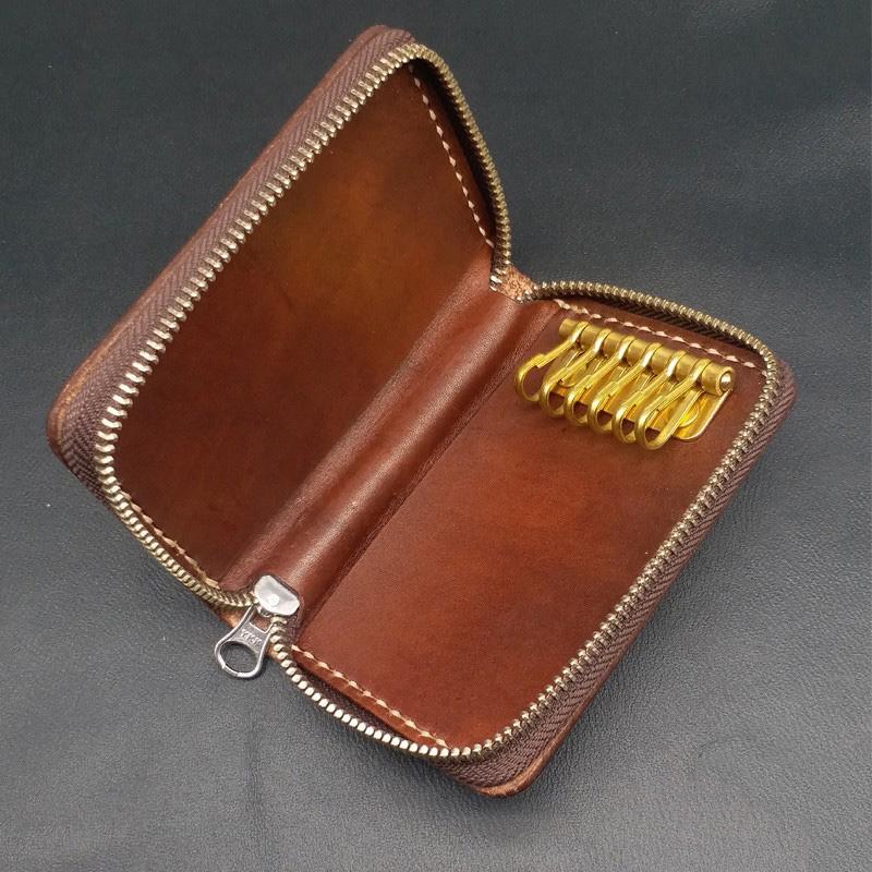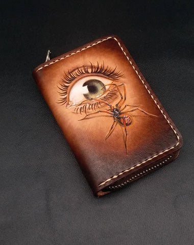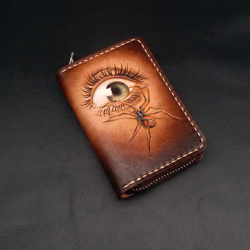 Style: Dark Coffee Handmade Tooled Eye and Spider Leather Mens Key Wallet Holders For Men