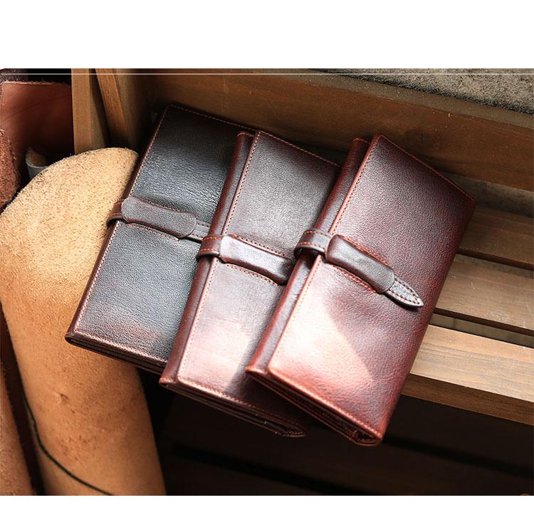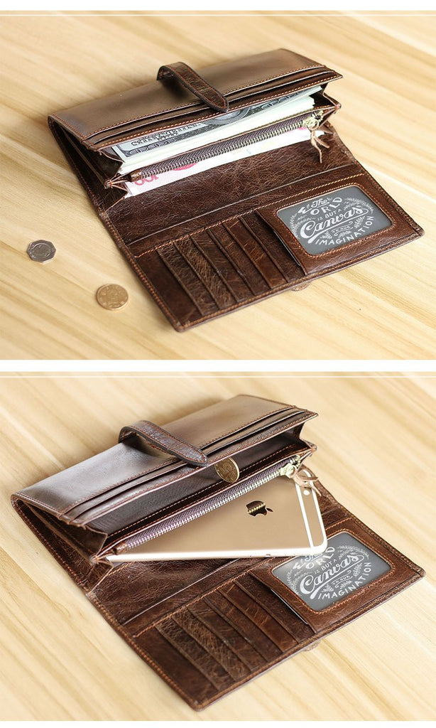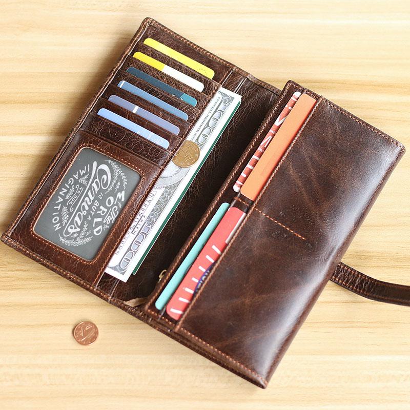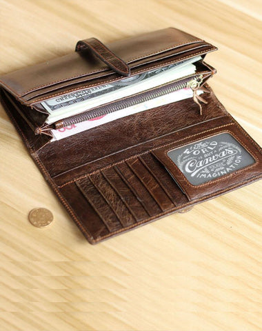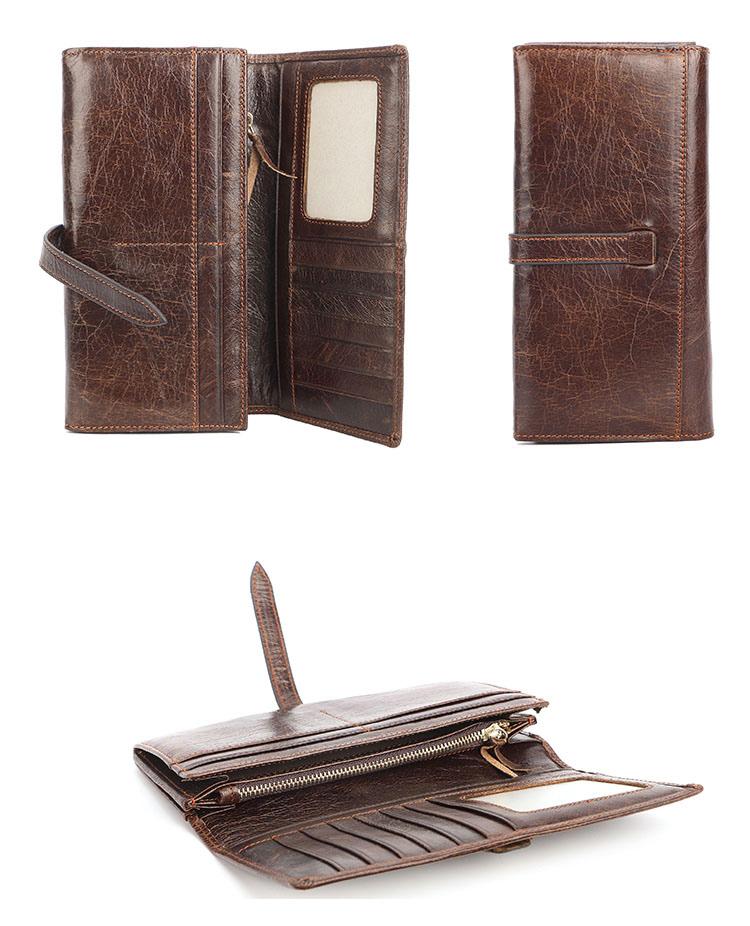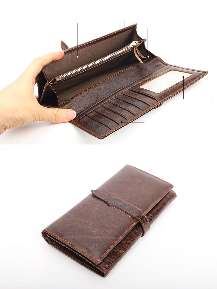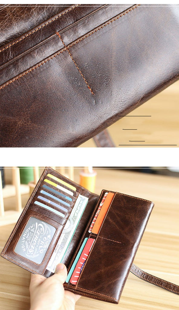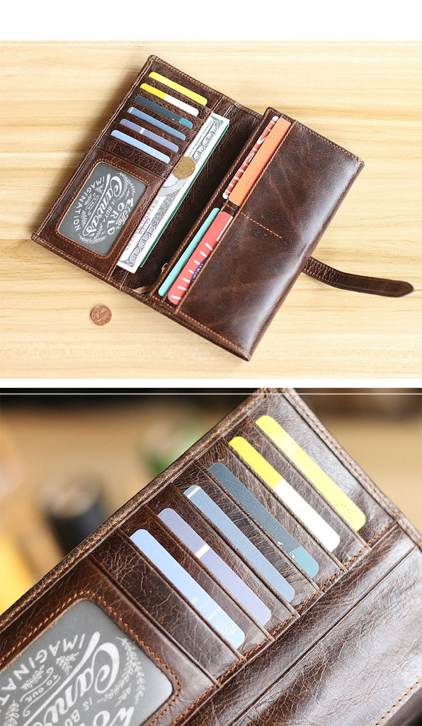 Style: Dark Coffee Handmade Leather Mens Bifold Long Wallet Multi-card Wallet Coin Purse For Men