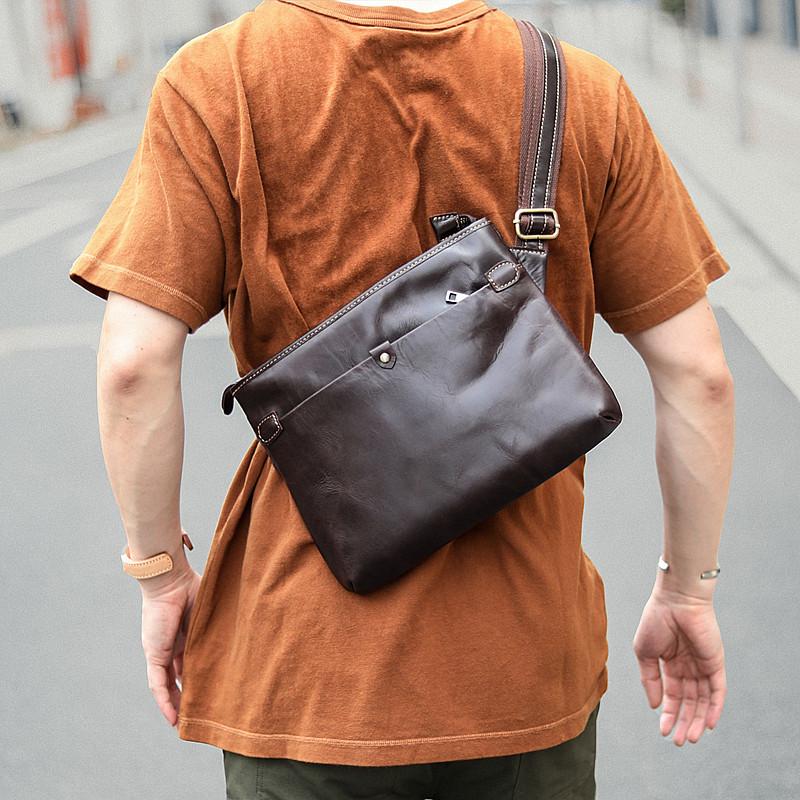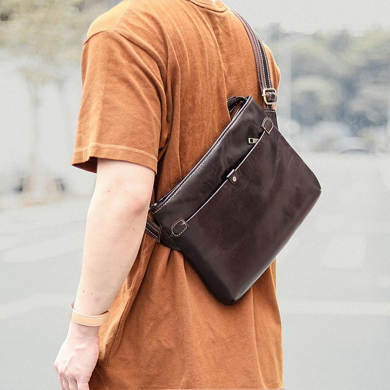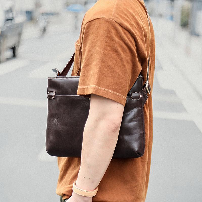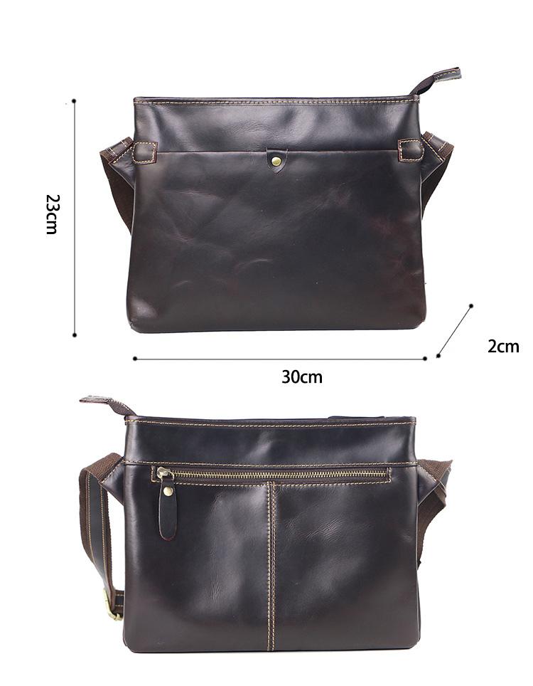 Design: Dark Coffee Leather Mens Casual Small Courier Bag Messenger Bags Brown Postman Bag For Men