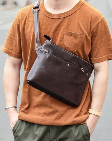 Style:Dark Coffee Leather Mens Casual Small Courier Bag Messenger Bags Brown Postman Bag For Men