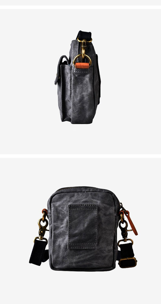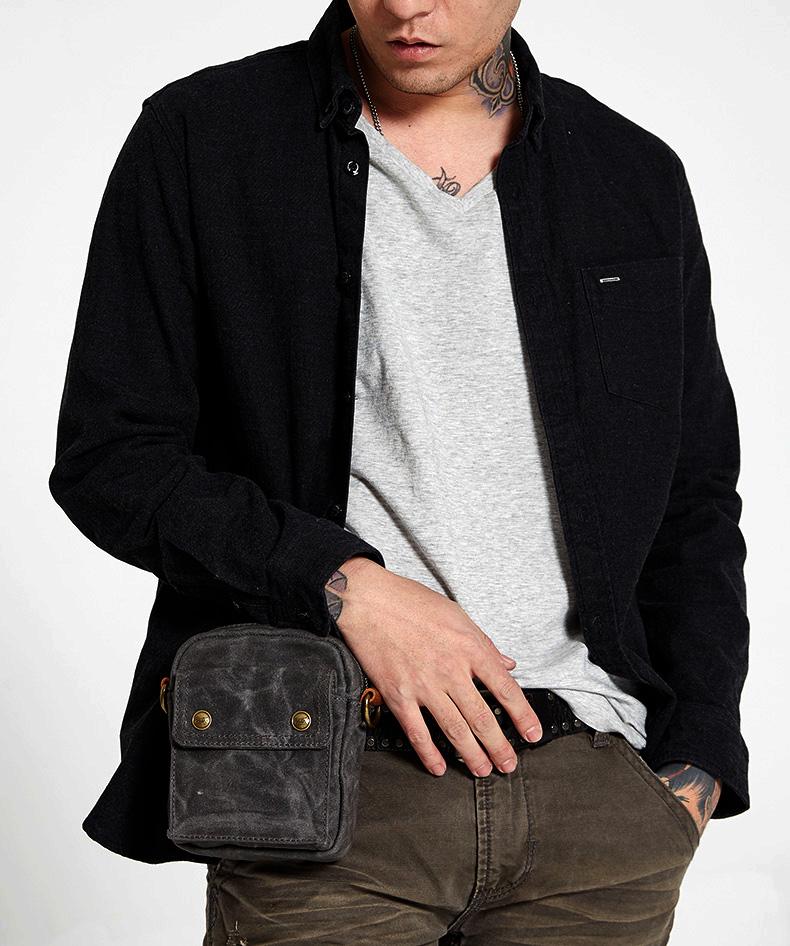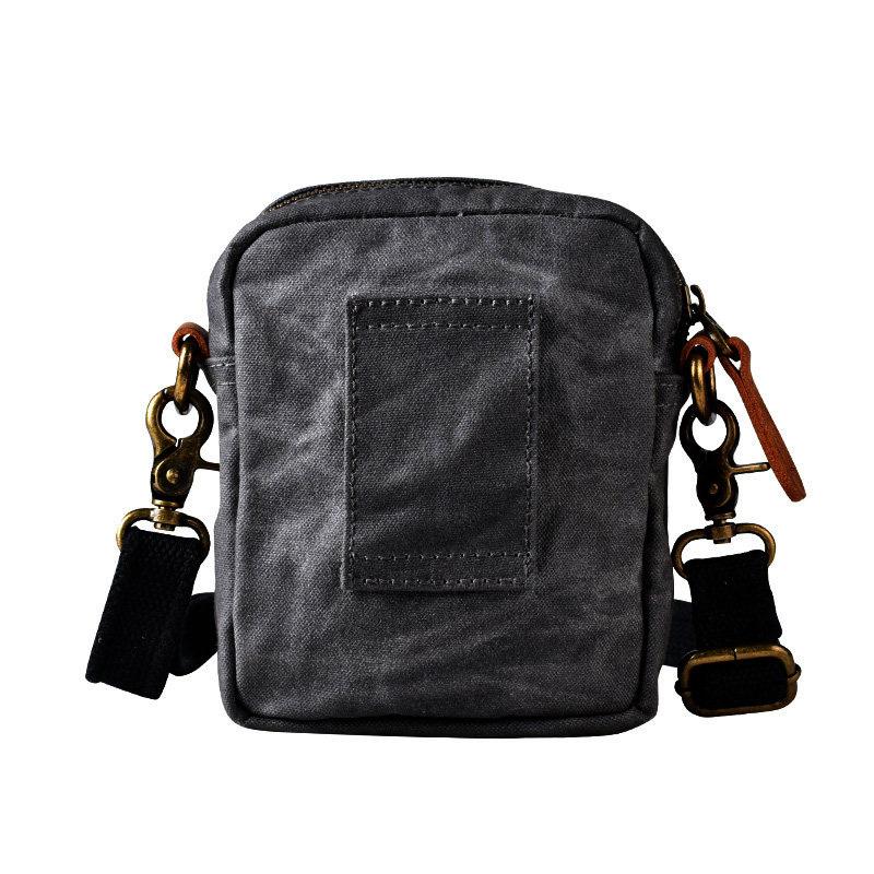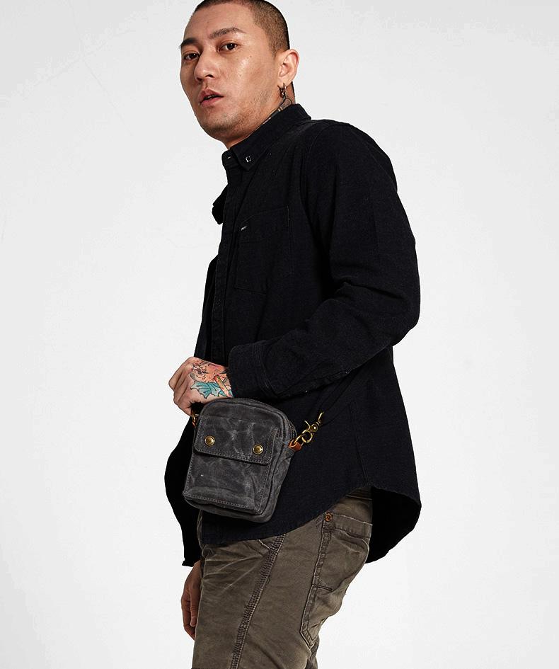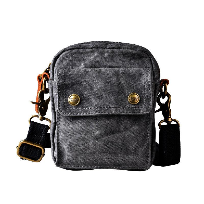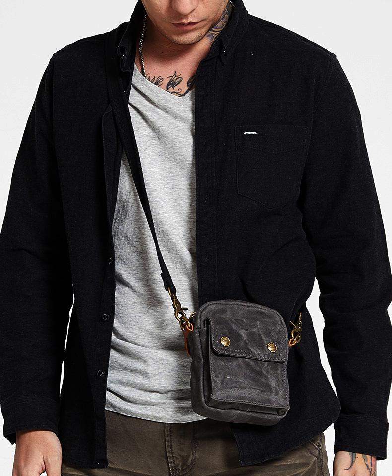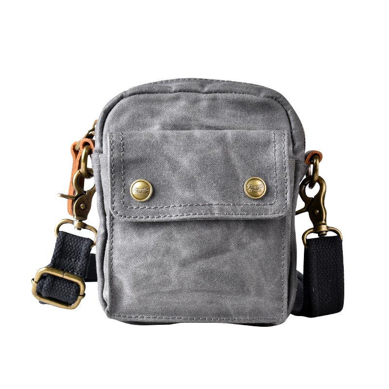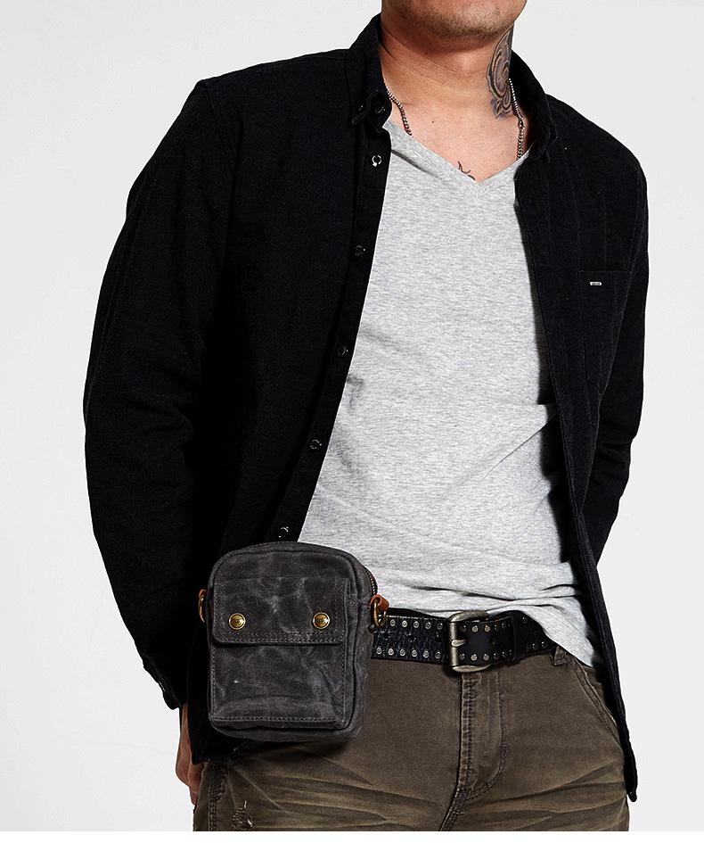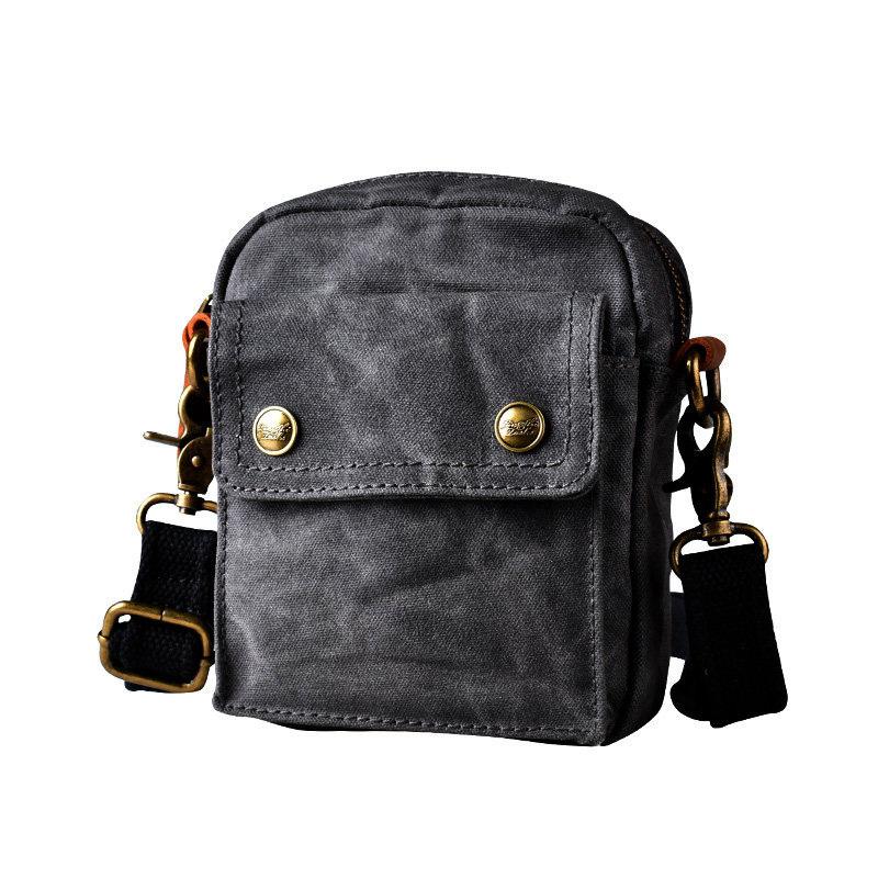 Design: Gray Cool Canvas Mens Mini Vertical Waist Bag Messenger Bags Side Bag for Men