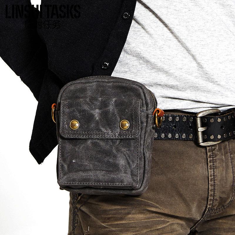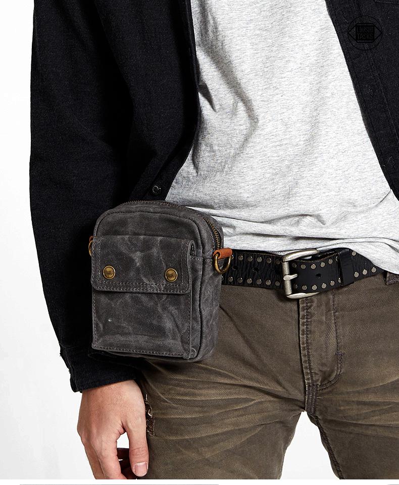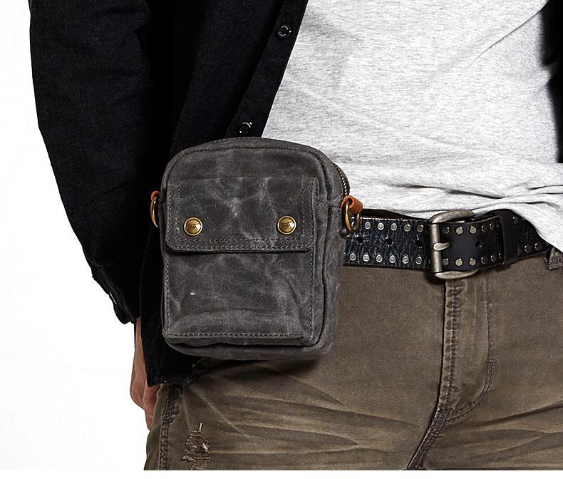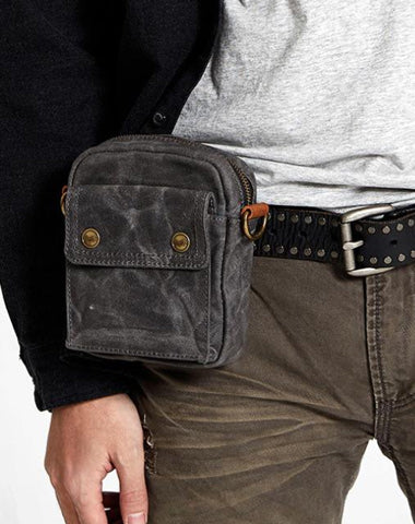 Style: Gray Cool Canvas Mens Mini Vertical Waist Bag Messenger Bags Side Bag for Men