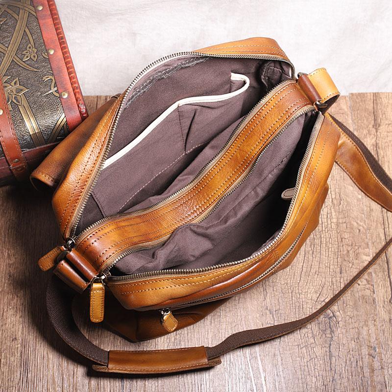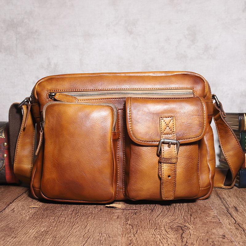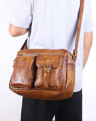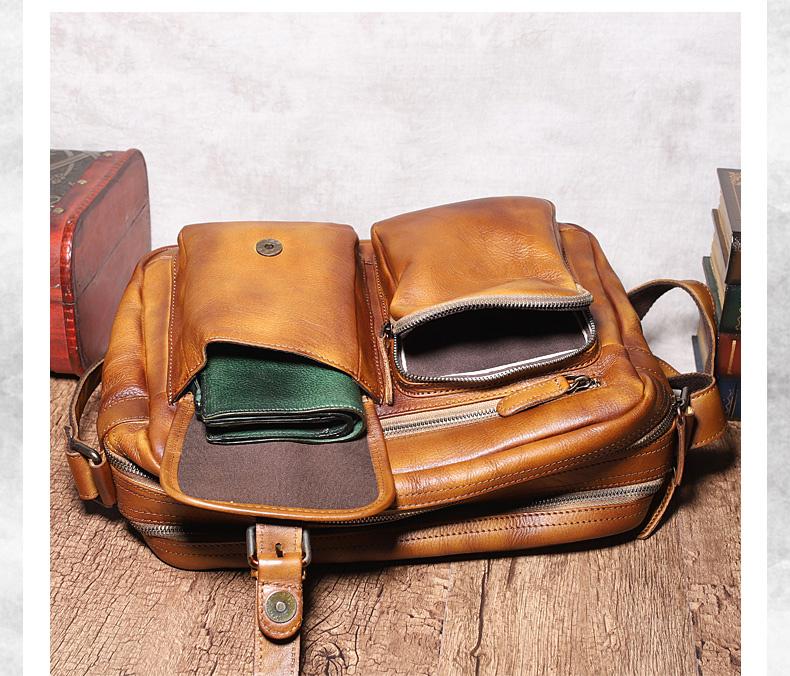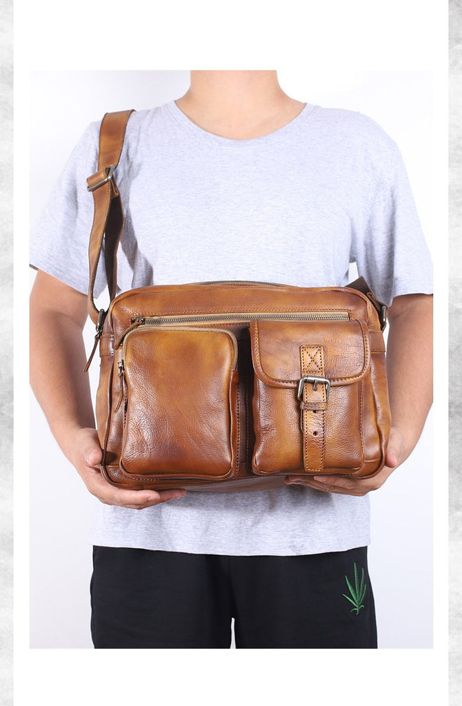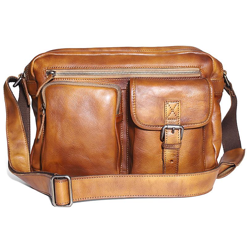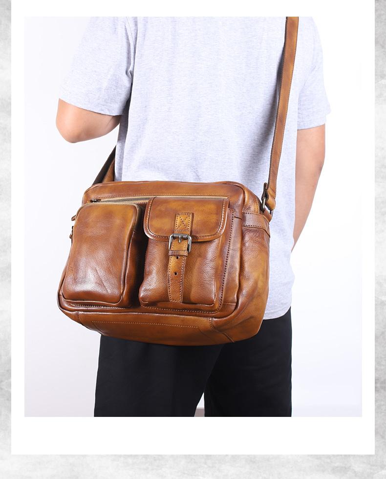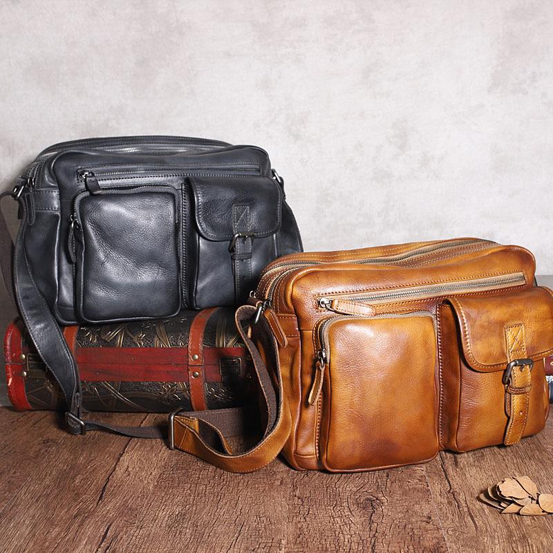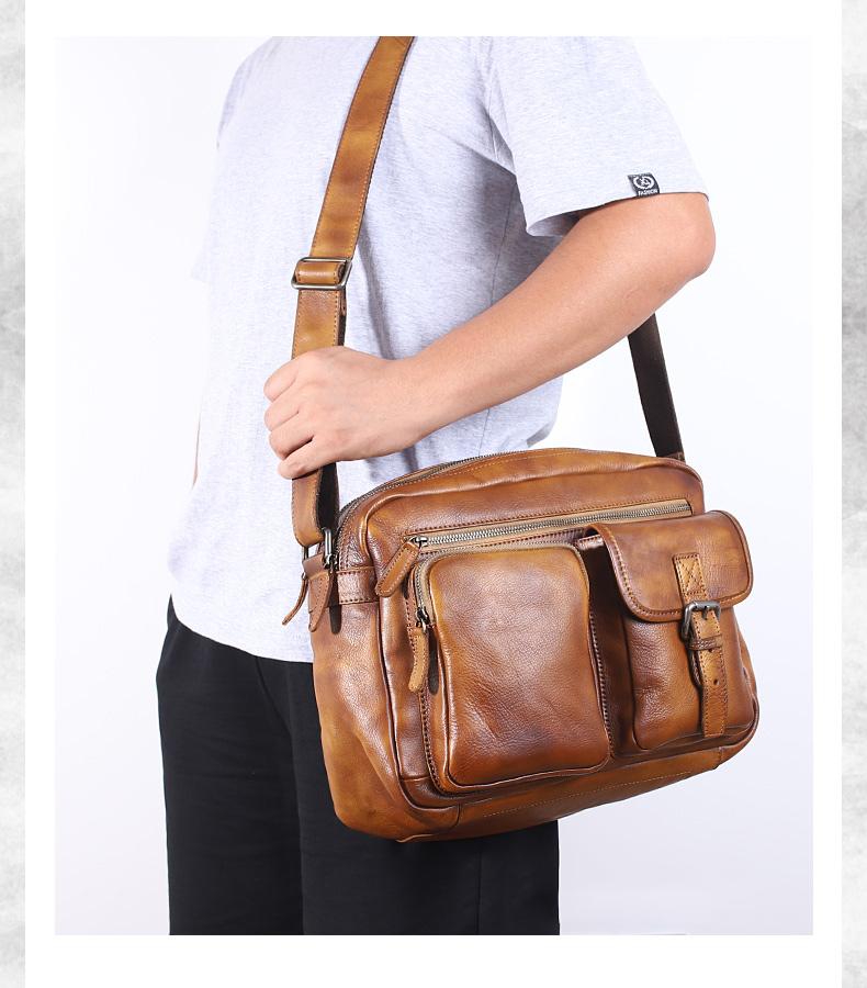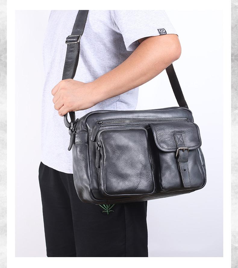 Design: Dark Gray Cool Leather Mens 14 inches Brown Shoulder Bags Messenger Bags for Men