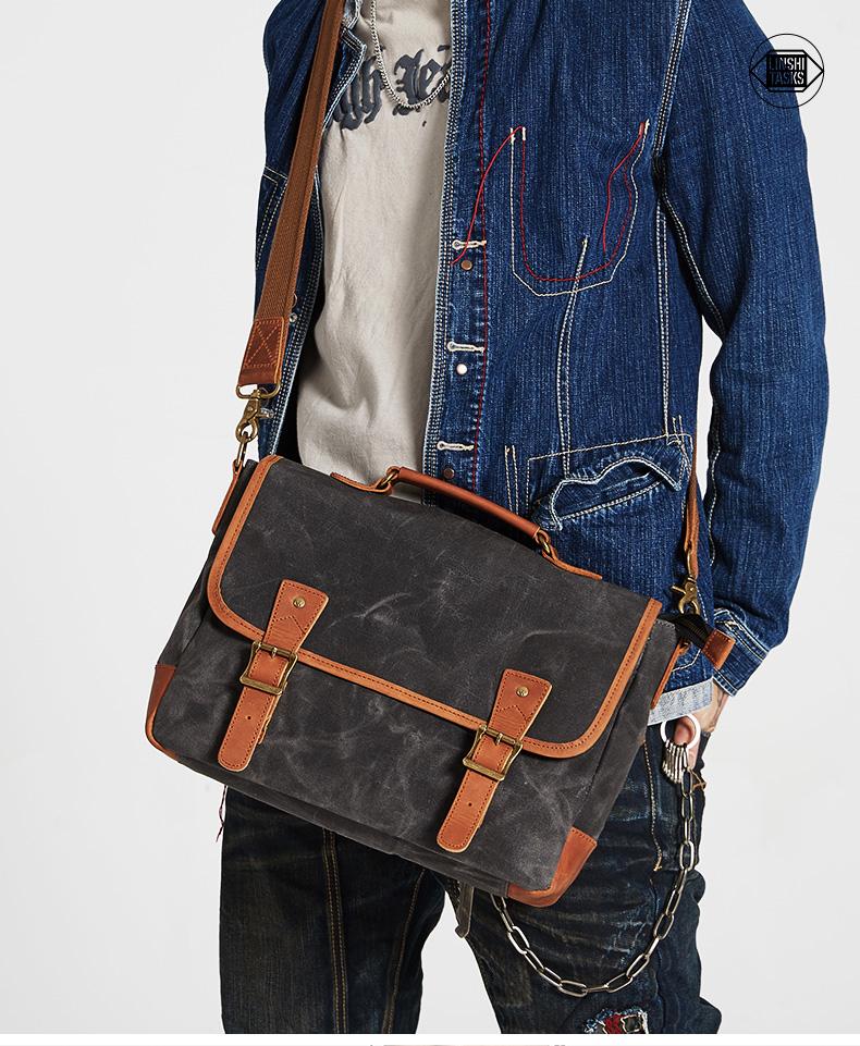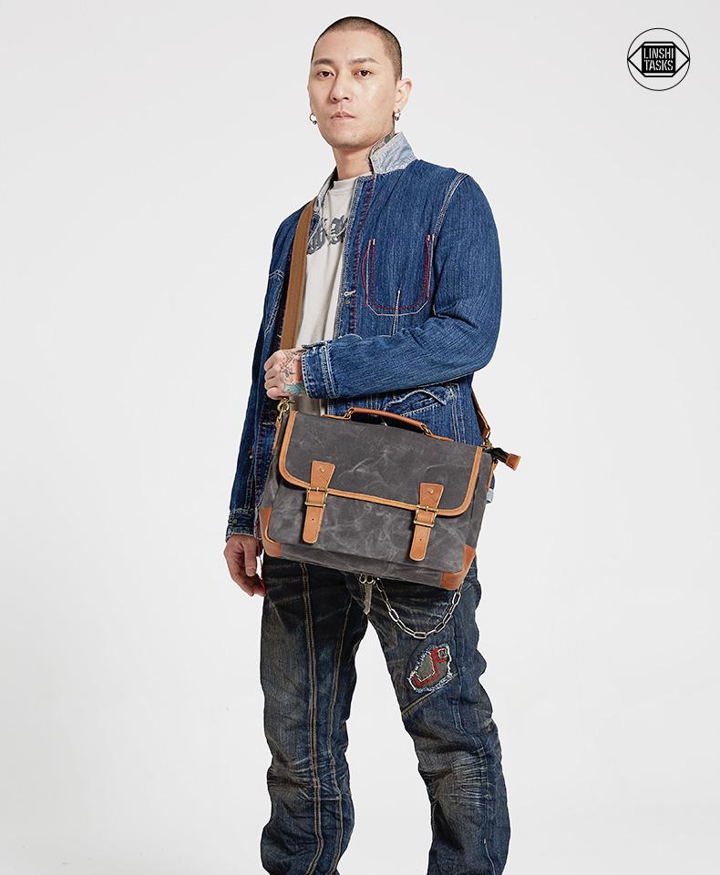 Design: Dark Gray Leather Canvas Mens Casual Briefcase Shoulder Bag Messenger Bags Casual Courier Bags for Men