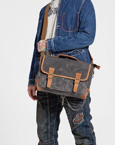Style: Dark Gray Leather Canvas Mens Casual Briefcase Shoulder Bag Messenger Bags Casual Courier Bags for Men