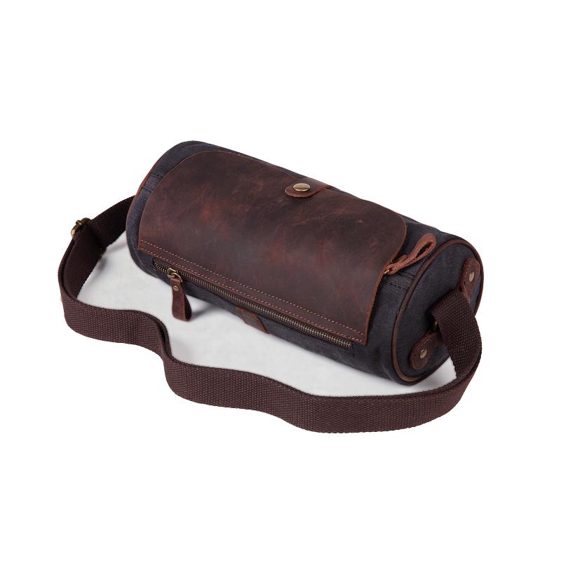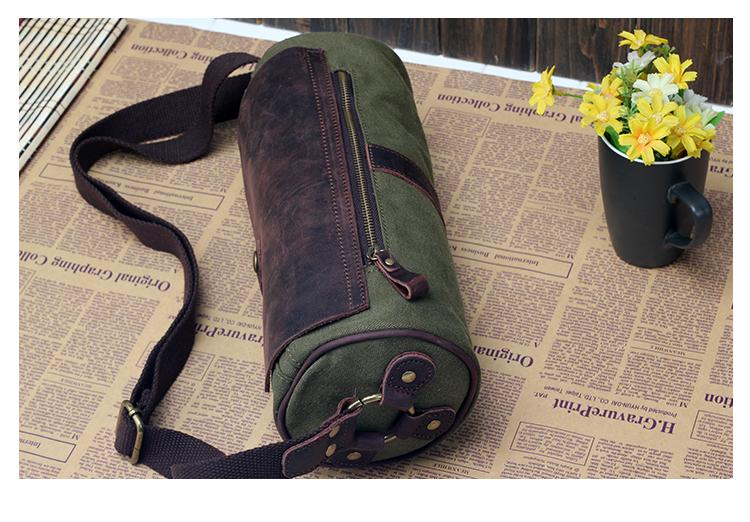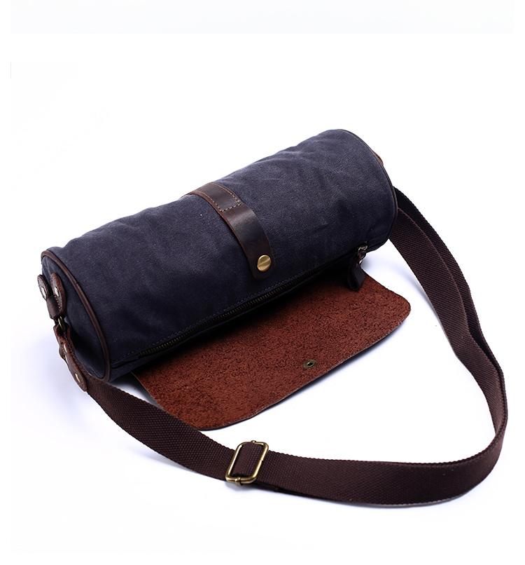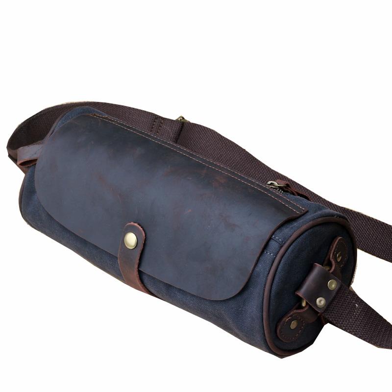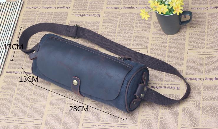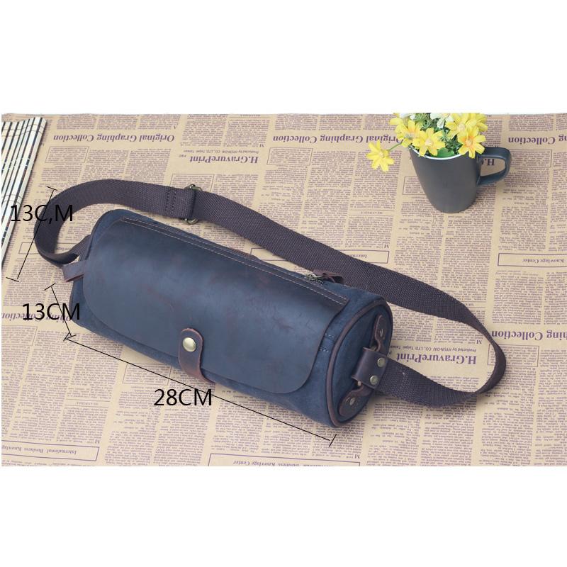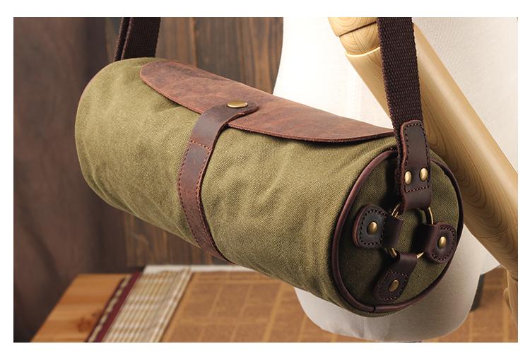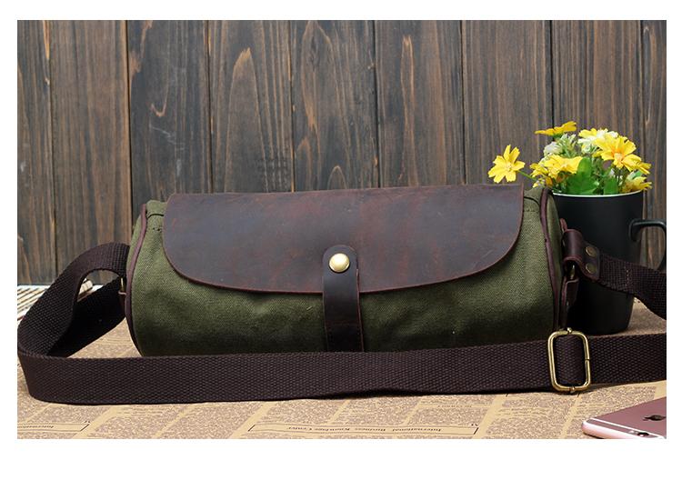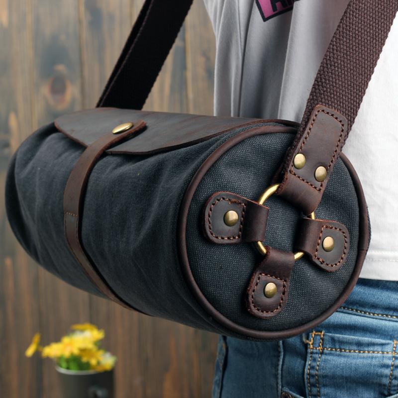 Design: Dark Gray Leather Mens Army Green Barrel Postman Bag Bucket Messenger Bag Chest Bag For Men