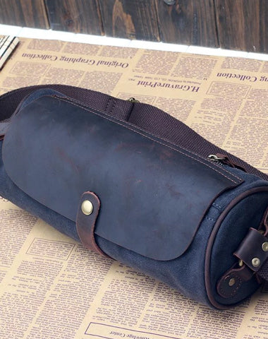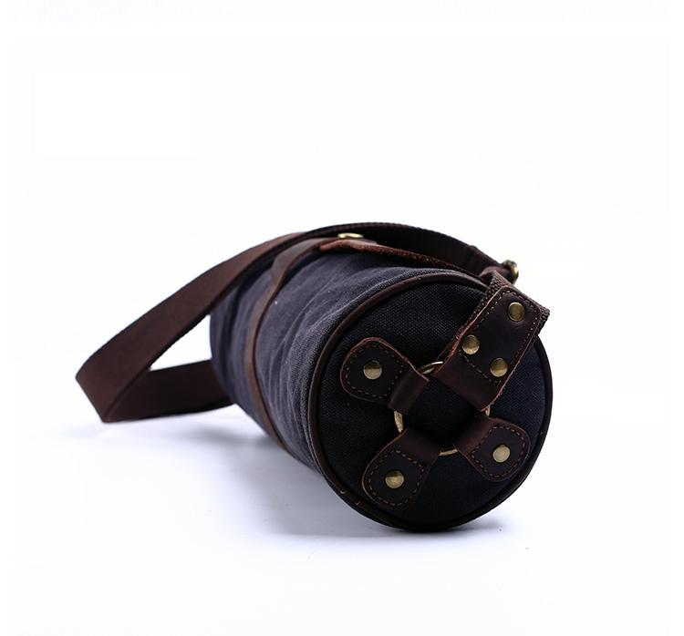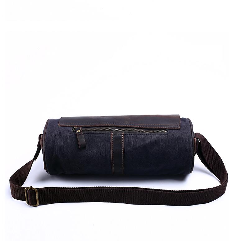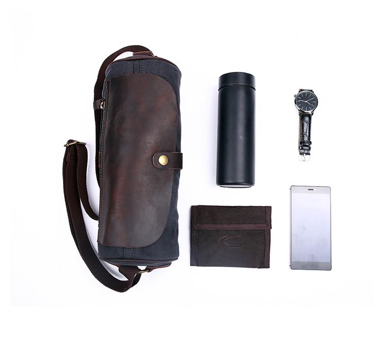 Design: Dark Gray Leather Mens Army Green Barrel Postman Bag Bucket Messenger Bag Chest Bag For MenOverview: