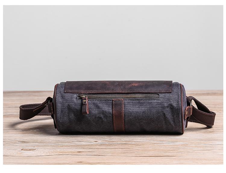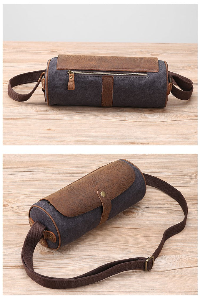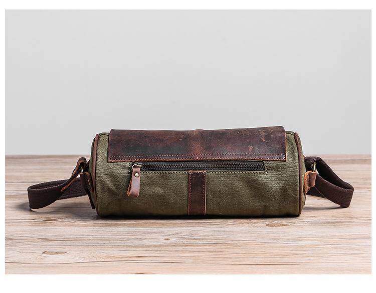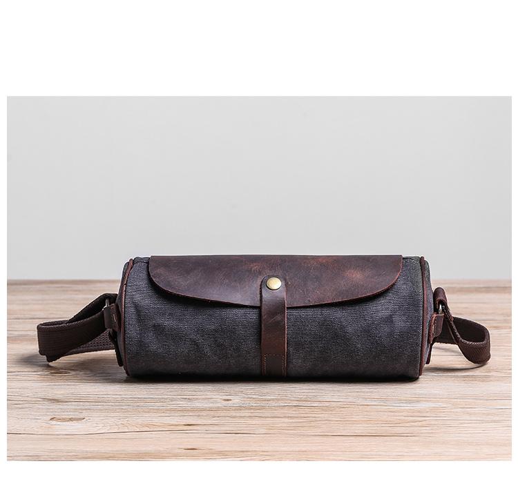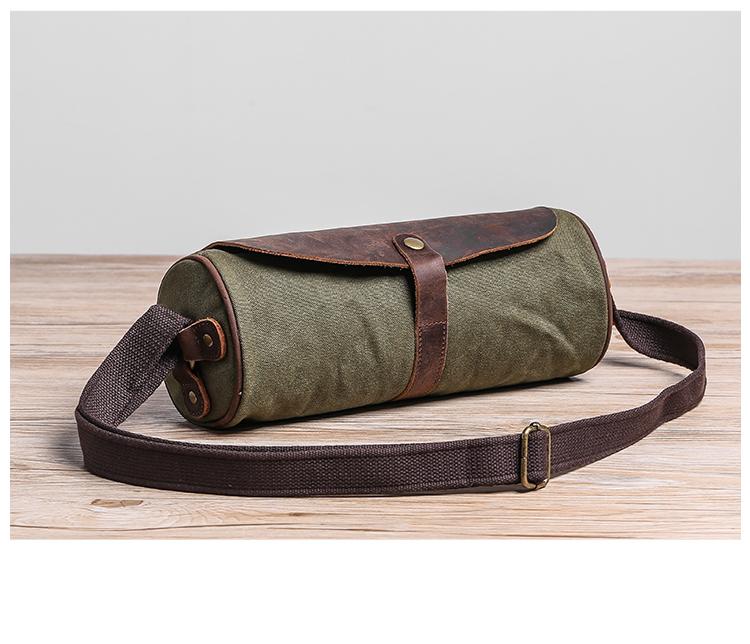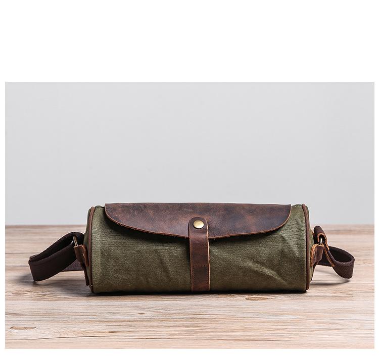 Design: Dark Gray Leather Mens Army Green Barrel Postman Bag Orange Bucket Messenger Bag Side Bag For MenOverview: