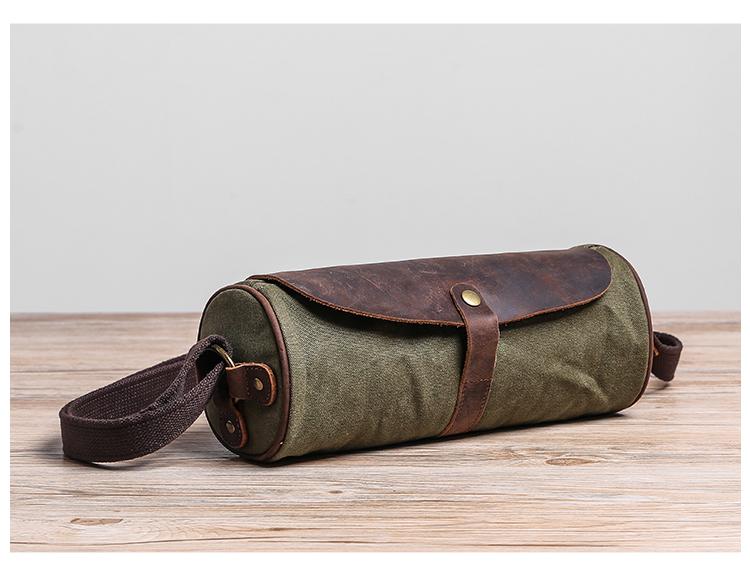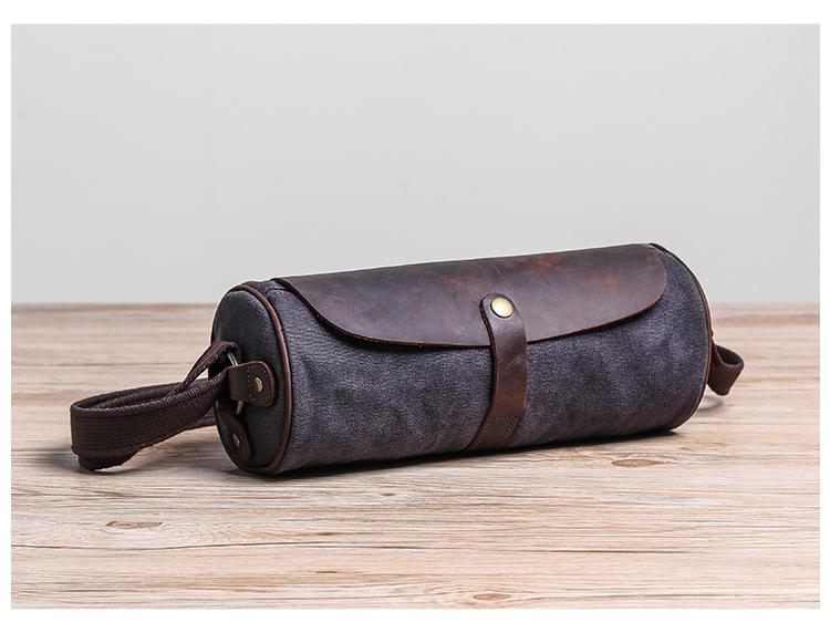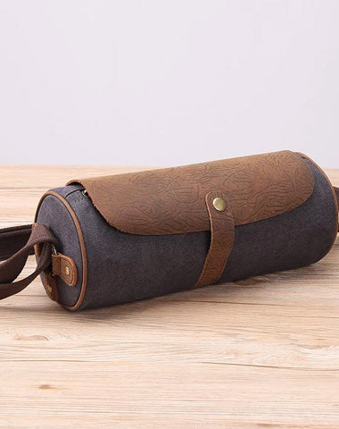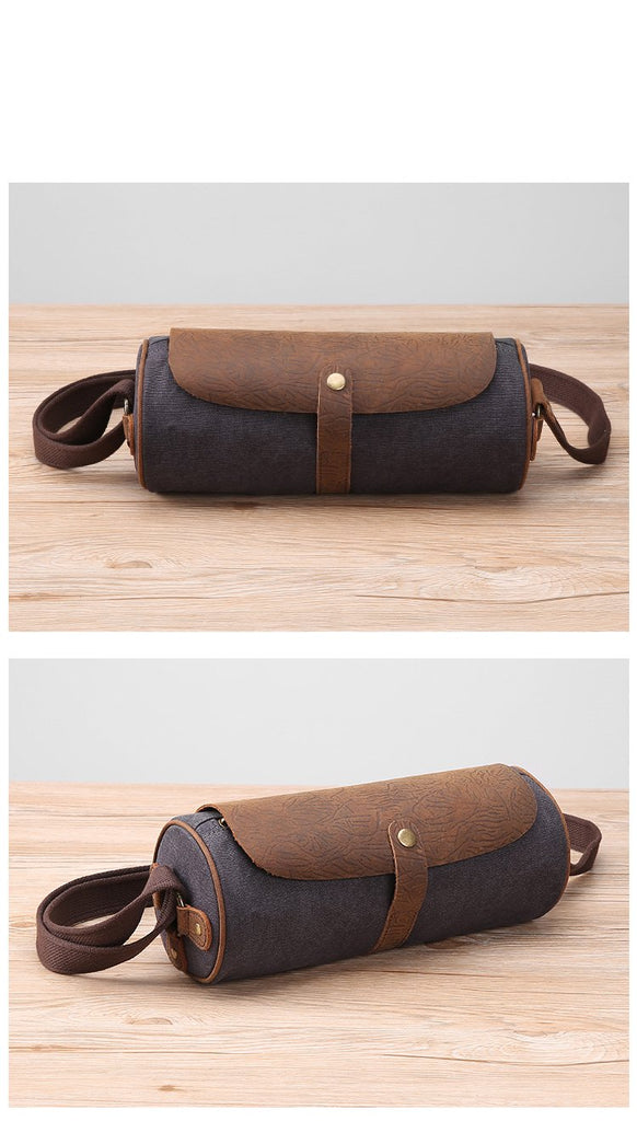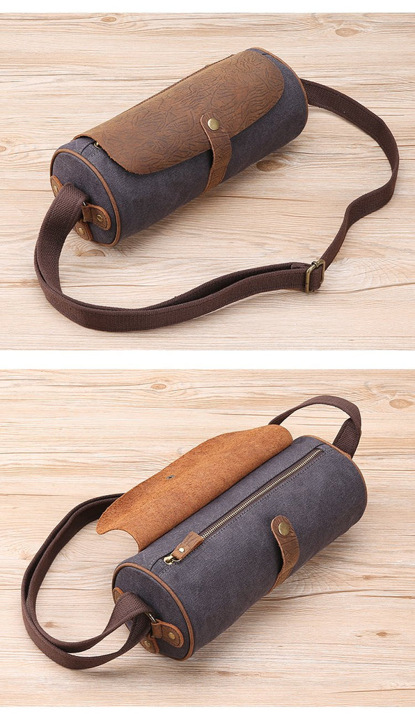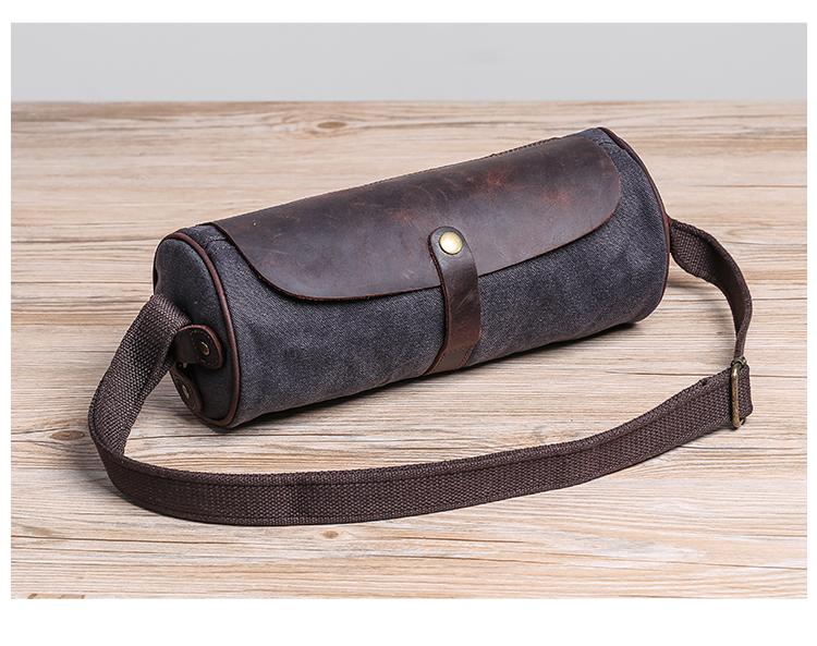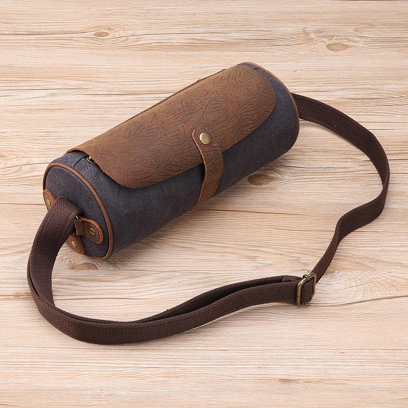 Design: Dark Gray Leather Mens Army Green Barrel Postman Bag Orange Bucket Messenger Bag Side Bag For MenOverview: